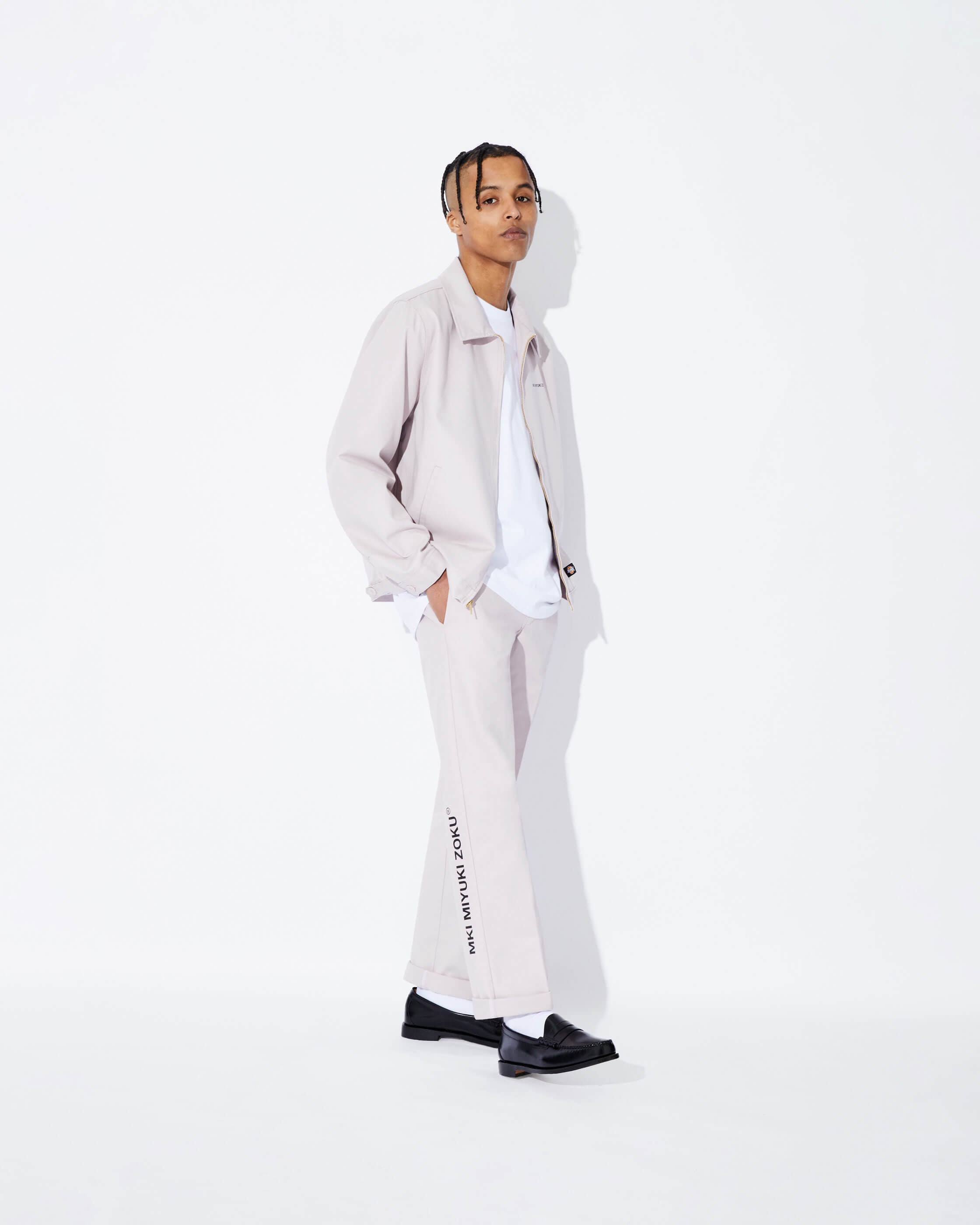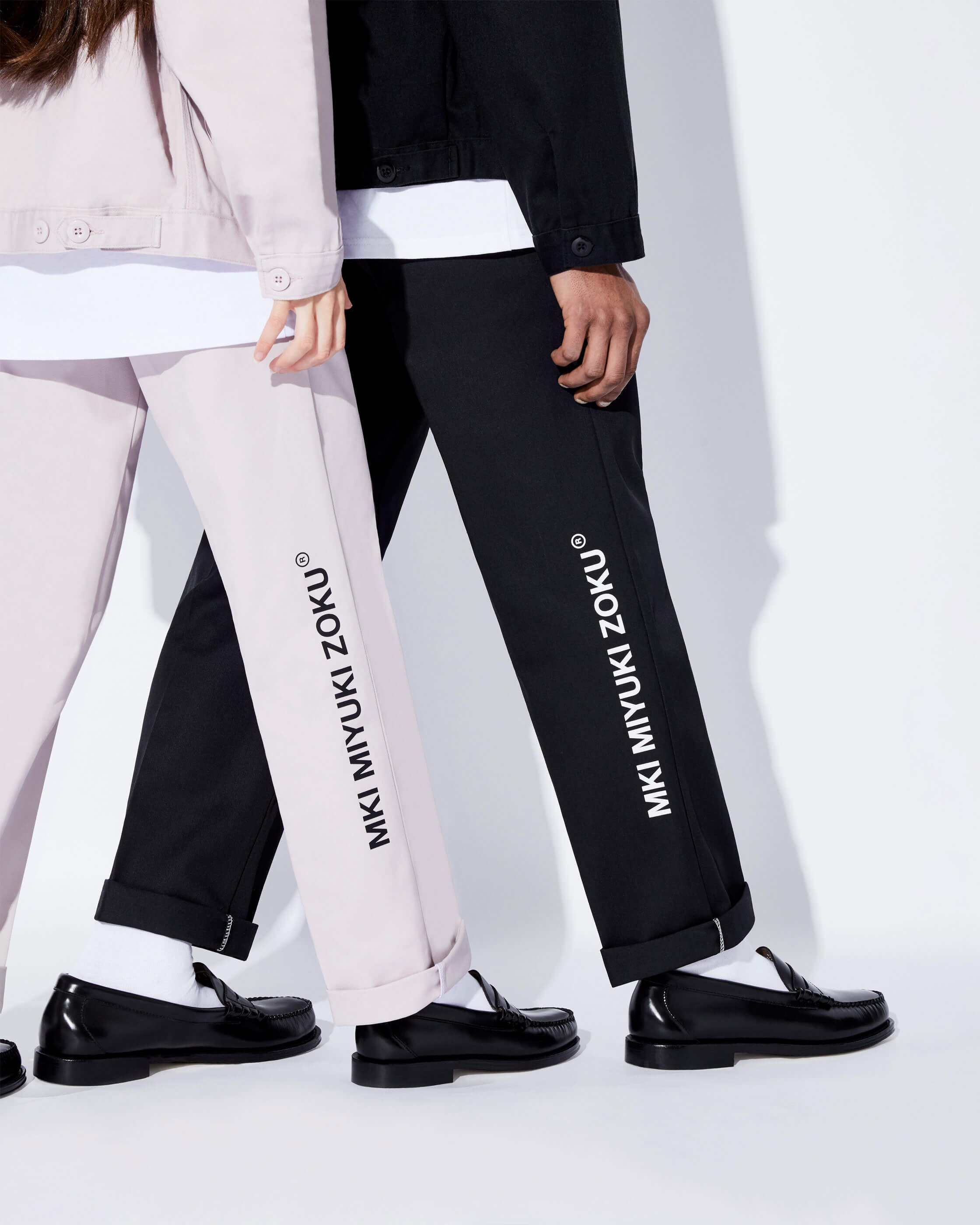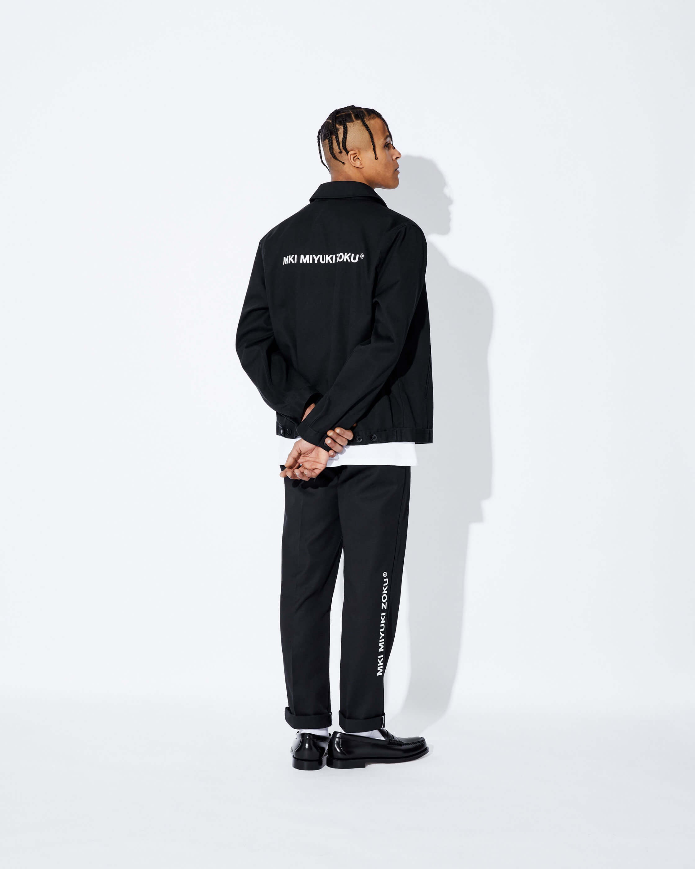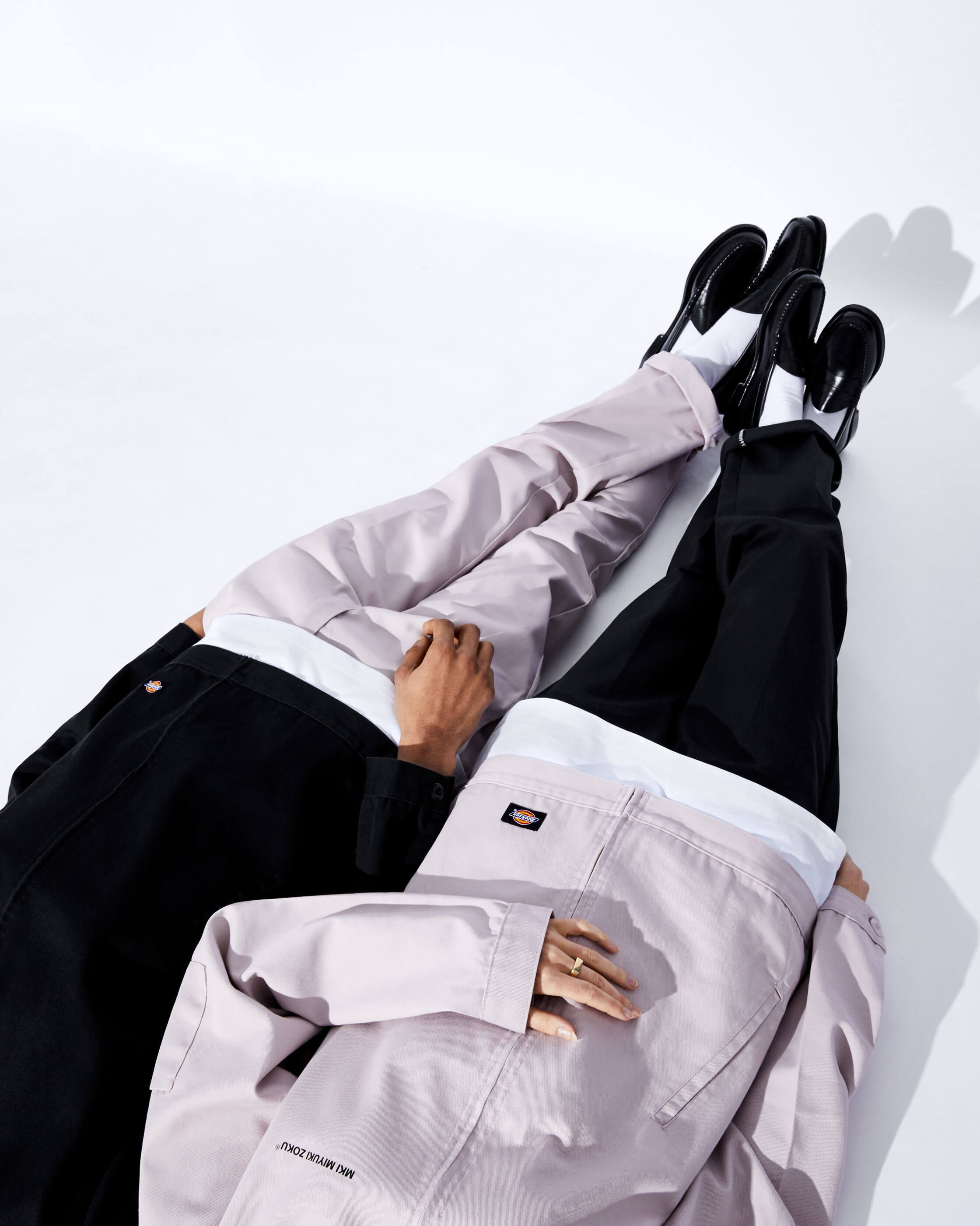 OUR DICKIES MKI COLLECTION INCLUDES THE CLASSIC EISENHOWER WORK JACKET AND 873 AND 874 WORK PANTS IN LILAC AND BLACK. CONSTRUCTED FROM A TOUGH POLY/COTTON TWILL, THE WATER REPELLANT FABRIC IS BUILT FOR RUGGED DURABILITY. THE FABRIC HAS BEEN VAT DYED FOR A DEEP, RICH COLOUR, THEN CONSTRUCTED WITH DETAILS INCLUDING GOLD ZIP HARDWARE, BRANDED WOVEN LABELS AND VINYL PRINTS OF OUR MKI REGISTERED LOGO.