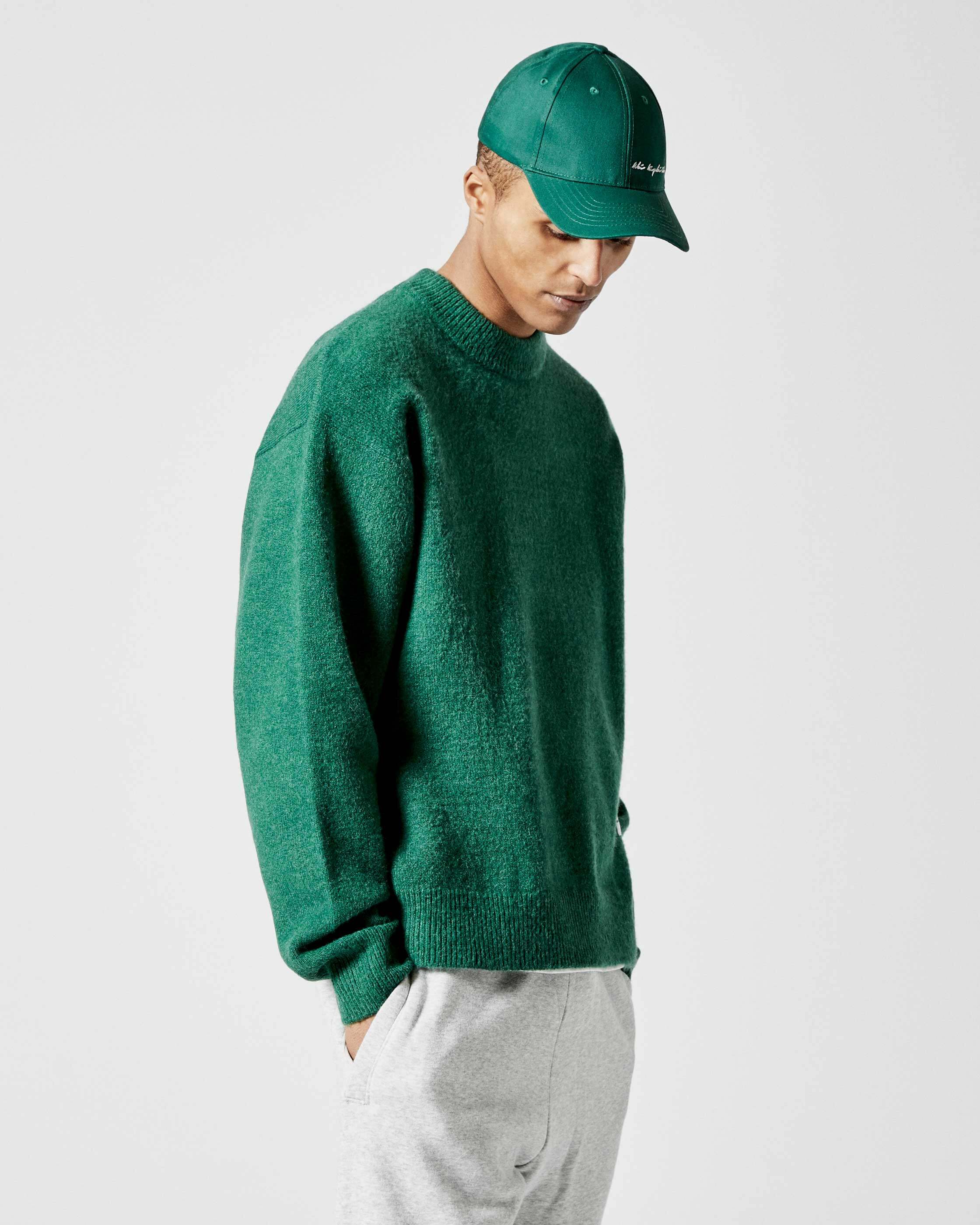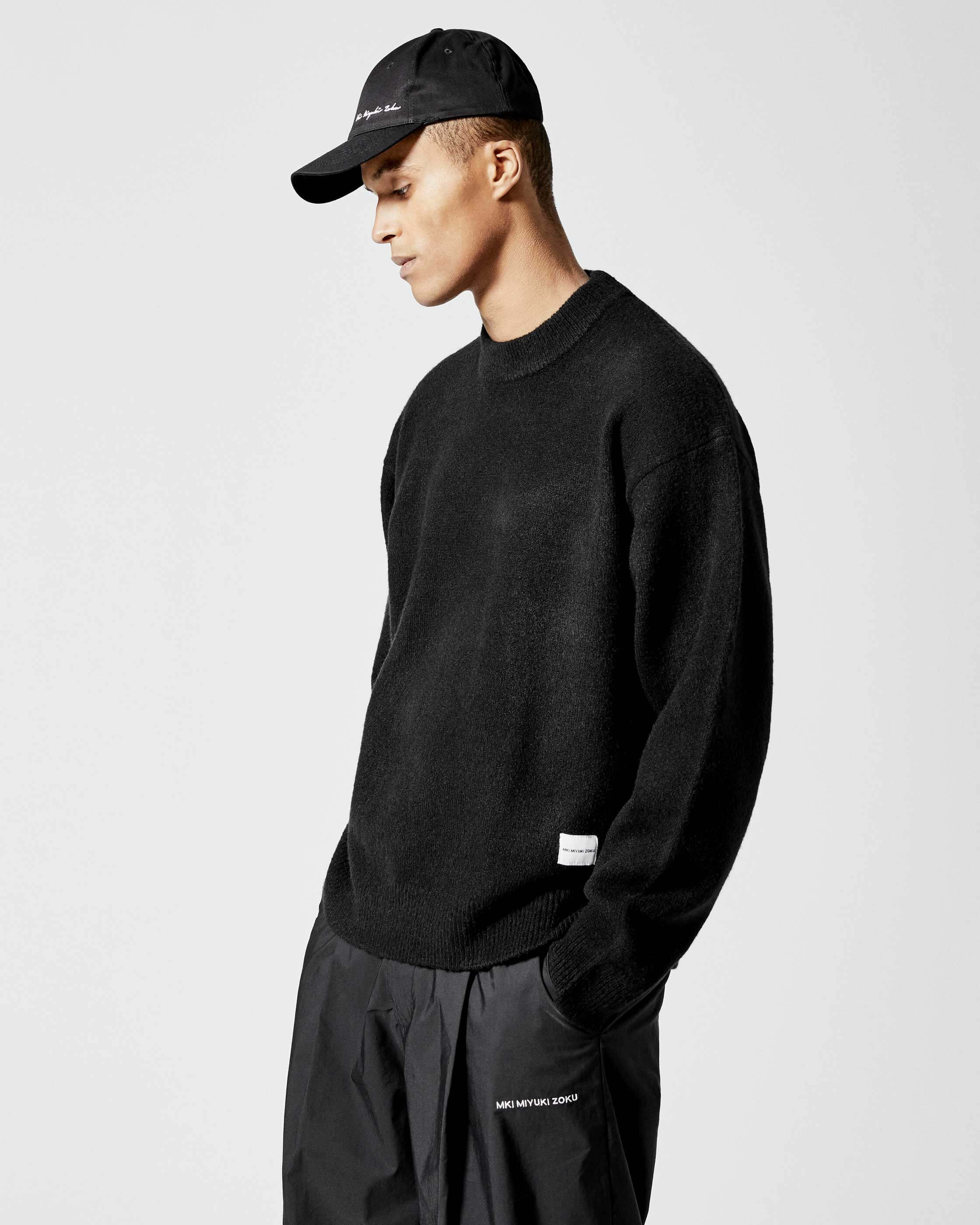 HEAVYWEIGHT WOOL BLEND CONSTRUCTION WITH RIBBED COLLAR, CUFFS AND HEM, TIGHT NECKLINE, DROPPED SHOULDERS, FINISHED WITH MKI PATCH BRANDING. EACH PIECE IS AVAILABLE IN GREY, TEAL AND BLACK COLOUR-WAYS.