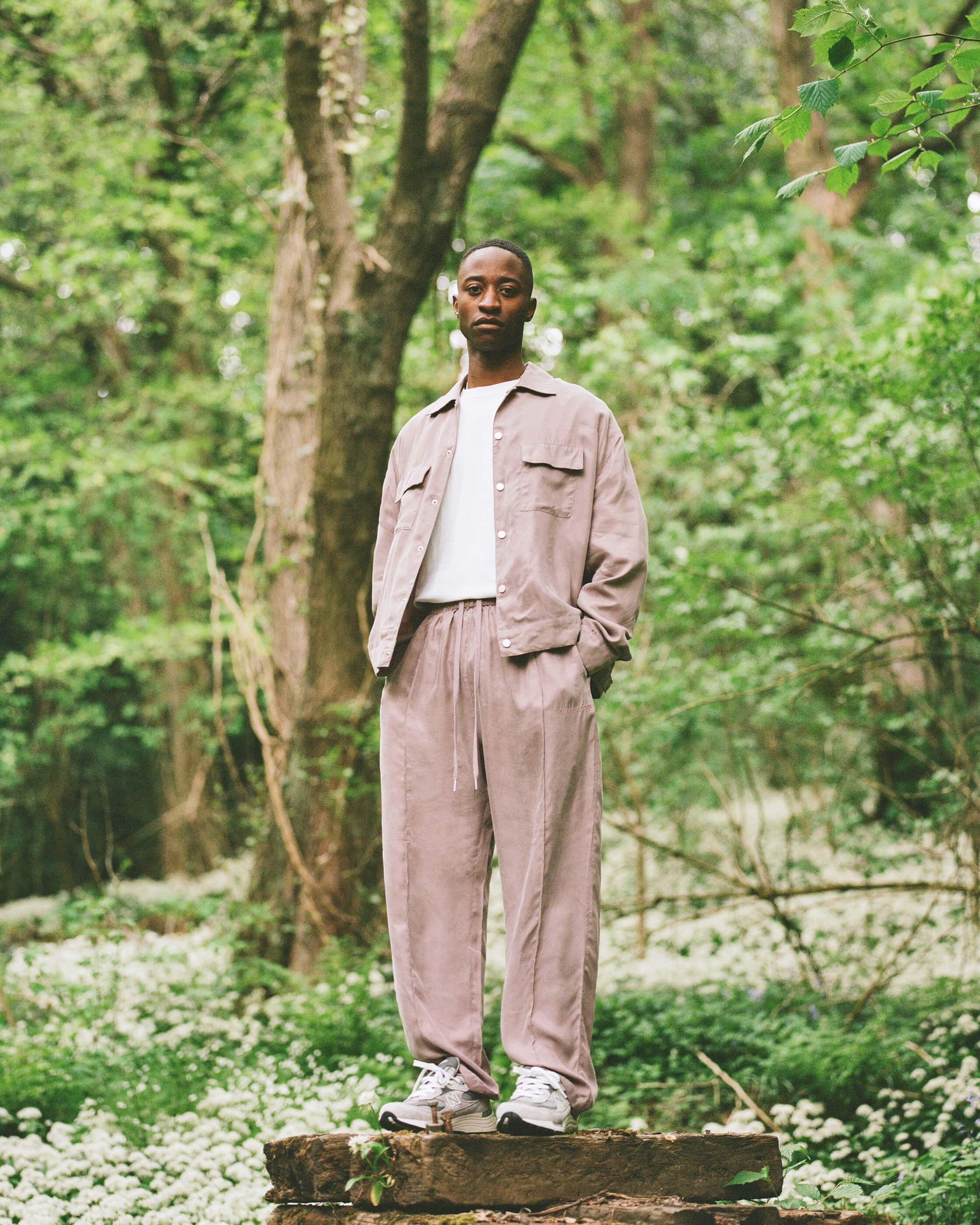 THE COLLECTION IS MADE UP OF FOUR STAPLE PIECES. A SHORT SLEEVED SHIRT, TRUCKER JACKET, SHORTS AND A PLEATED TROUSER, AVAILABLE IN FOUR COLOURS, GREY, LAVENDER, TEAL AND BLACK.