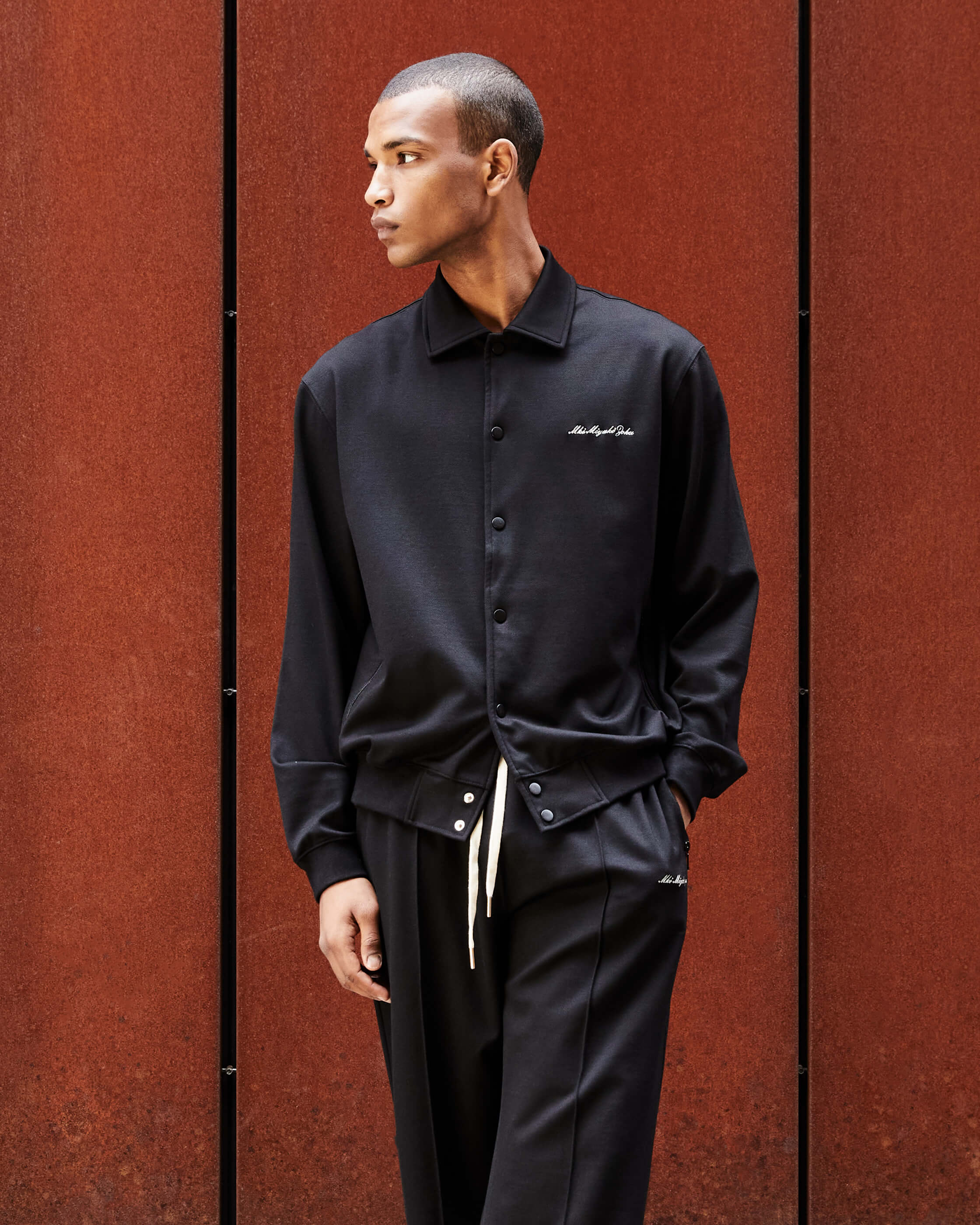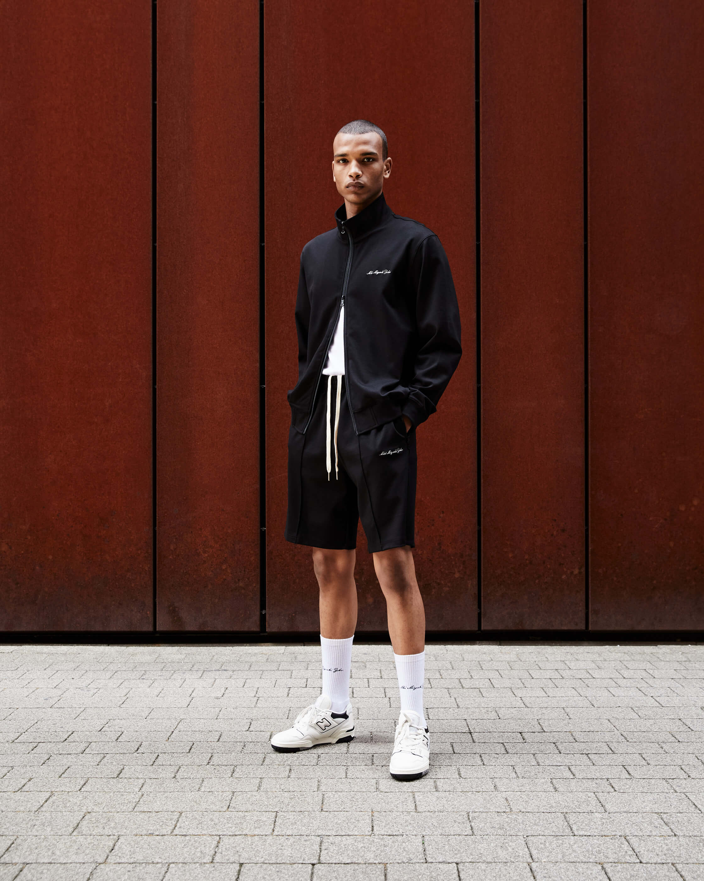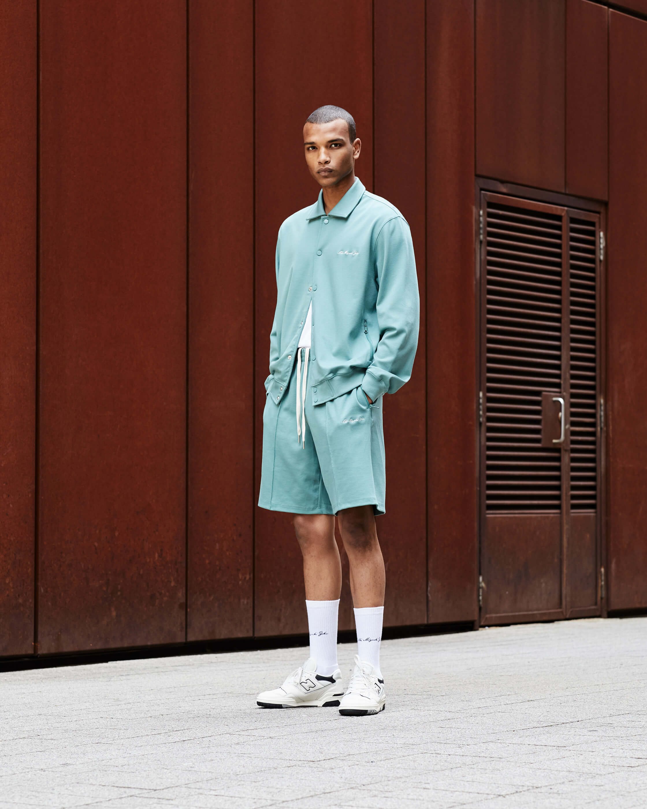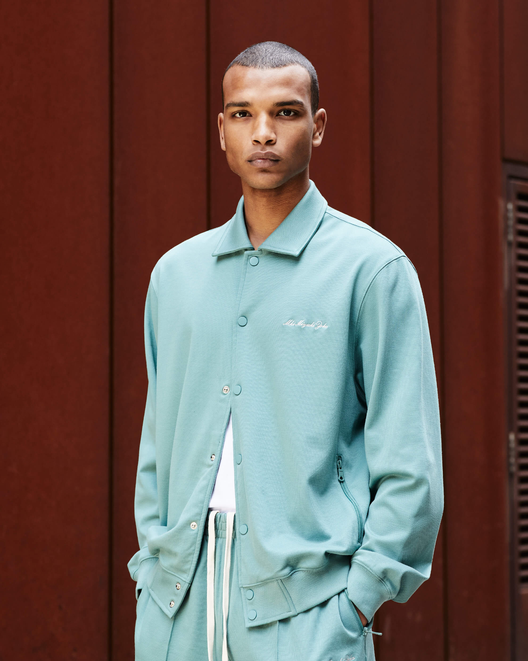 CONSTRUCTED IN A MIDWEIGHT POLY BLEND, THE PIECES ARE FINISHED WITH RIBBED ZIP HEMS, AND UNLINED FOR A LIGHT SUMMER FEEL. RELEASING IN BLACK AND PASTEL GREEN, THE COLLECTION INCLUDES A TRACK JACKET, COACH JACKET, TRACK PANTS AND TRACK SHORTS.