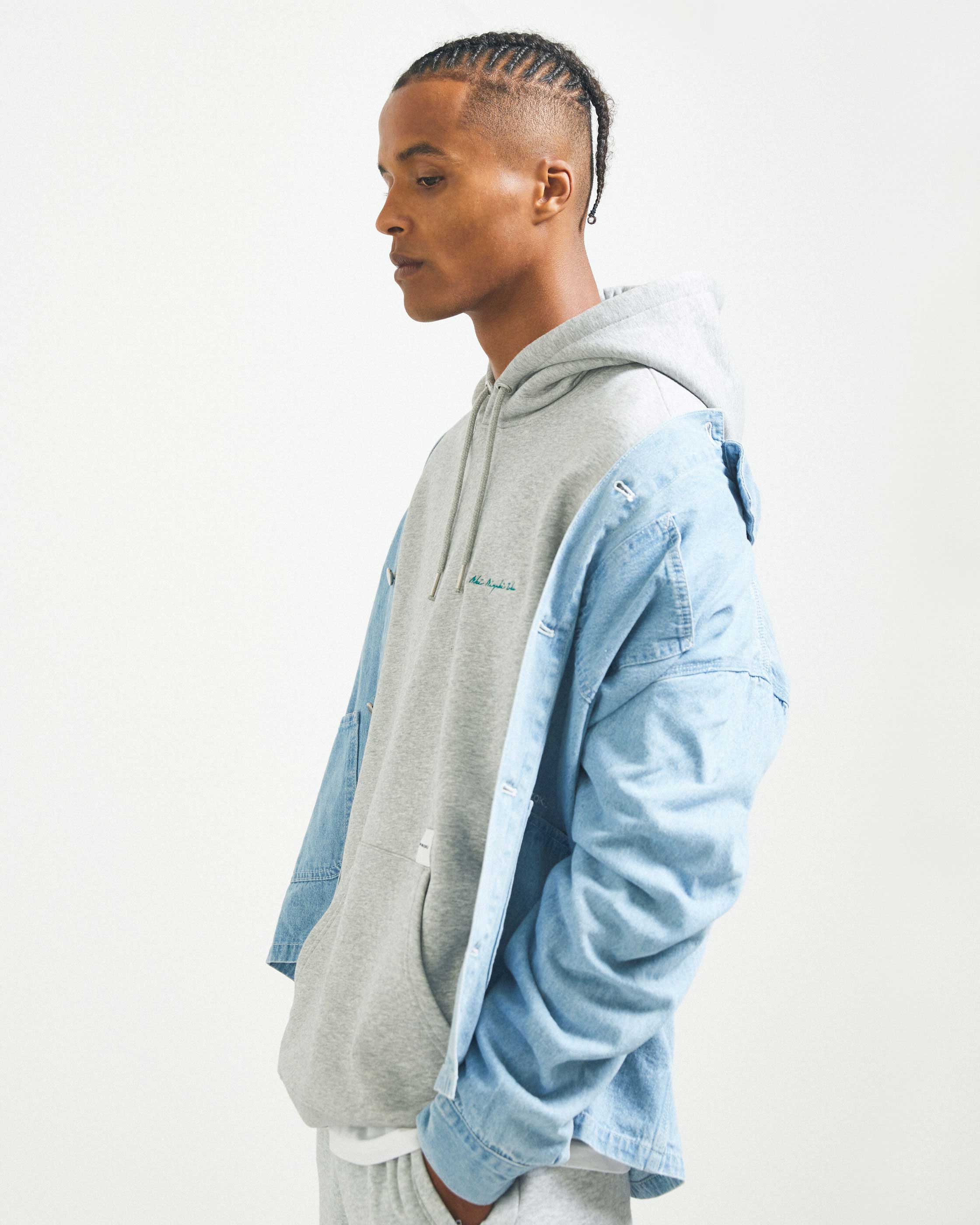 AFTER CONSTRUCTION, EACH PIECE HAS BEEN FINISHED WITH OUR MKI SIGNATURE LOGO, EMBROIDERED ONTO THE LEFT SIDE. WITH THE HINTS OF GREEN ACROSS THE PIECES, THE COLLECTION HAS BEEN DESIGNED TO BE WORN MIXED AND MATCHED, AND WITH A RELAXED STYLING.