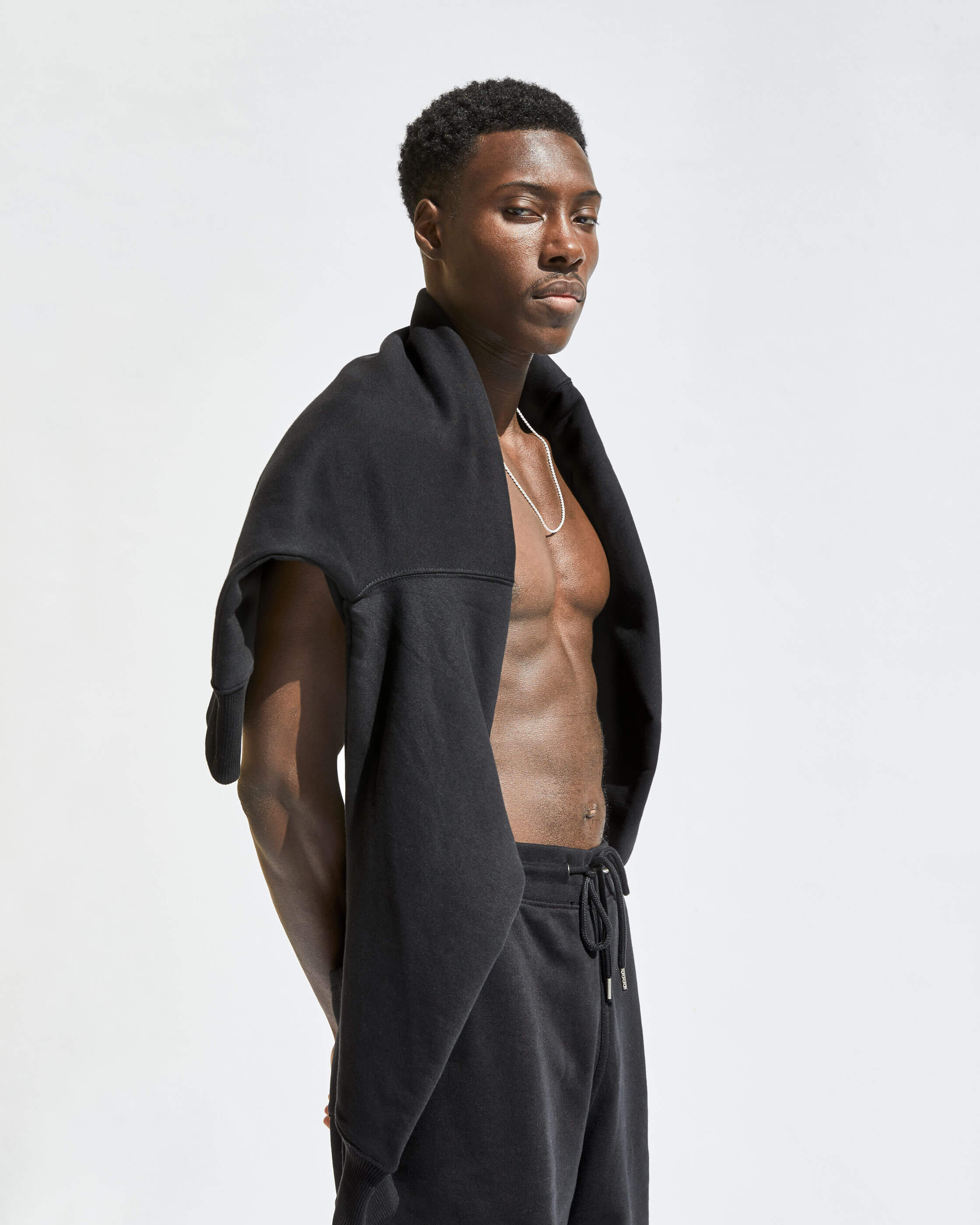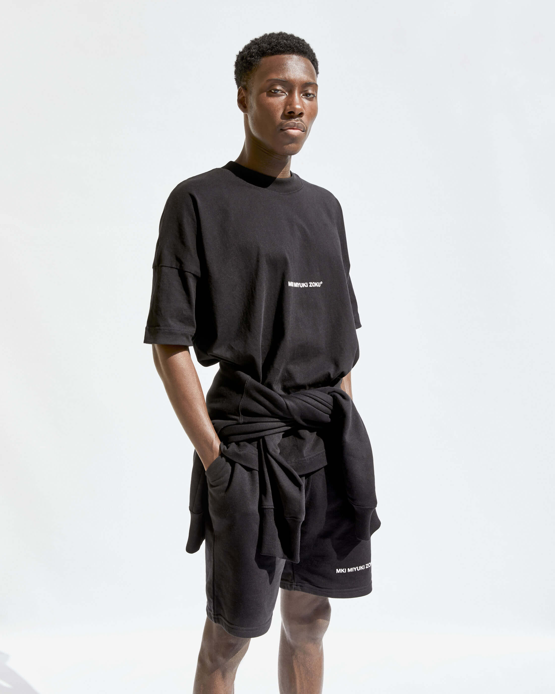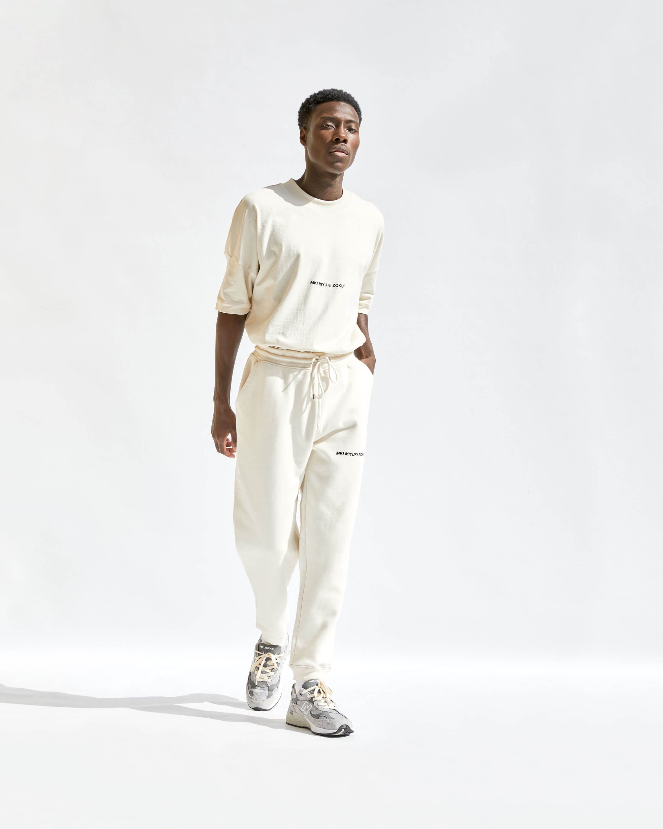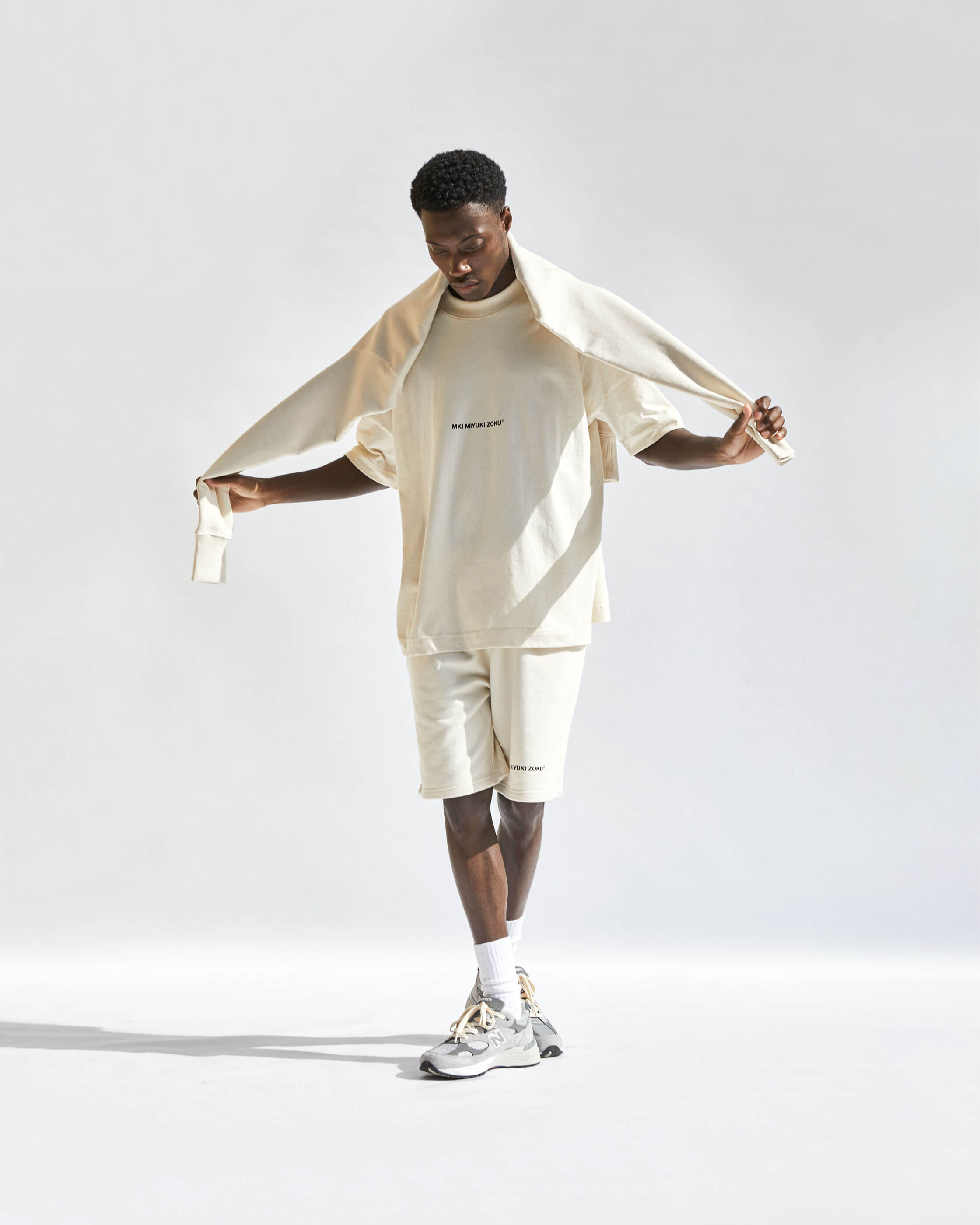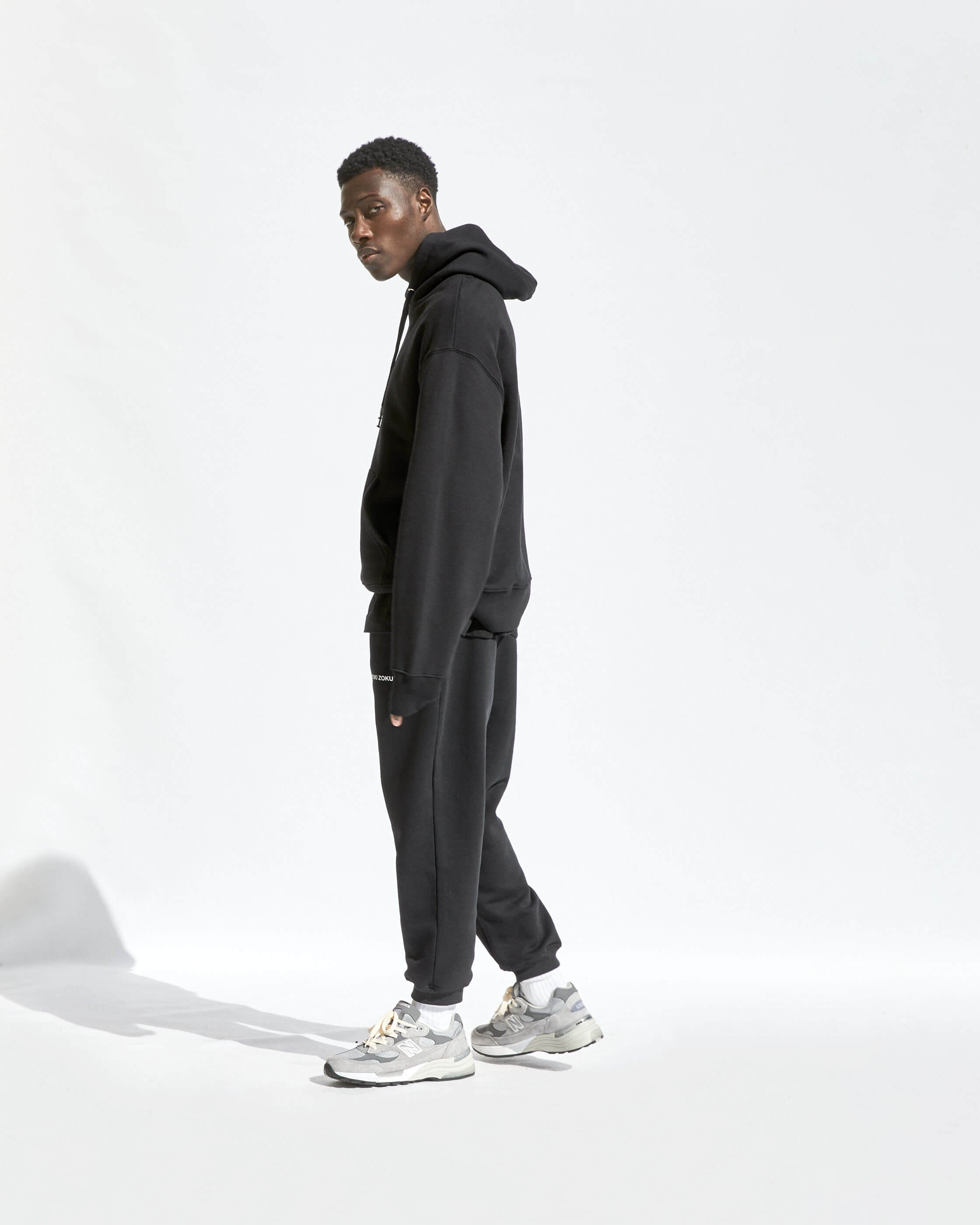 COMPRISED OF TEES, CREWS, HOODS, JOGGERS AND SHORTS. WE'VE OFFERED A NATUAL RAW ECRU AND SOLID BLACK. ALL STYLES ARE MADE FROM ORGANIC COTTON MIXES AND ARE COLOUR MATCHED TO BE PERFECTLY INTERCHANGEABLE.