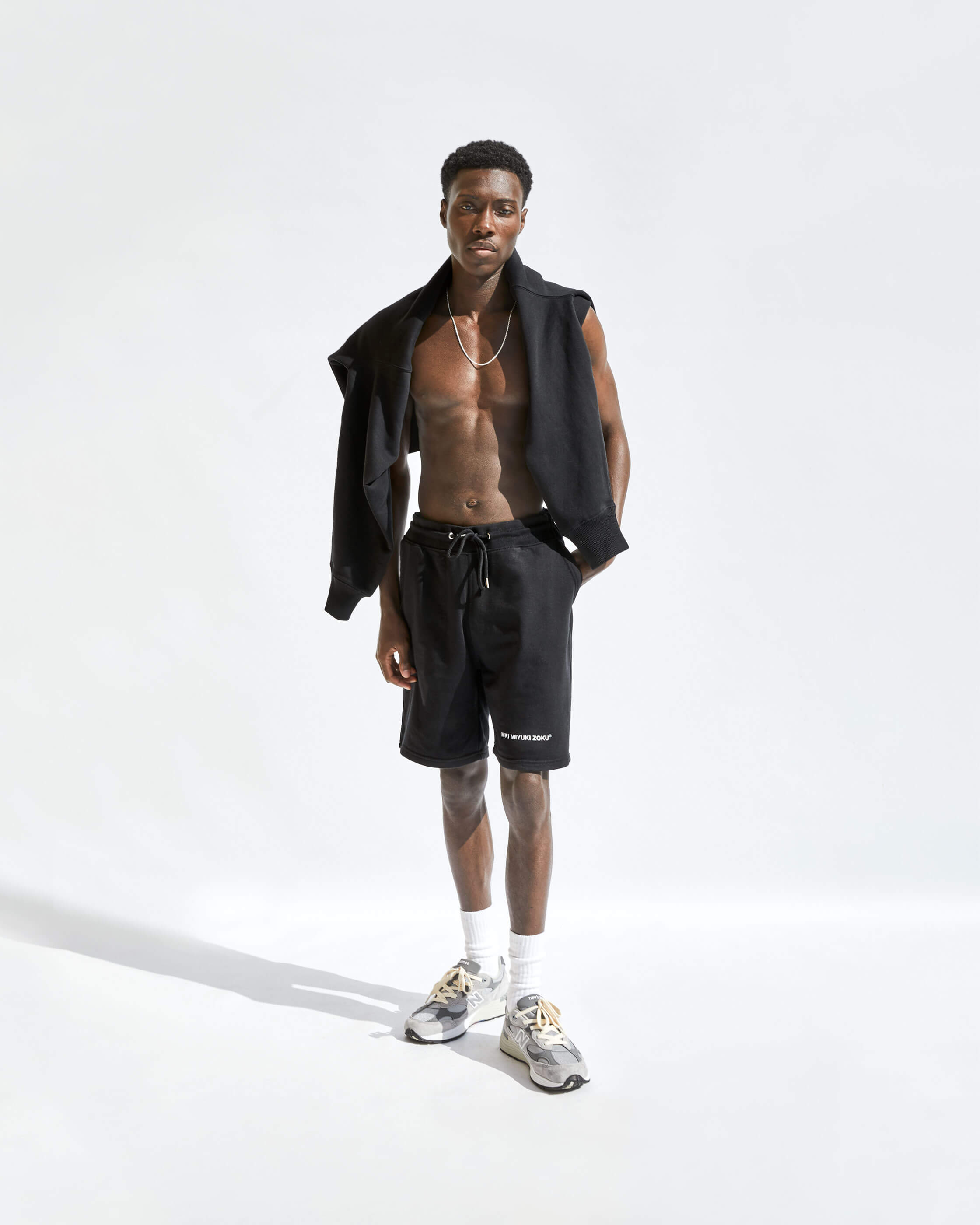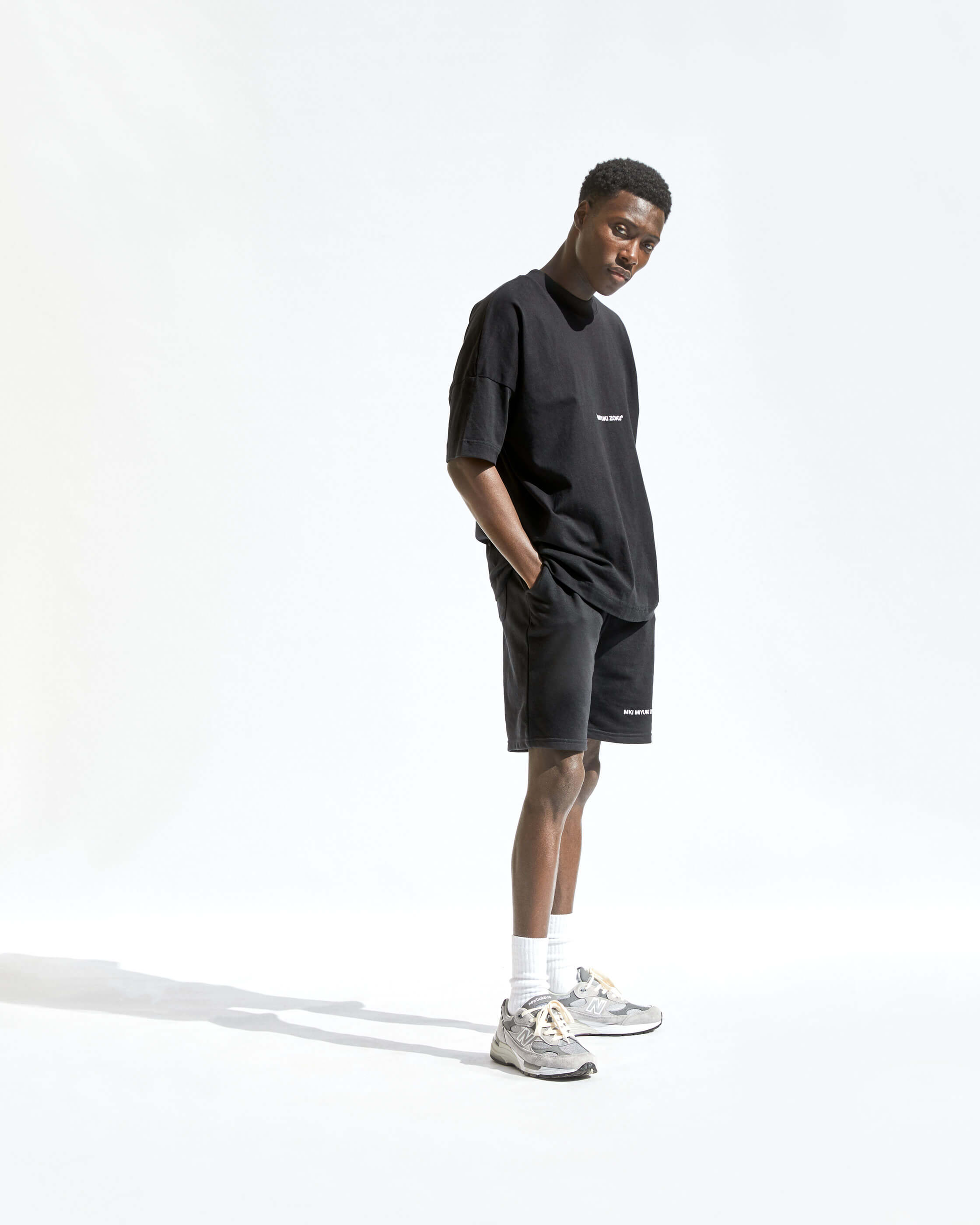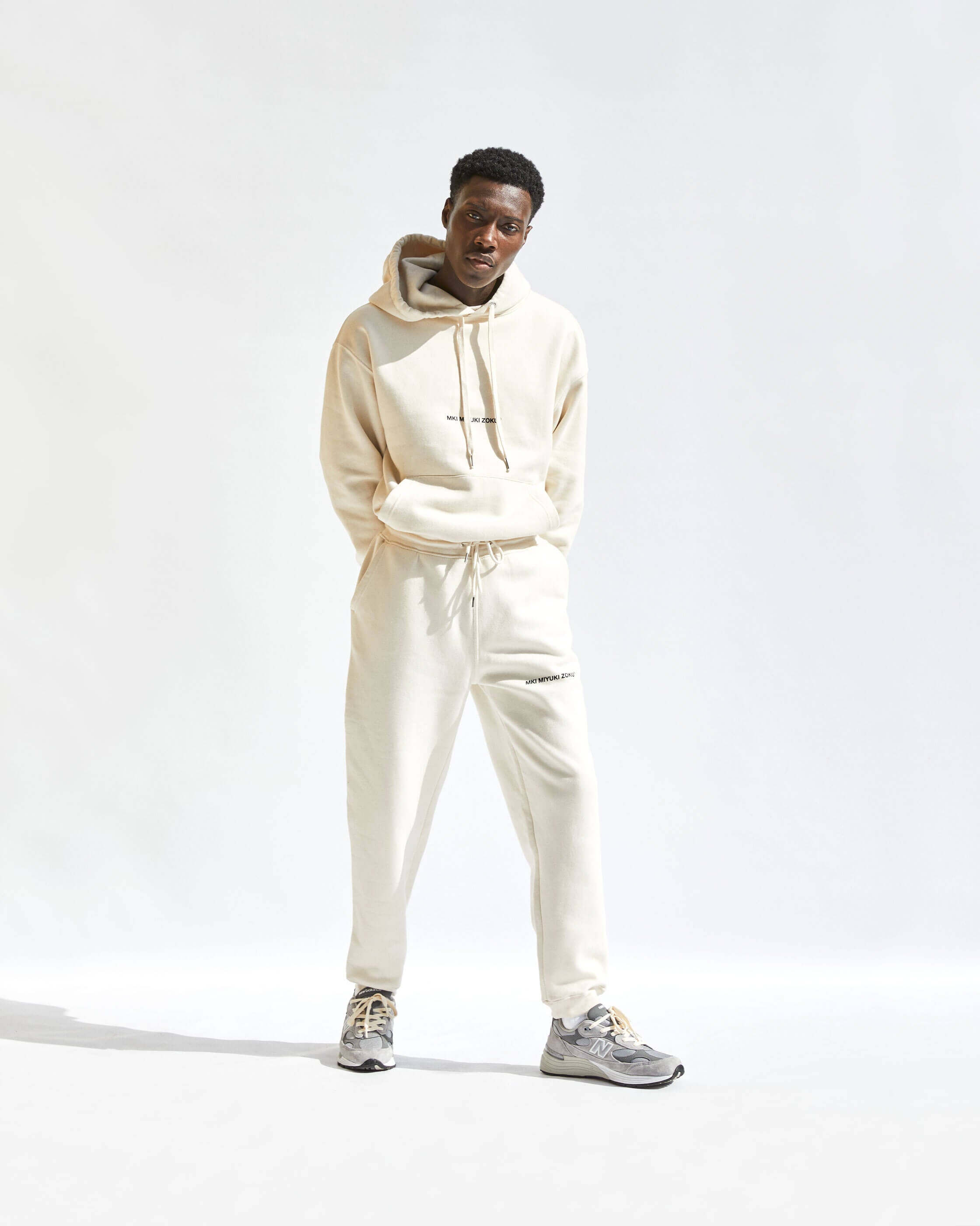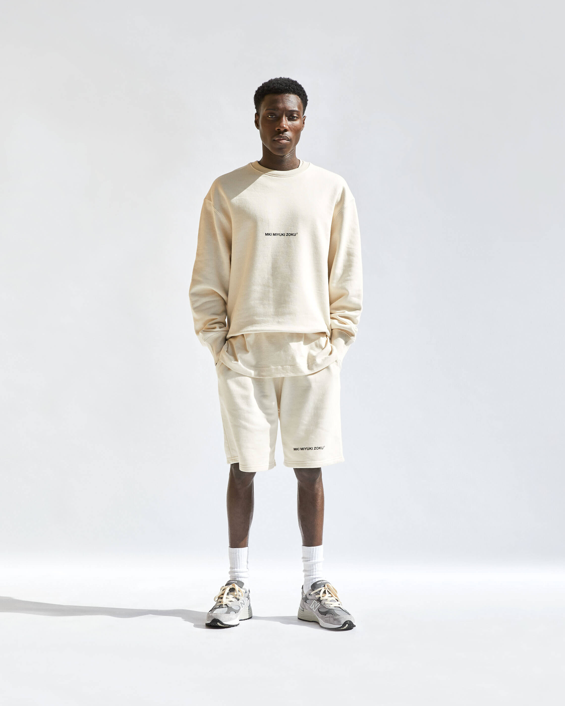 COMPRISED OF TEES, CREWS, HOODS, JOGGERS AND SHORTS. WE'VE OFFERED A NATUAL RAW ECRU AND SOLID BLACK. ALL STYLES ARE MADE FROM ORGANIC COTTON MIXES AND ARE COLOUR MATCHED TO BE PERFECTLY INTERCHANGEABLE.