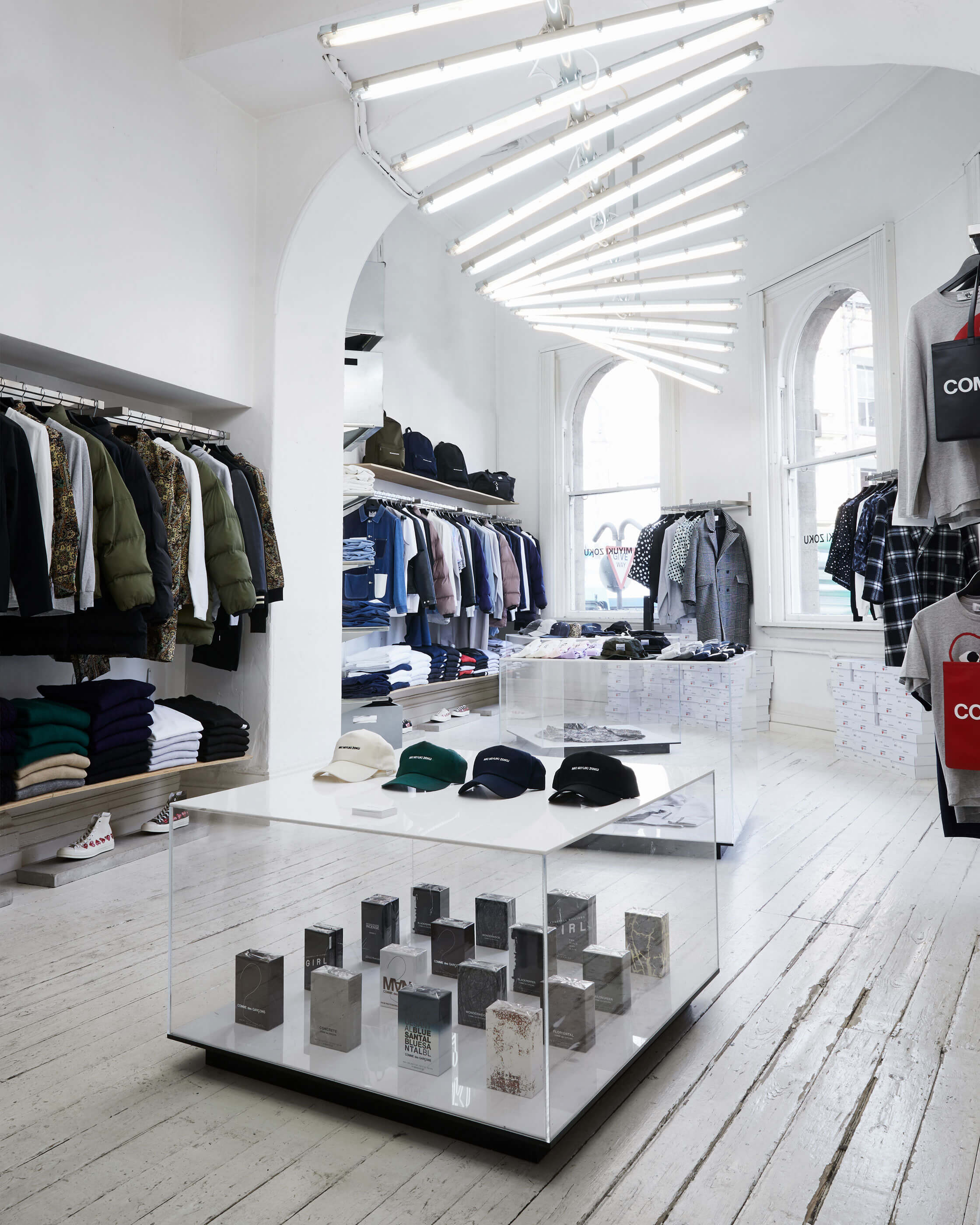 INSIDE YOU WILL FIND THE FULL COLLECTIONS FROM OUR IN HOUSE BRAND MKI MIYUKI ZOKU, ALONGSIDE OUR CAREFULLY CURATED THIRD PARTY BRAND OFFERING, WHICH INCLUDES THE LIKES OF COMMES DES GARCONS AND DICKIES.