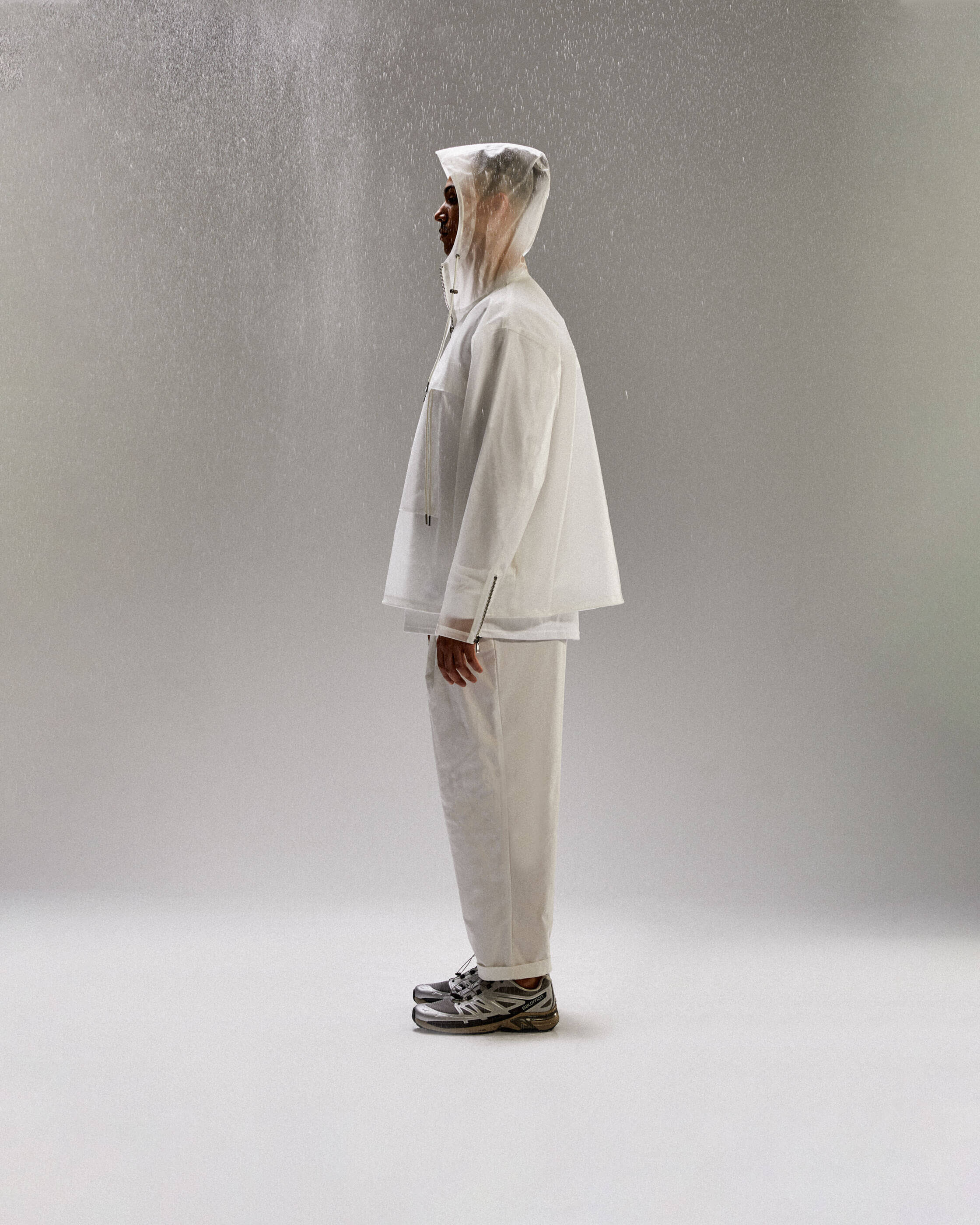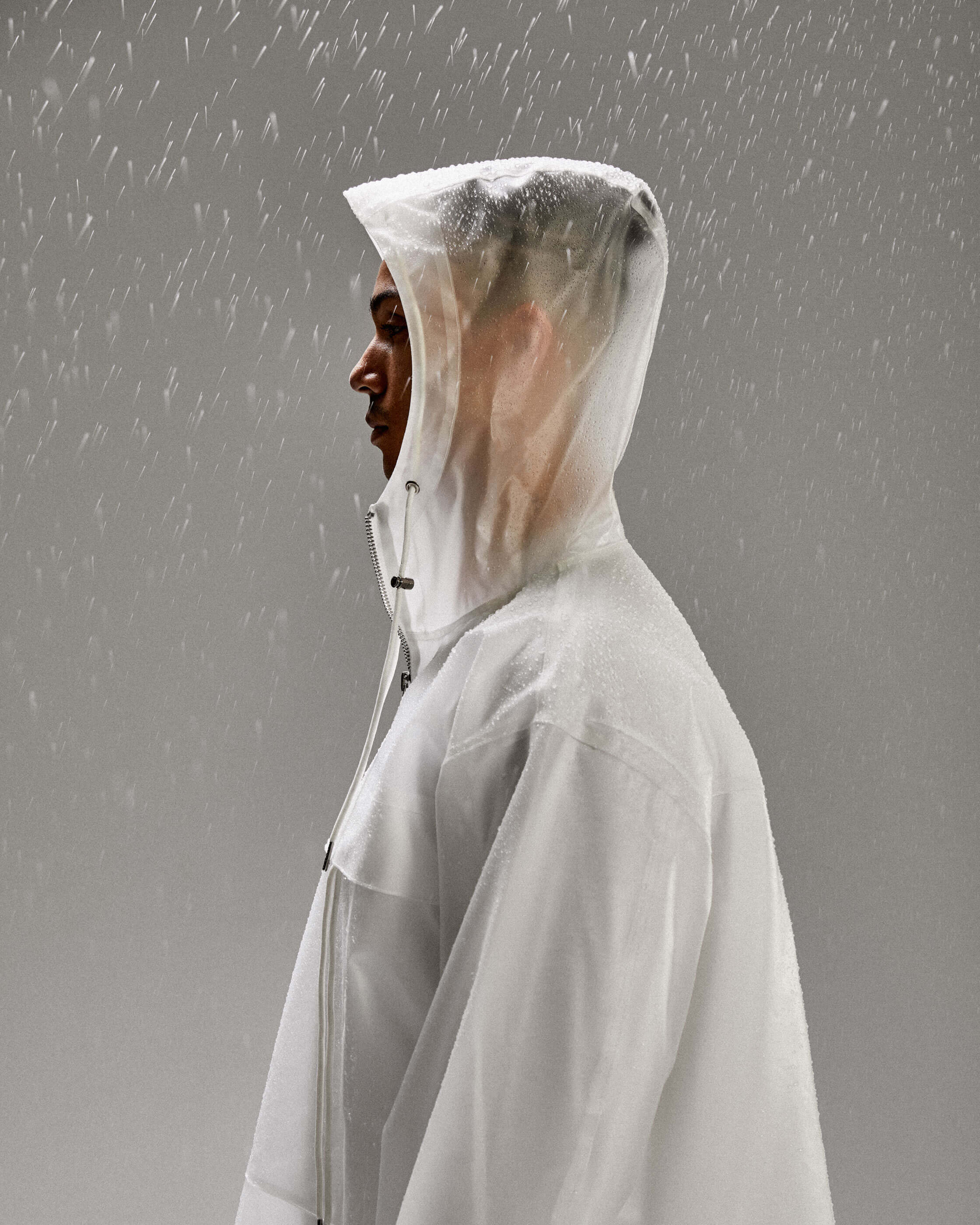 CONSTRUCTED FROM A 100% WATERPROOF HEAVYWEIGHT SEMI TRANSPARENT TPU FABRIC, EACH JACKET STYLE IS AVAILABLE IN FROSTED AND SMOKE COLOURWAYS.