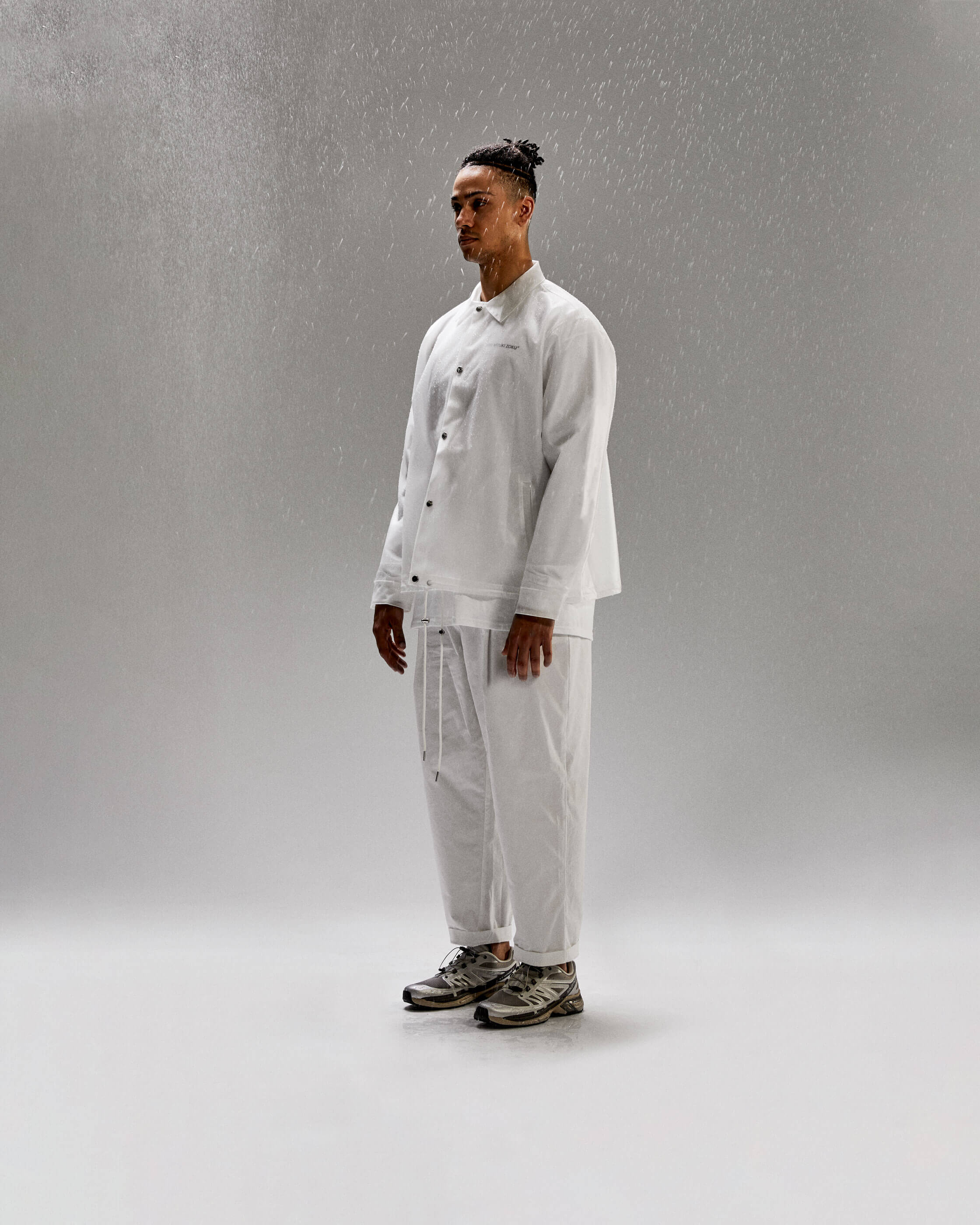 THE THREE STYLES INCLUDE A COACH JACKET, SMOCK AND MAC - EACH FEATURING CHROME HARDWARE INCLUDING PRESS STUDS, 2 WAY ZIPS, EYELETS AND LACE TIPS. THE JACKETS FIT BOXY AND OVERSIZED, MAKING THEM IDEAL FOR EXPERIMENTING WITH LAYERING.