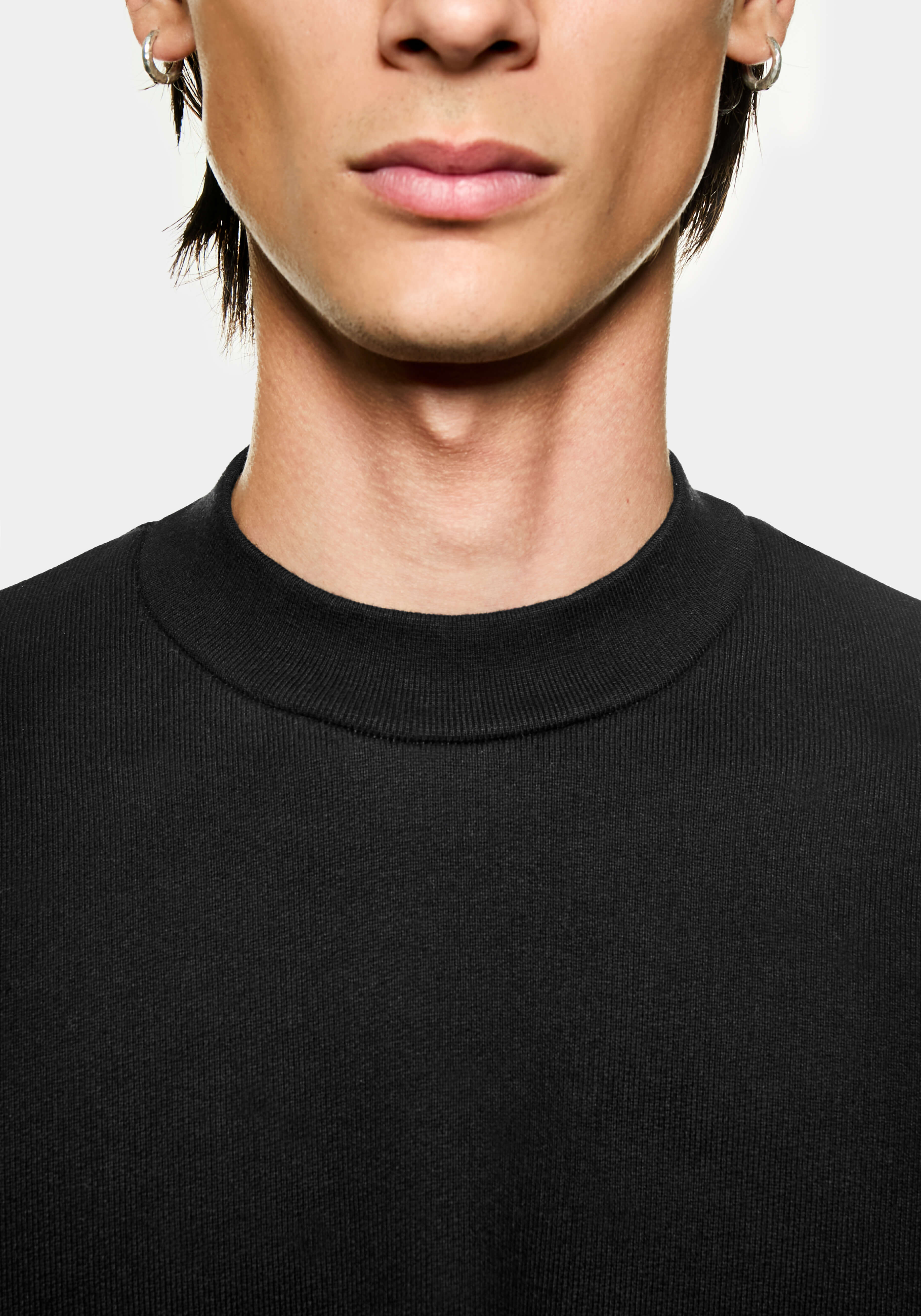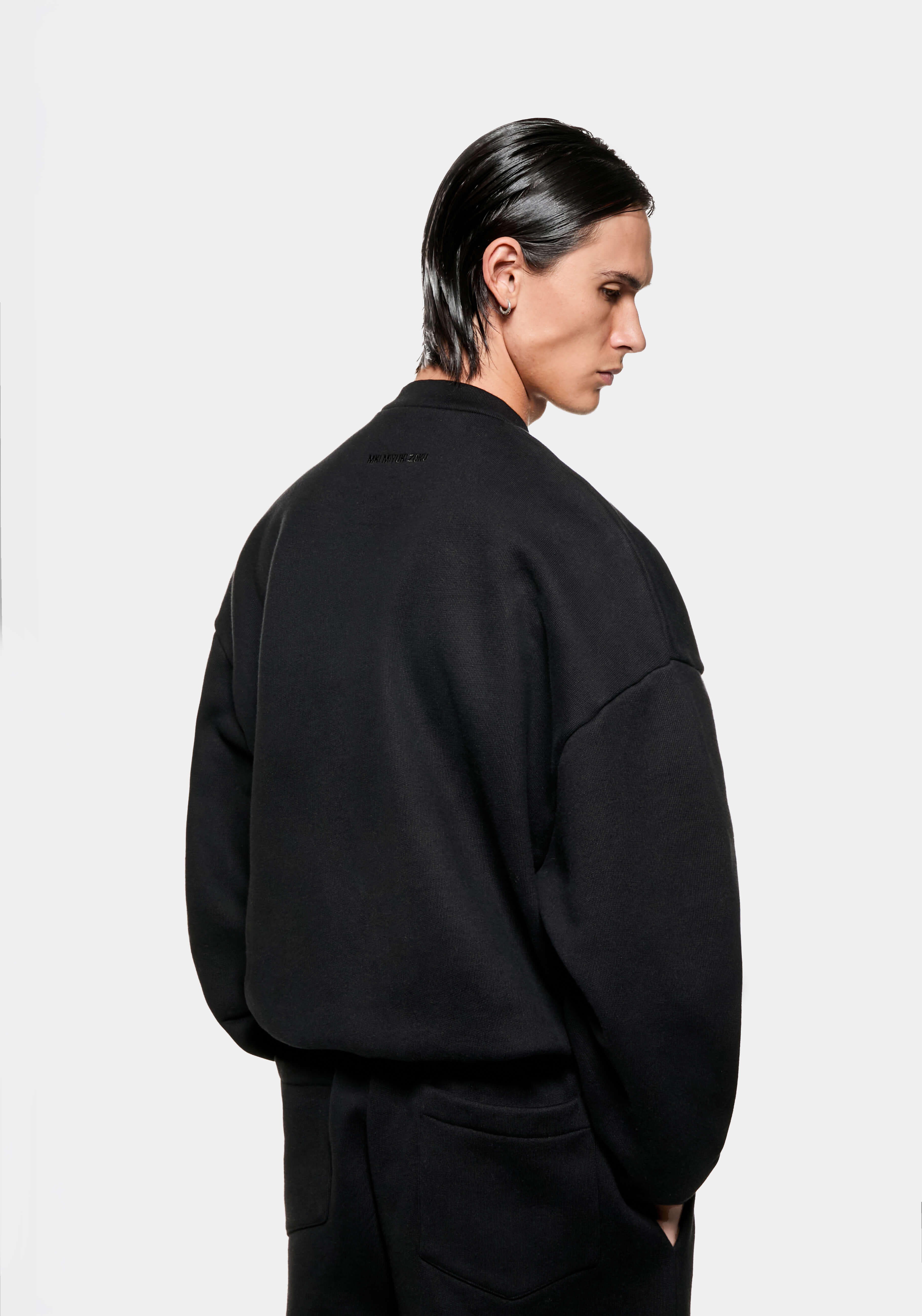 MKI 800 GSM SUPERWEIGHT CREWNECK IN BLACK. THE 800GSM SUPERWEIGHT CREWNECK IN BLACK IS CRAFTED FROM HEAVYWEIGHT COTTON JERSEY. ACHIEVING THE DRAPE ASSOCIATED WITH MKI’S SUPERWEIGHT COLLECTION, THE SWEATSHIRT IS CUT TO AN OVERSIZED FIT WITH DROPPED SHOULDERS AND 1X1 COTTON RIBBING AT THE CUFFS, HEM AND NECKLINE. TONAL EMBROIDERY AT THE REAR SIGNS OFF THE DESIGN.