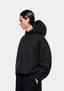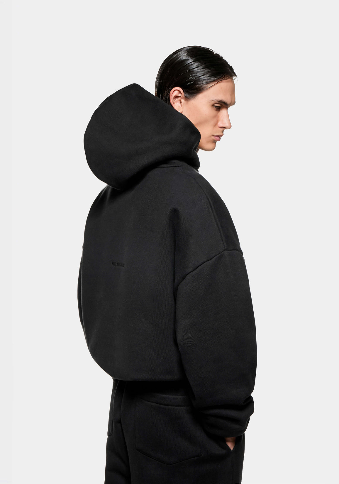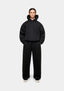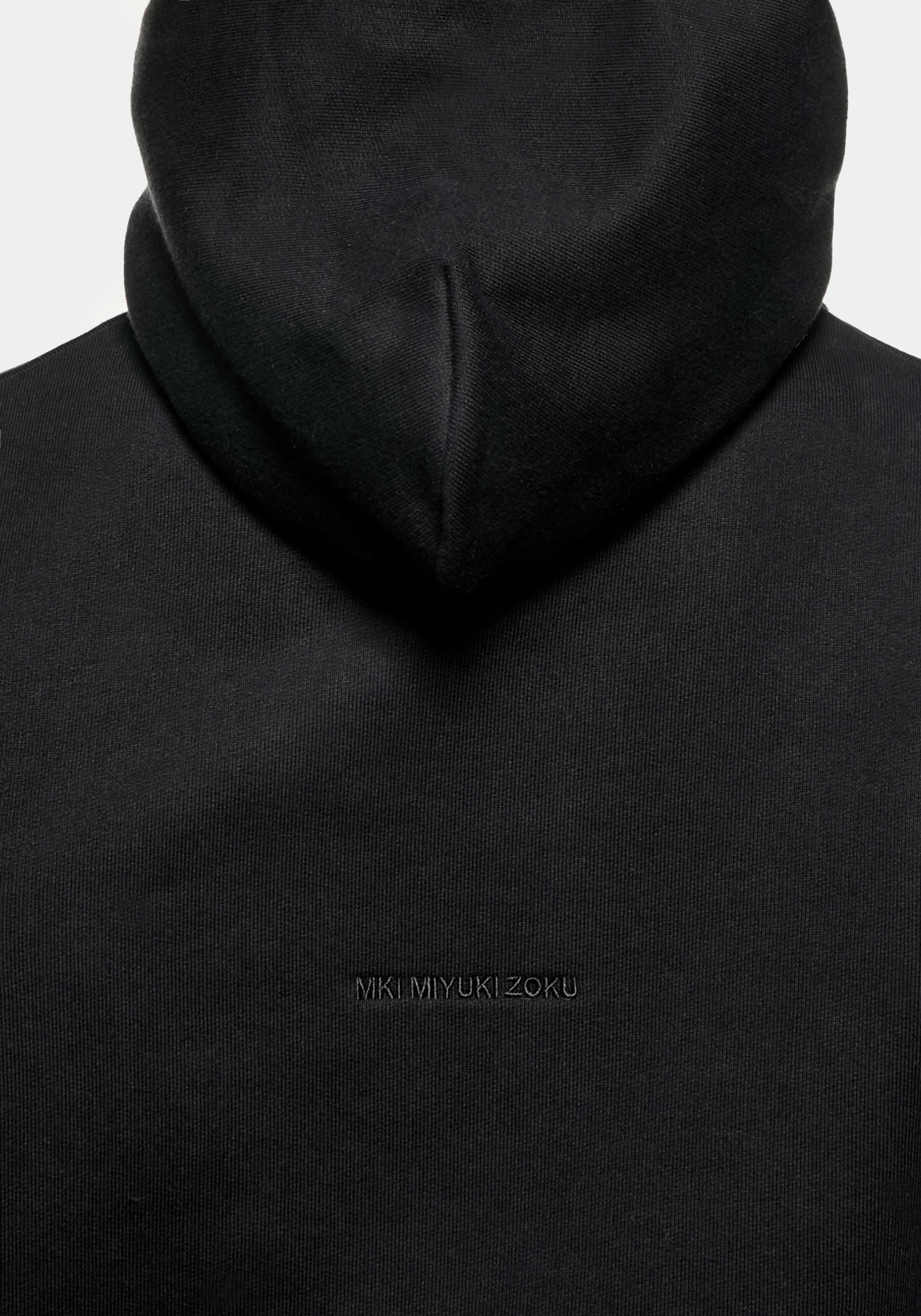 MKI 800 GSM SUPERWEIGHT HOODY IN BLACK. CRAFTED FROM SUPER HEAVYWEIGHT 800GSM COTTON JERSEY, THE SUPERWEIGHT HOODY IN BLACK IS DESIGNED WITH A DOUBLE LAYER HOOD, DROPPED SHOULDERS AND COTTON RIBBING AT THE CUFFS AND HEM TO ACHIEVE MKI’S SIGNATURE OVERSIZED BOX FIT. THE TONAL EMBROIDERED LOGO AT THE REAR ECHOES THE MINIMALIST DESIGN OF THE SUPERWEIGHT HOODY.
