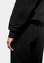 THE MODEL IS 6FT, HAS A 29' WAIST, CHEST MEASURING 37', AND WEARS A SIZE LARGE. THE MODEL IS ALSO WEARING MKI 800 GSM SUPERWEIGHT CUFFED JOGGERS IN BLACK.