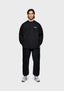 THE MODEL IS 6FT, HAS A 29' WAIST, CHEST MEASURING 37', AND WEARS A SIZE LARGE. THE MODEL IS ALSO WEARING MKI UNIFORM JOGGERS IN BLACK.