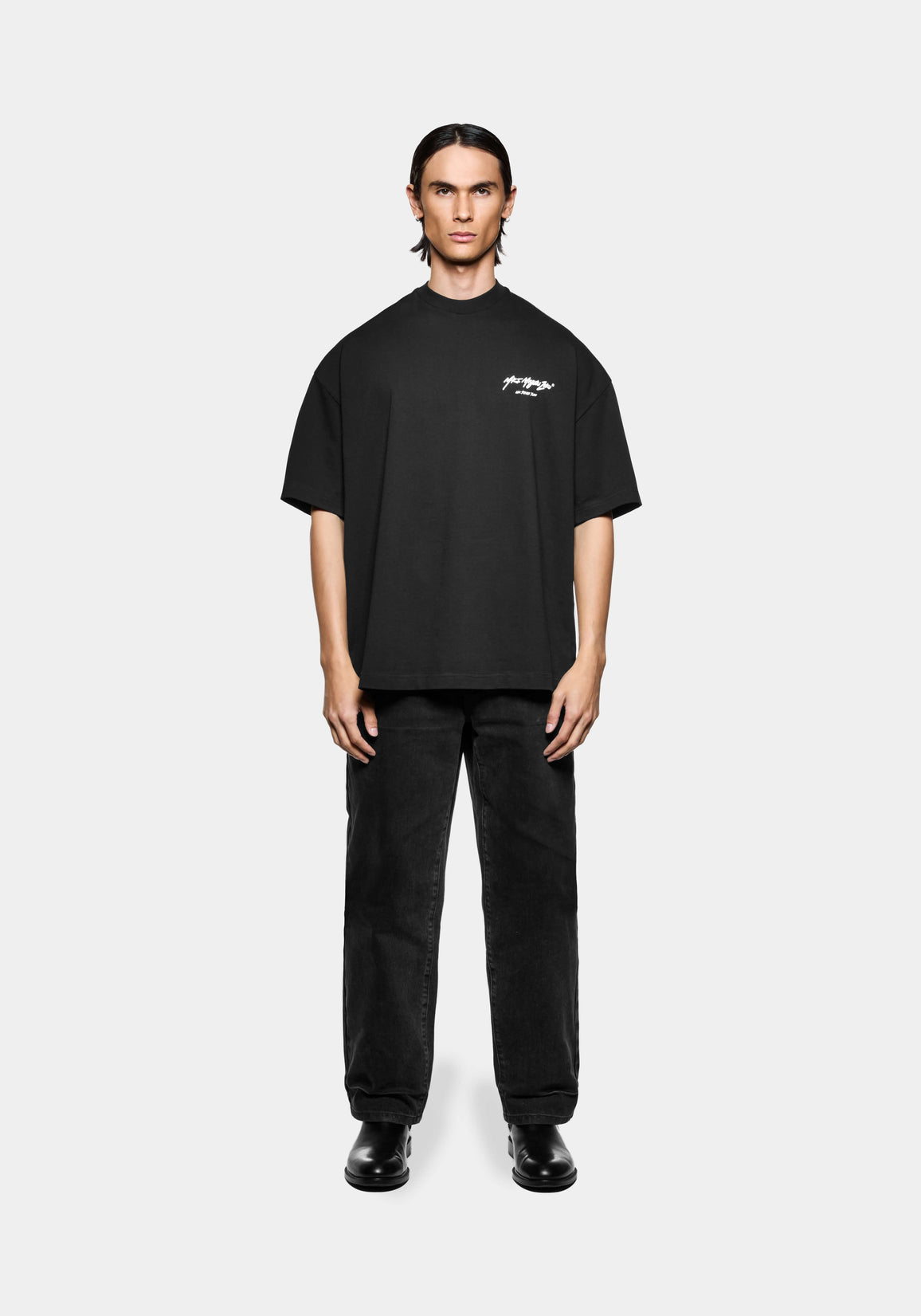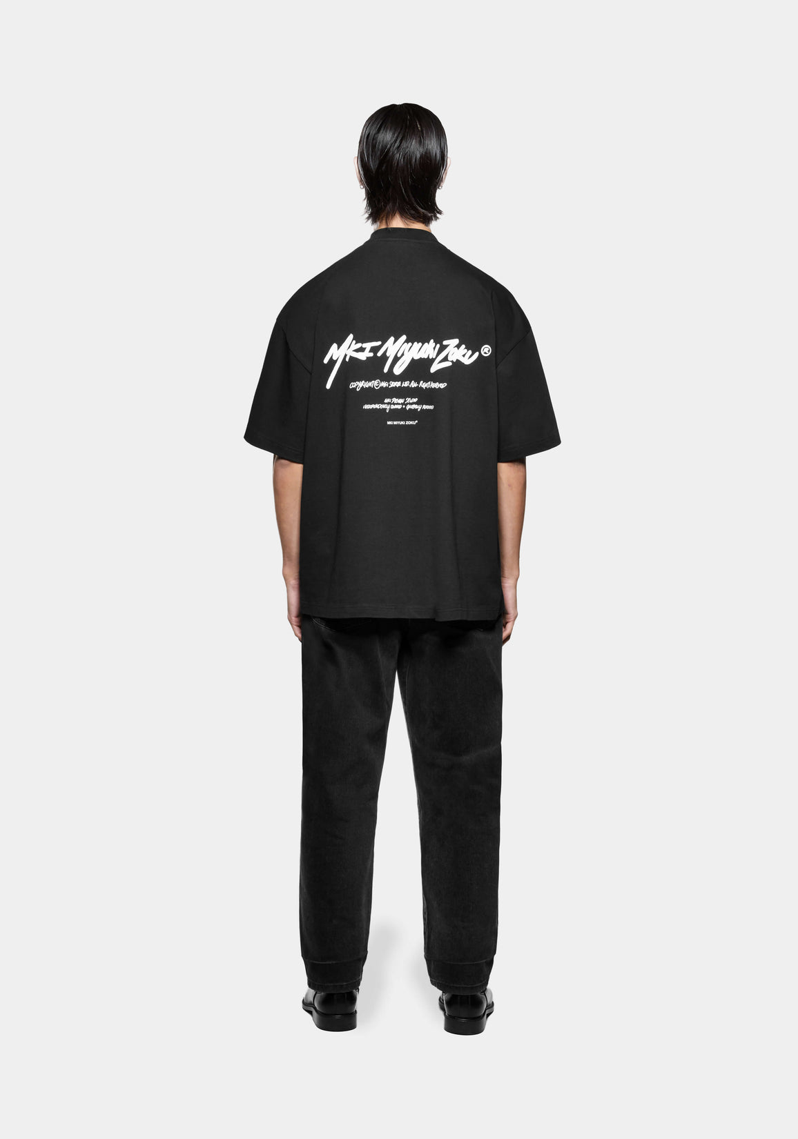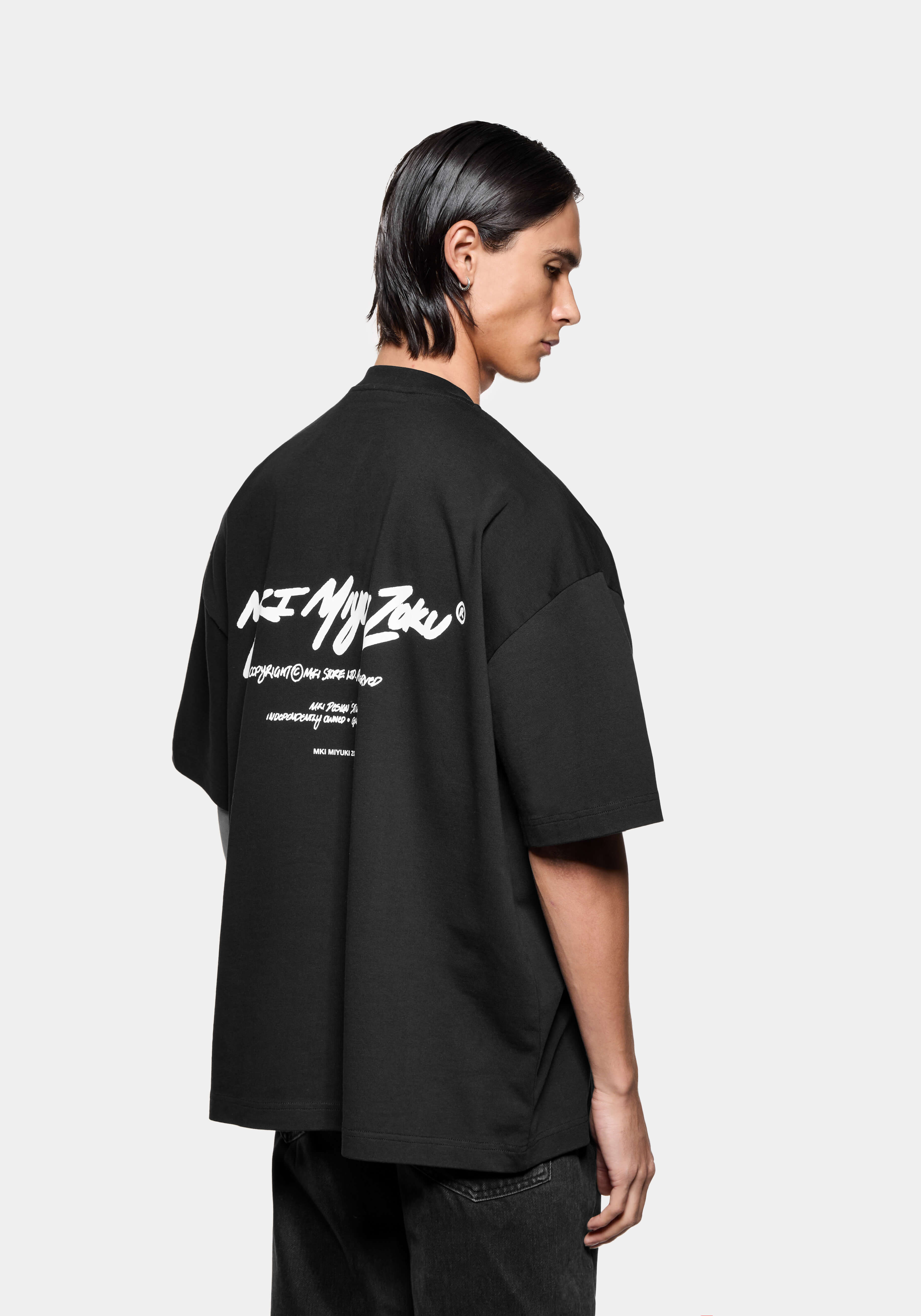 MKI BLACK FRIDAY T SHIRT IN BLACK. MKI MARKS THE OCCASION OF BLACK FRIDAY WITH AN EXCLUSIVE RENDITION ON THE CLASSIC MKI DESIGN STUDIO BRANDING, SCREEN-PRINTED ON HEAVYWEIGHT, 300GSM COTTON JERSEY. CUT TO AN OVERSIZED BOX FIT, THE T-SHIRT IS FINISHED WITH A CLOSE-FITTING NECKLINE AND DROPPED SHOULDERS – PRE-SHRUNK FOR A LONG-LASTING FIT THAT WILL HOLD ITS STRUCTURE THROUGHOUT A LIFETIME OF WEAR.