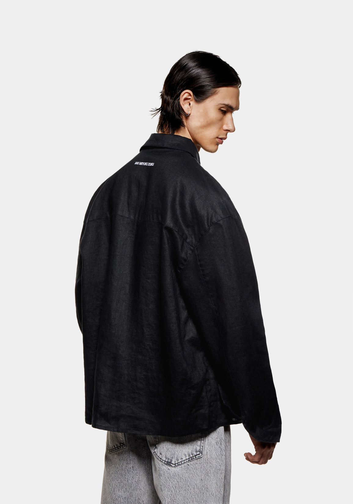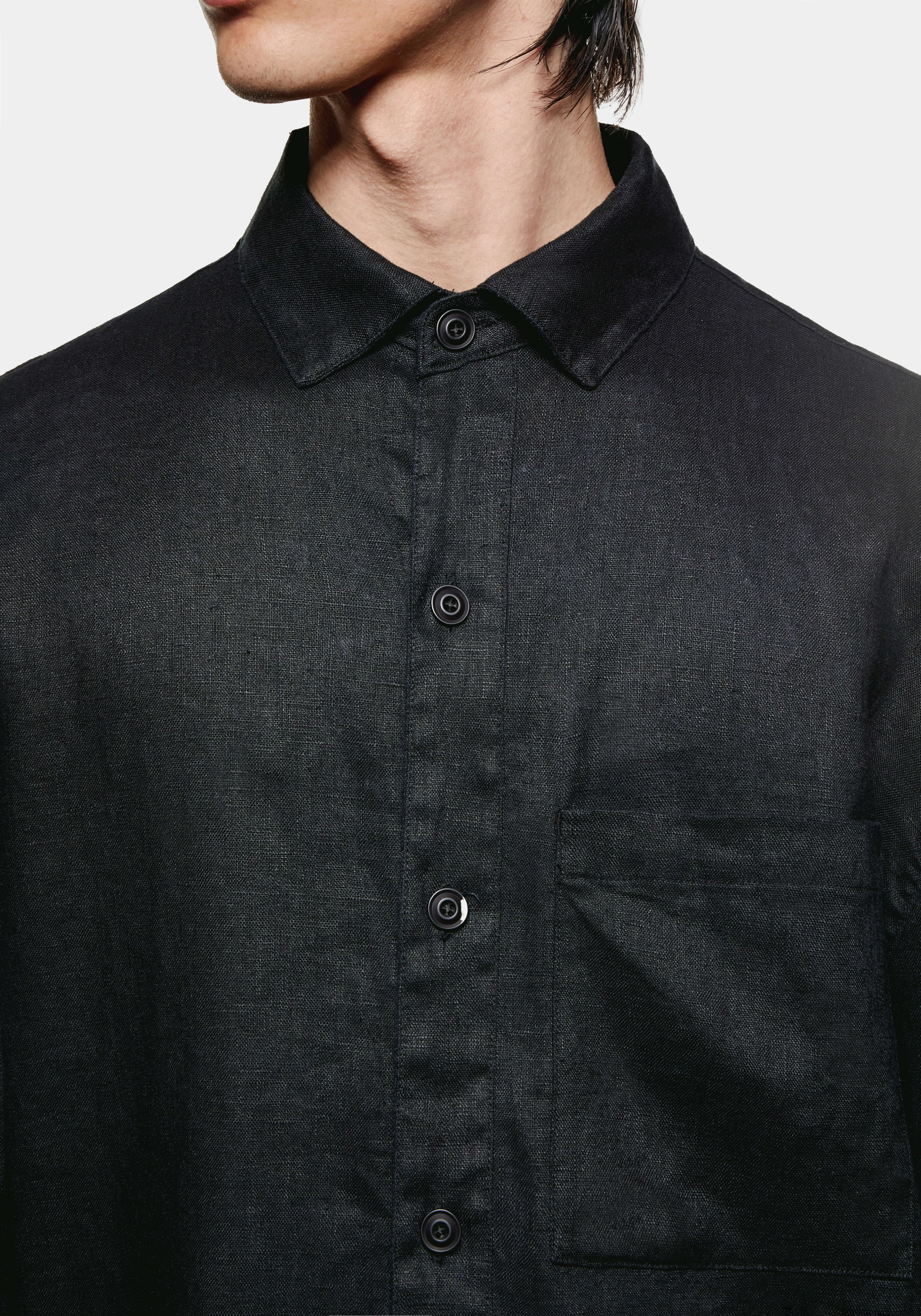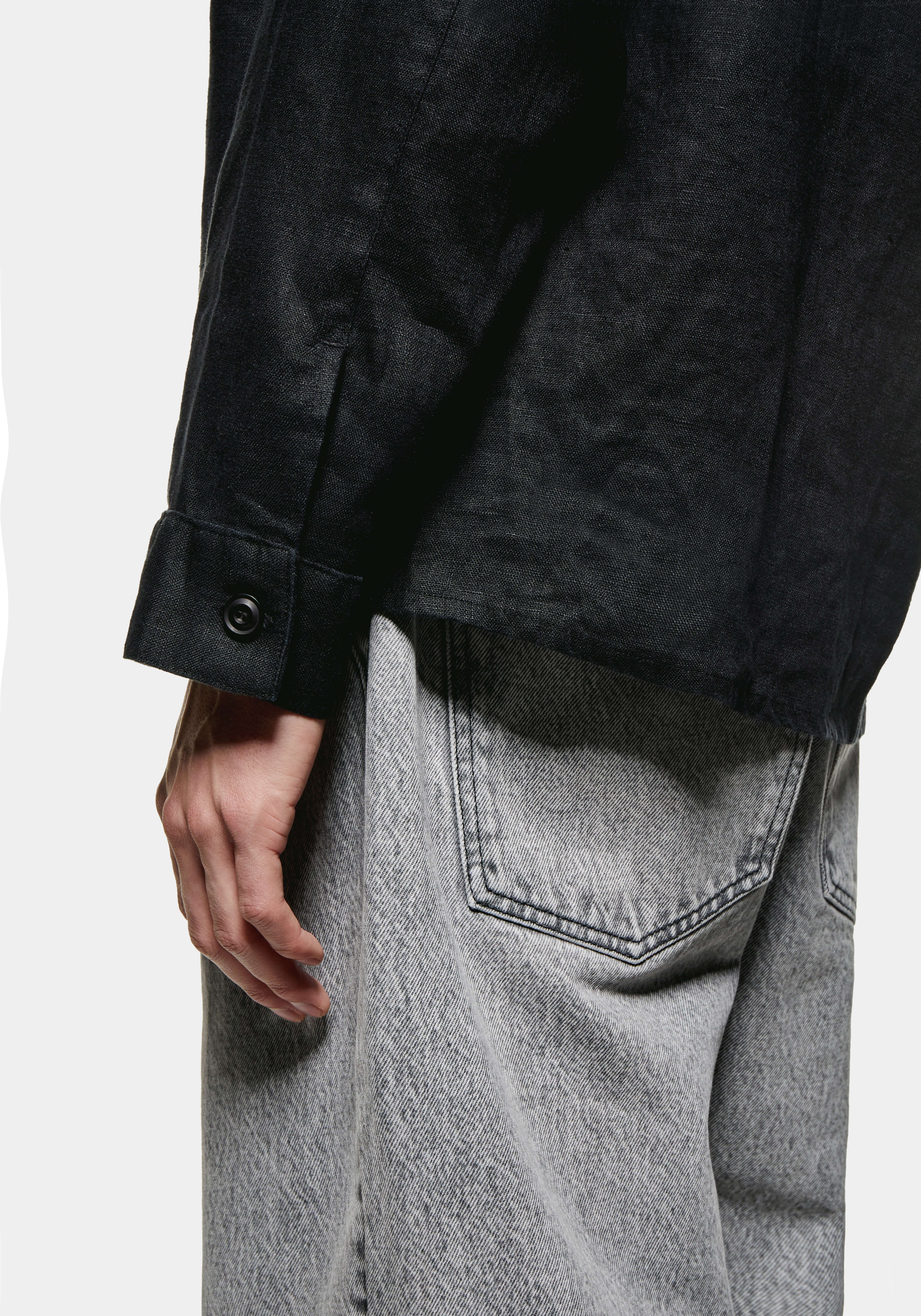 MKI LINEN BOX DRESS SHIRT IN BLACK. THE MKI LINEN BOX DRESS SHIRT IS CRAFTED FROM A TEXTURED WEAVE THAT ELEVATES THE FABRICS NATURAL APPEAL. LIGHT AND BREATHABLE, THIS SHIRT OFFERS A SOFT, COMFORTABLE TOUCH. THE MIDWEIGHT LINEN PROVIDES A BEAUTIFUL STRUCTURE WITH A DRAPE, PERFECTLY COMBINING STYLE AND COMFORT.