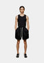THE MODEL IS 6FT WITH A 38" CHEST AND 31" WAIST AND HAS BEEN STYLED IN A MEDIUM. WE RECOMMEND PURCHASING YOUR REGULAR SIZE, FOR THE DESIRED FIT. THE MODEL IS ALSO WEARING THE MKI VEST IN BLACK.
