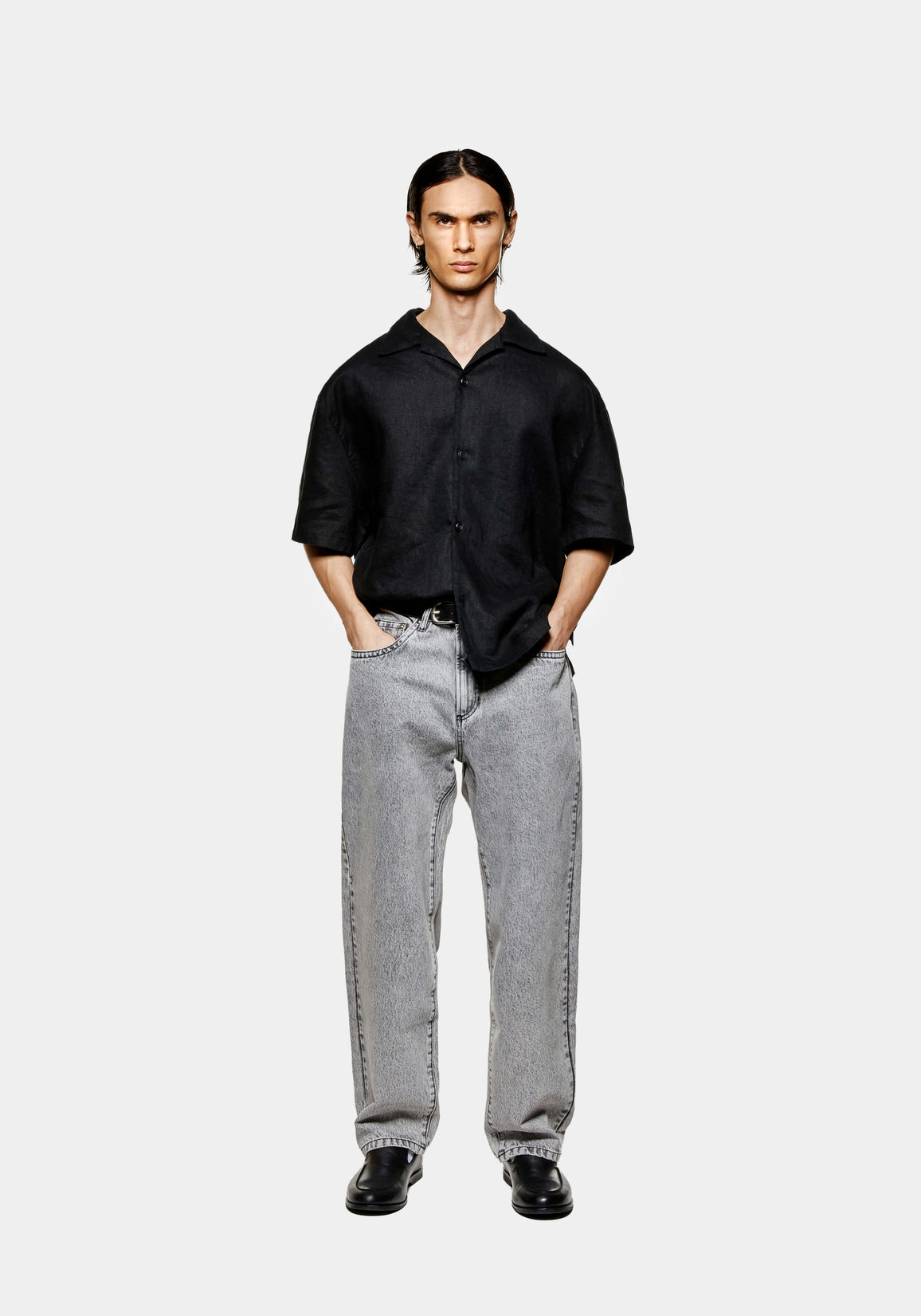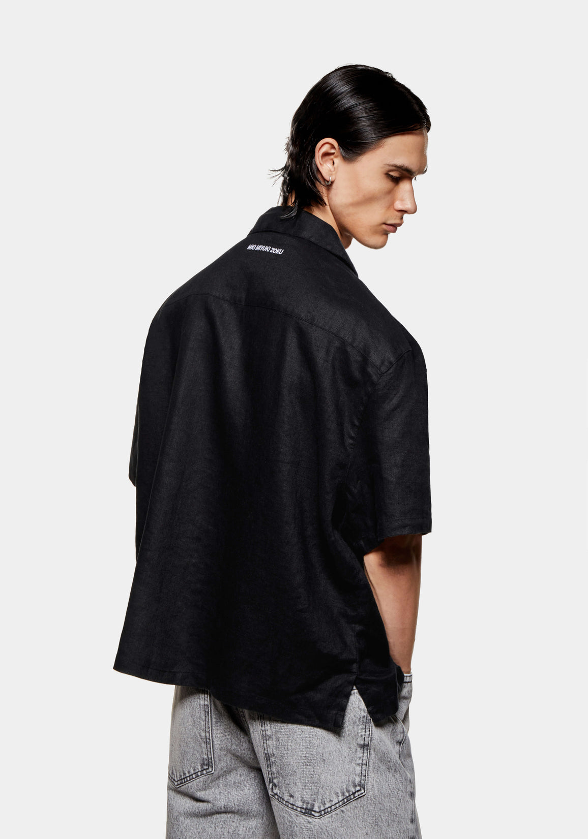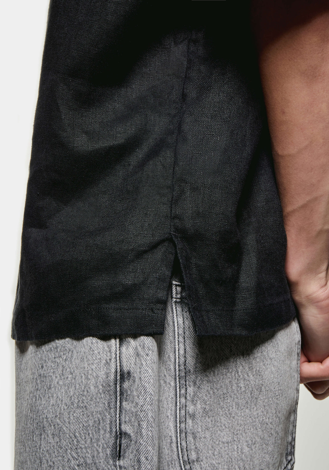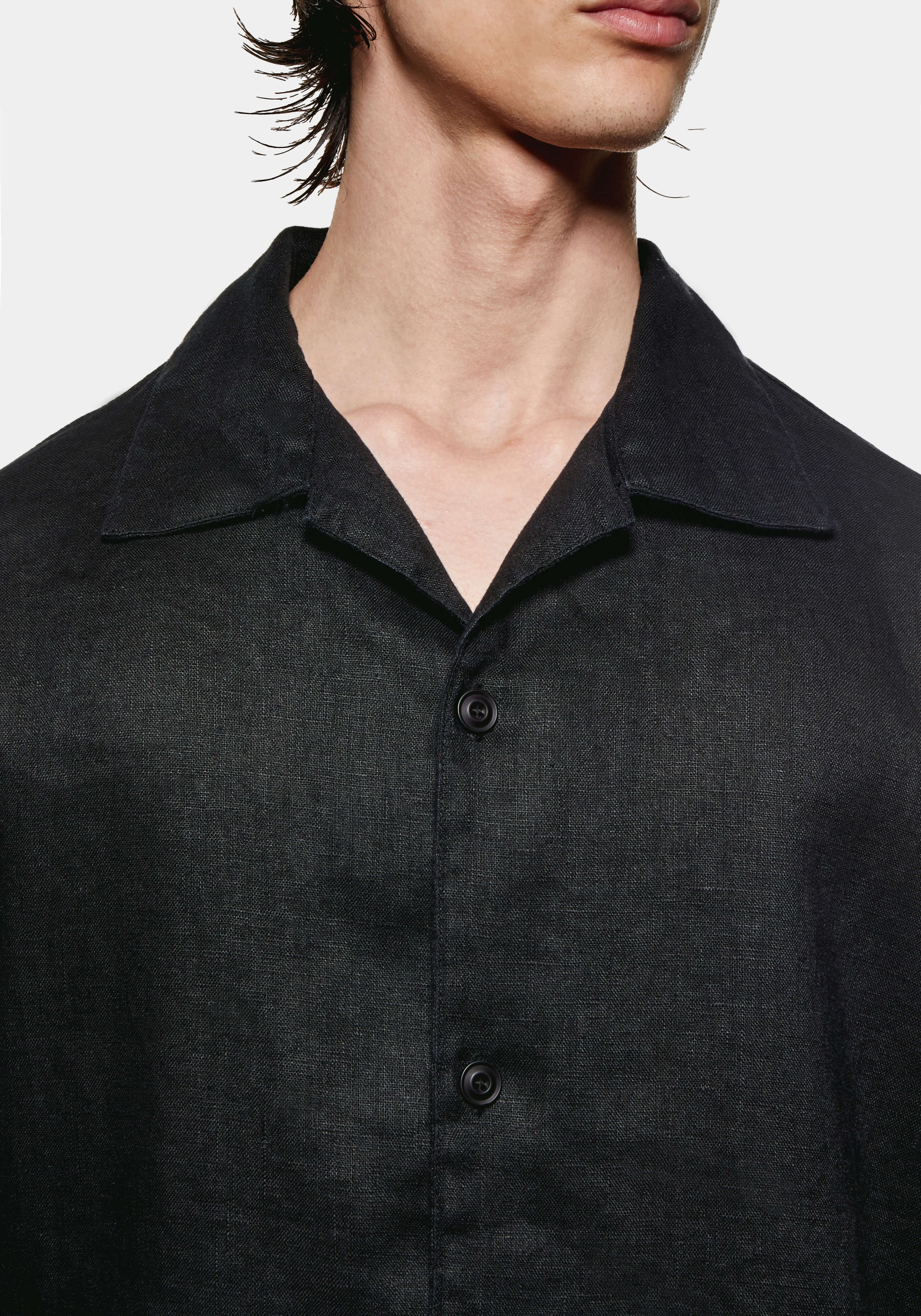 MKI LINEN VACATION SHIRT IN BLACK. THE MKI LINEN VACATION SHIRT FEATURES A TEXTURED WEAVE THAT HIGHLIGHTS THE NATURE OF THE FABRIC. THIS PIECE IS BREATHABLE AND LIGHTWEIGHT WITH A SOFT HAND FEEL. THE MIDWEIGHT LINEN PROVIDES PERFECT STRUCTURE AND DRAPE.