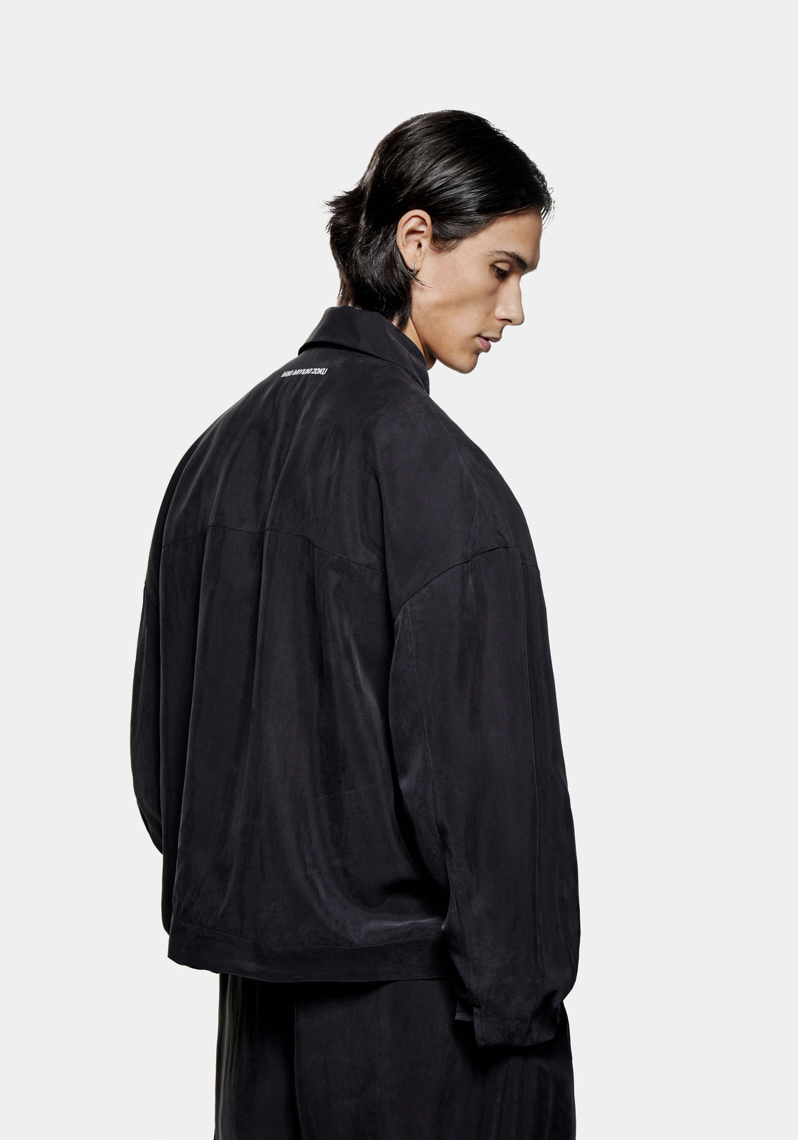 THE MODEL IS 6FT WITH A 38" CHEST AND 31" WAIST AND HAS BEEN STYLED IN A MEDIUM. WE RECOMMEND PURCHASING YOUR REGULAR SIZE, FOR THE DESIRED FIT. THE MODEL IS ALSO WEARING MKI SANDWASH CUPRO WIDE LEG TROUSERS.