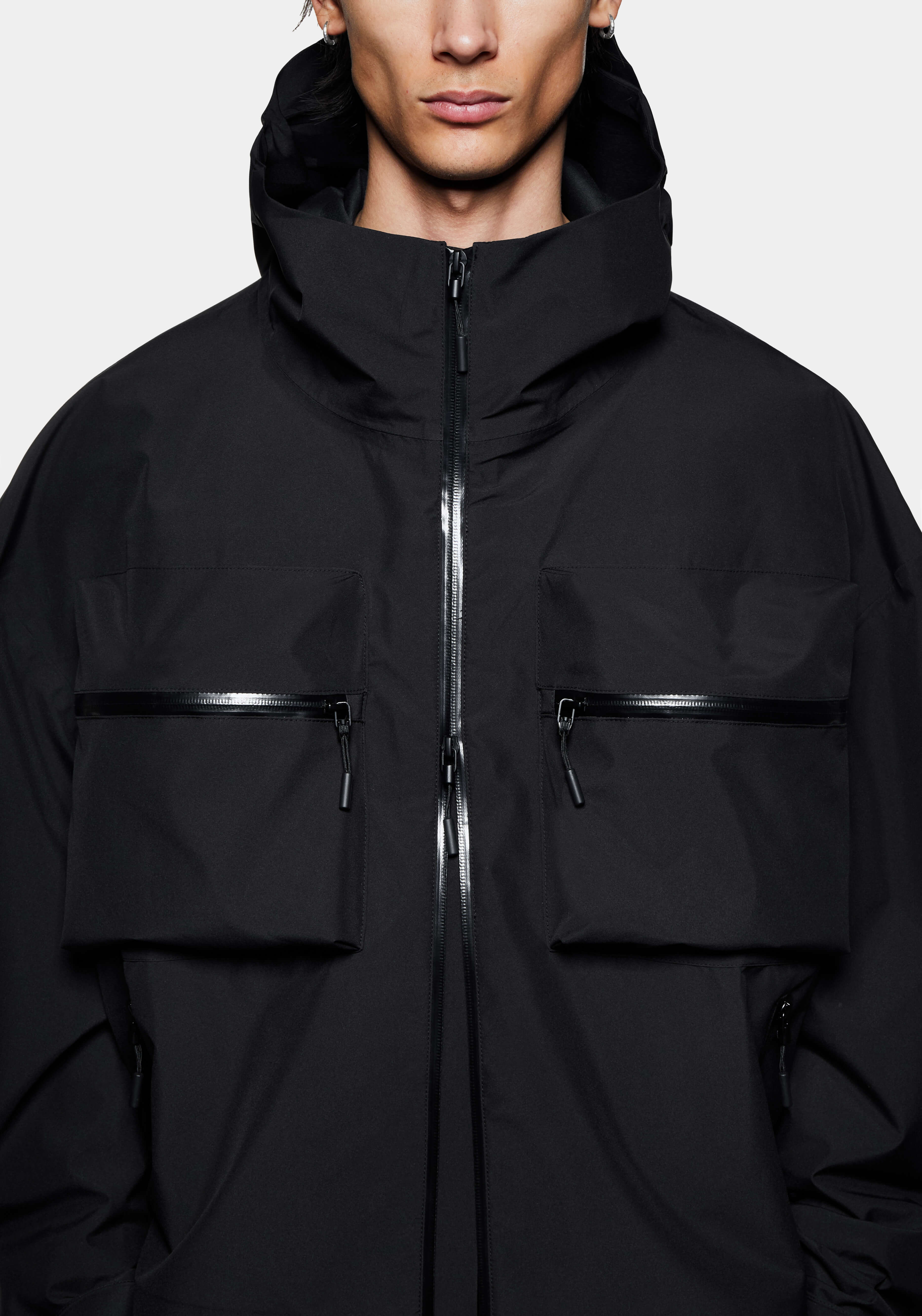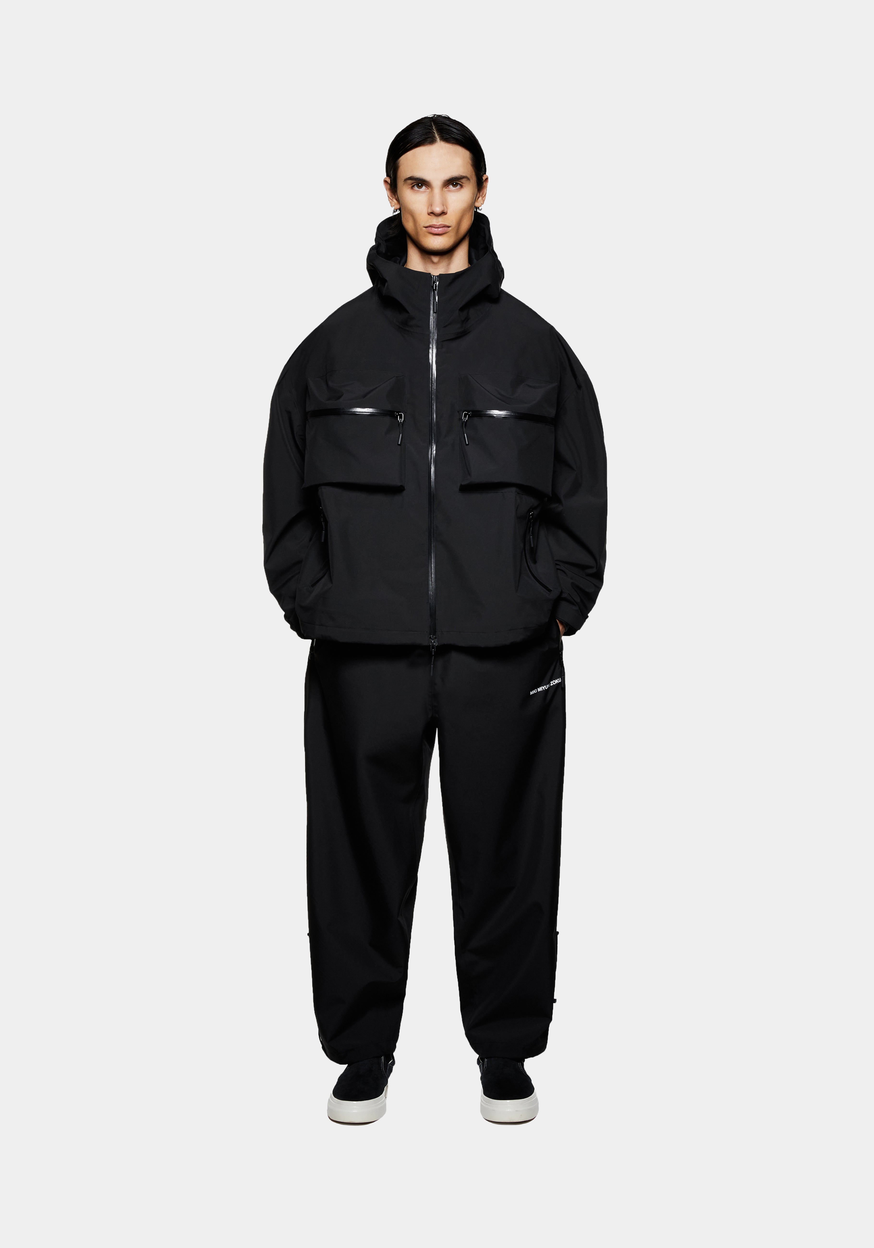 MKI SHELL BOX JACKET IN BLACK. THE NEW V3 SHELL BOX JACKET, FEATURING 3D CHEST POCKETS AND A 2-WAY HIGH-GLOSS ZIP FRONT, BLENDS TECHNICAL PERFORMANCE WITH ELEVATED DESIGN FOR A CONTEMPORARY LOOK.