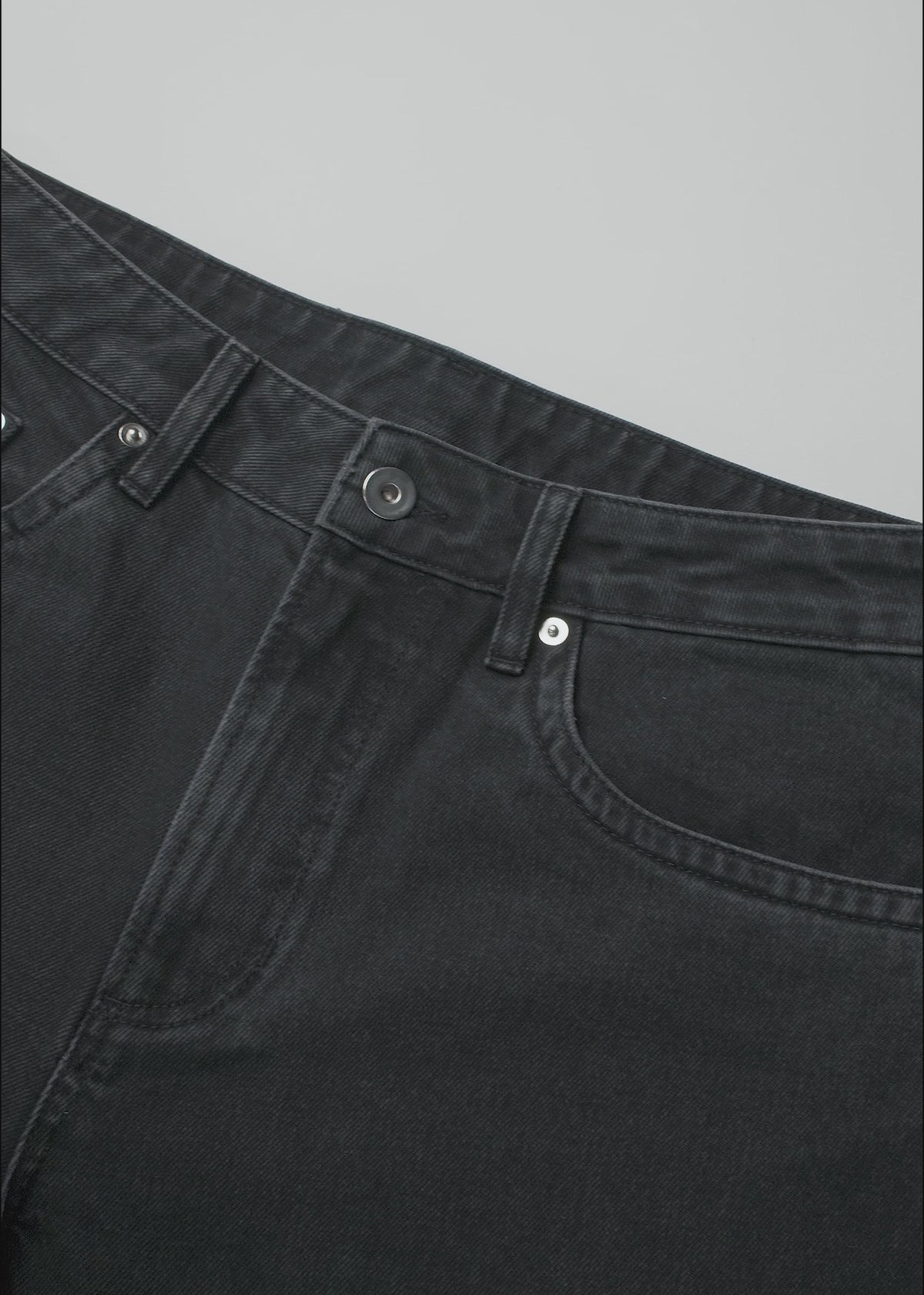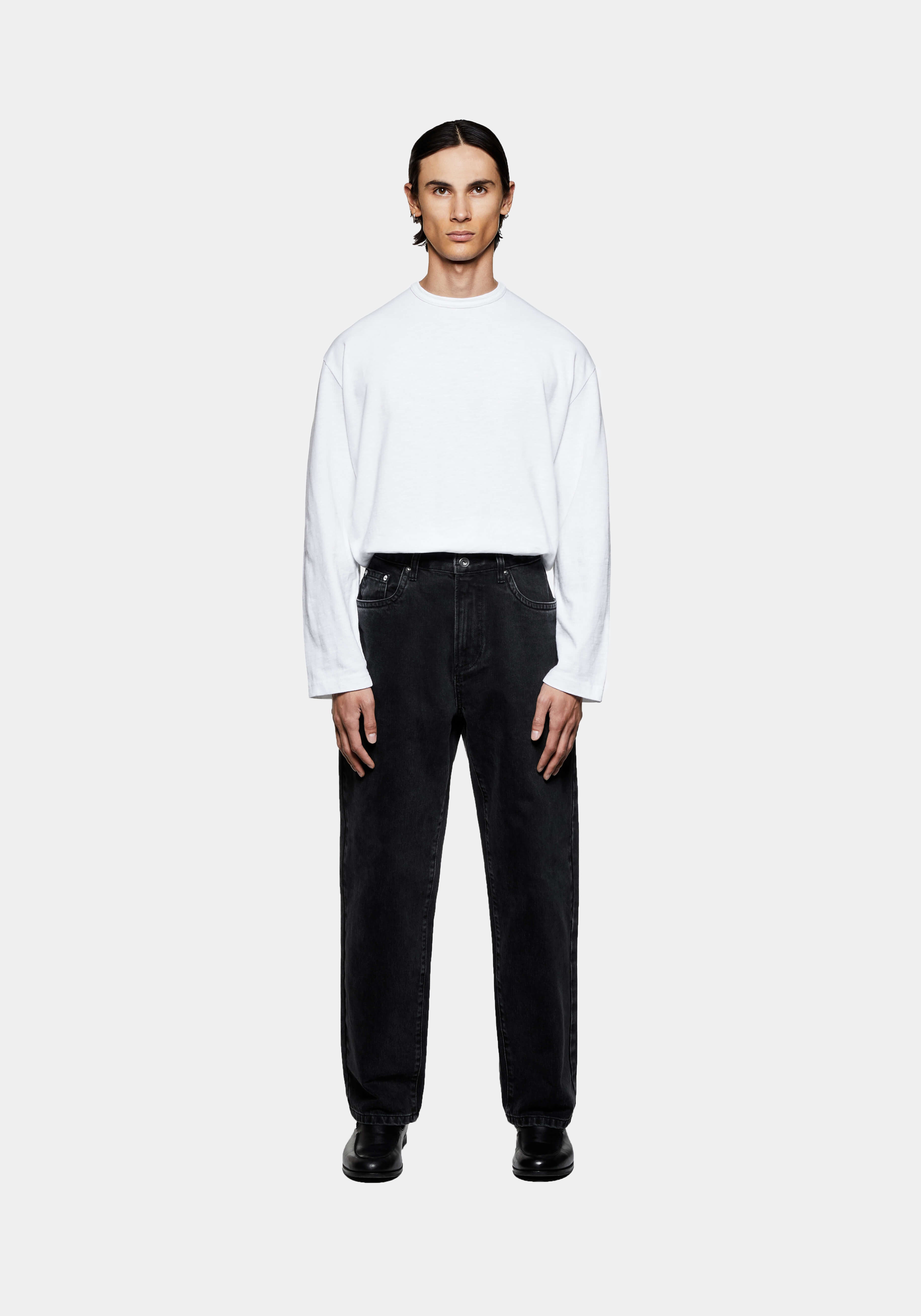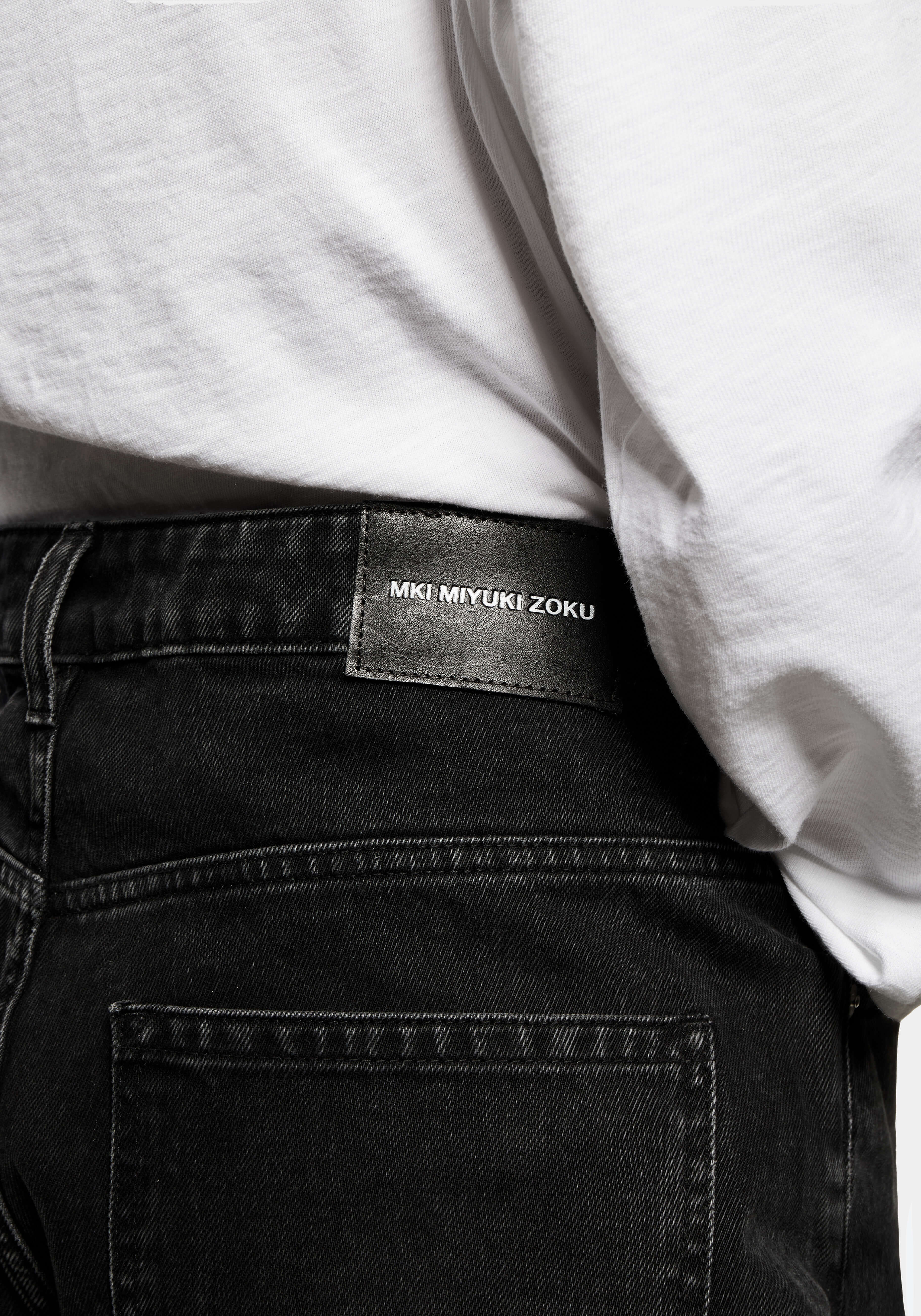 MKI DENIM CLASSIC JEAN IN BLACK WASH. A REVISION ON A BRAND FAVOURITE FROM SS25, THE MKI DENIM CLASSIC JEAN RETURNS IN A RICH BLACK WASH TO SUIT THE FW25 SEASON. STILL KEEPING THE SAME, CLASSIC STRAIGHT FIT, THE 14OZ COTTON DENIM JEANS DISPLAY A TRADITIONAL FIVE-POCKET CONSTRUCTION – COMPRISING A ZIP FLY, DONUT BUTTON CLOSURE AND EXPOSED RIVETS. A TONAL LEATHER PATCH WITH MKI BRANDING IS APPLIED TO THE REAR RIGHT WAISTBAND, GIVING A POLISHED TOUCH TO A TIMELESS MENSWEAR CLASSIC.