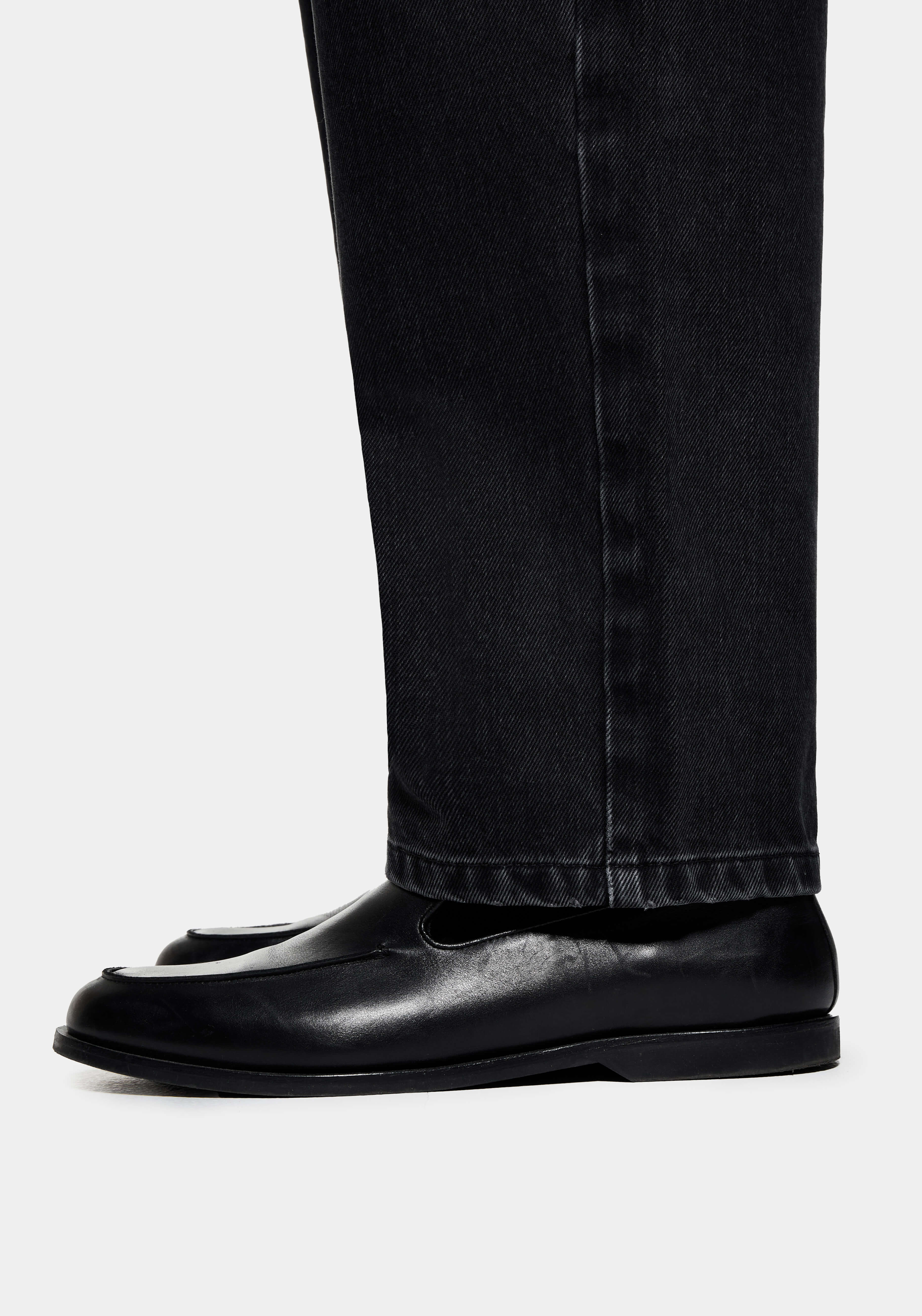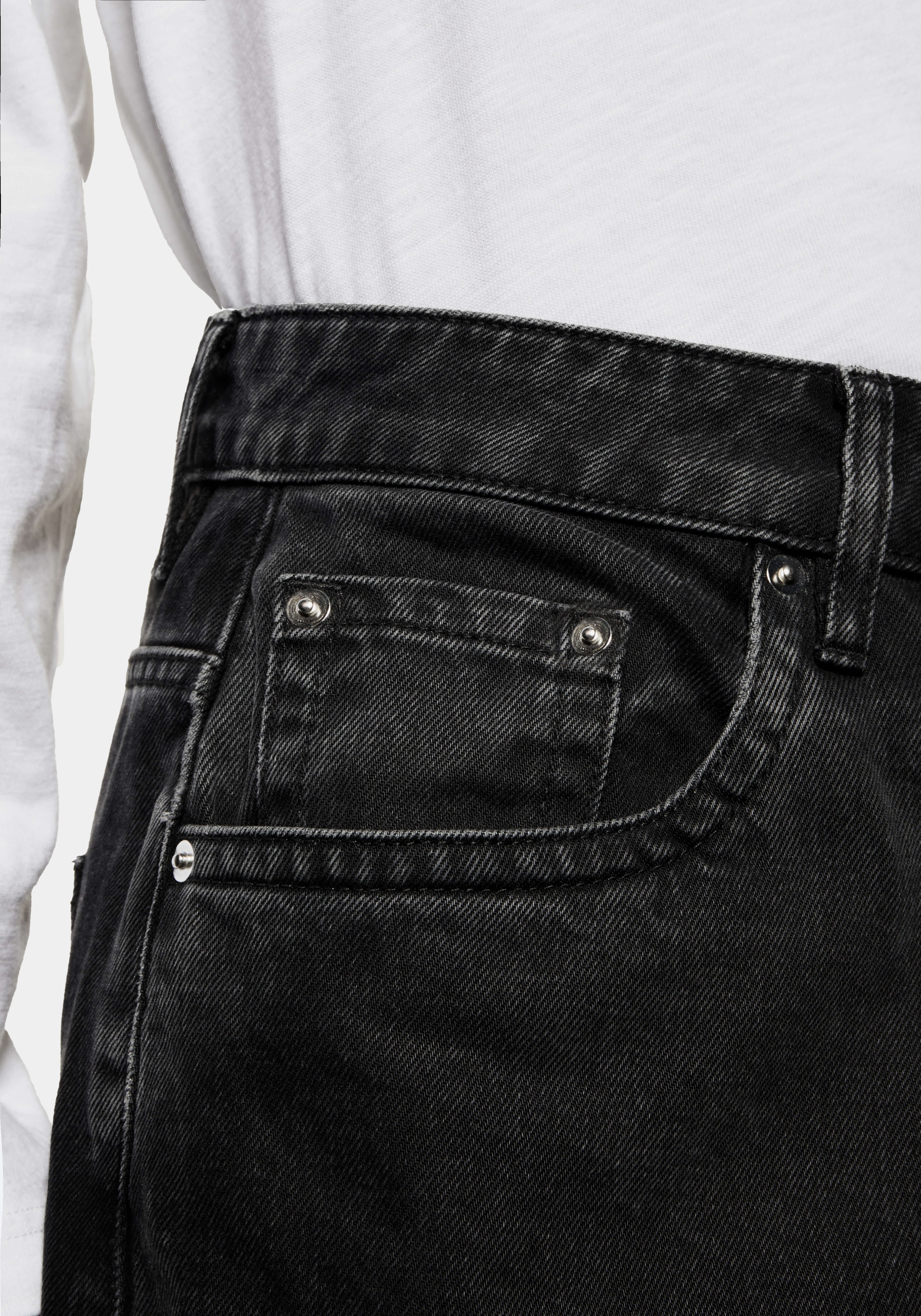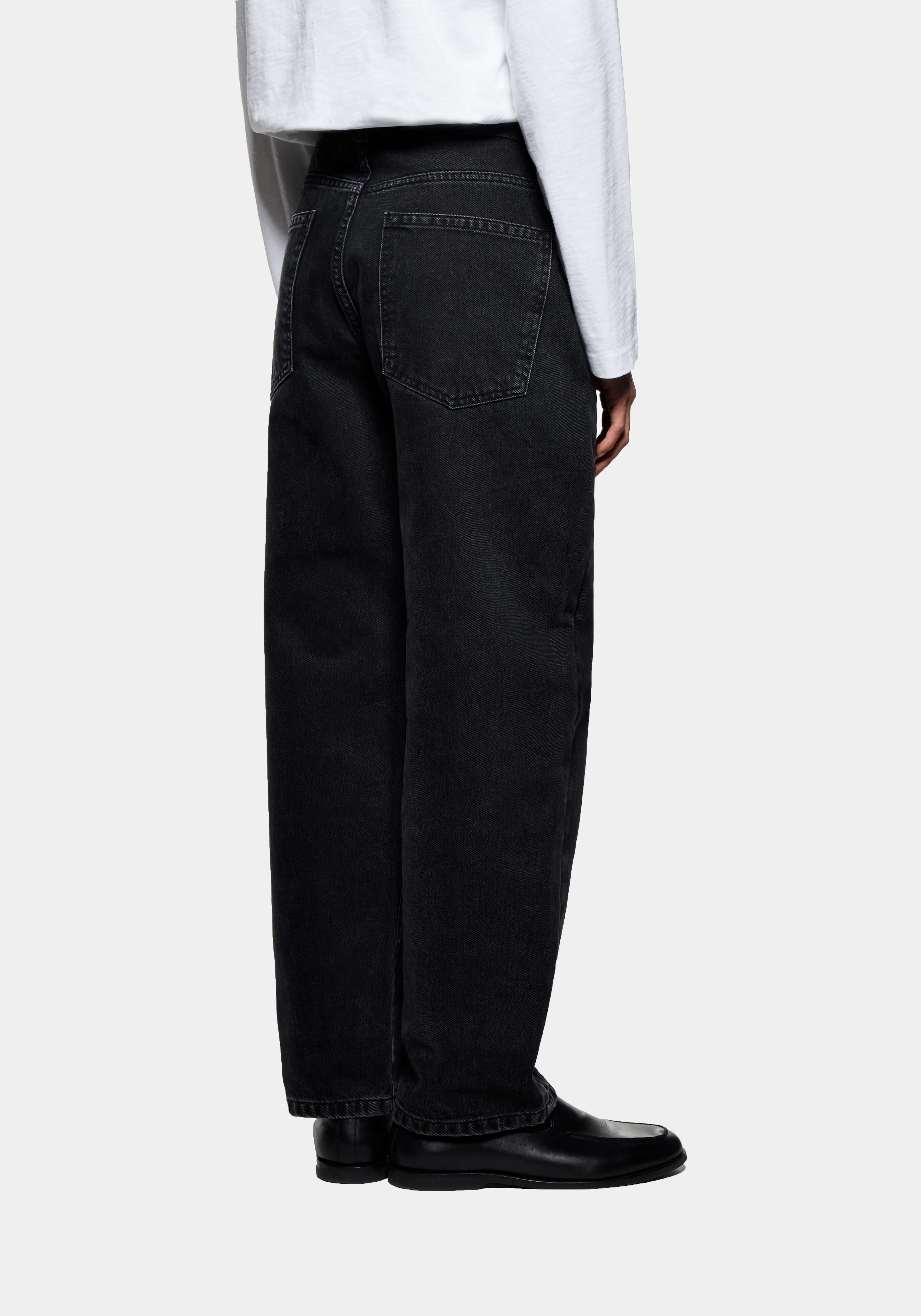 MKI DENIM CLASSIC JEAN IN BLACK WASH. A REVISION ON A BRAND FAVOURITE FROM SS25, THE MKI DENIM CLASSIC JEAN RETURNS IN A RICH BLACK WASH TO SUIT THE FW25 SEASON. STILL KEEPING THE SAME, CLASSIC STRAIGHT FIT, THE 14OZ COTTON DENIM JEANS DISPLAY A TRADITIONAL FIVE-POCKET CONSTRUCTION – COMPRISING A ZIP FLY, DONUT BUTTON CLOSURE AND EXPOSED RIVETS. A TONAL LEATHER PATCH WITH MKI BRANDING IS APPLIED TO THE REAR RIGHT WAISTBAND, GIVING A POLISHED TOUCH TO A TIMELESS MENSWEAR CLASSIC.
