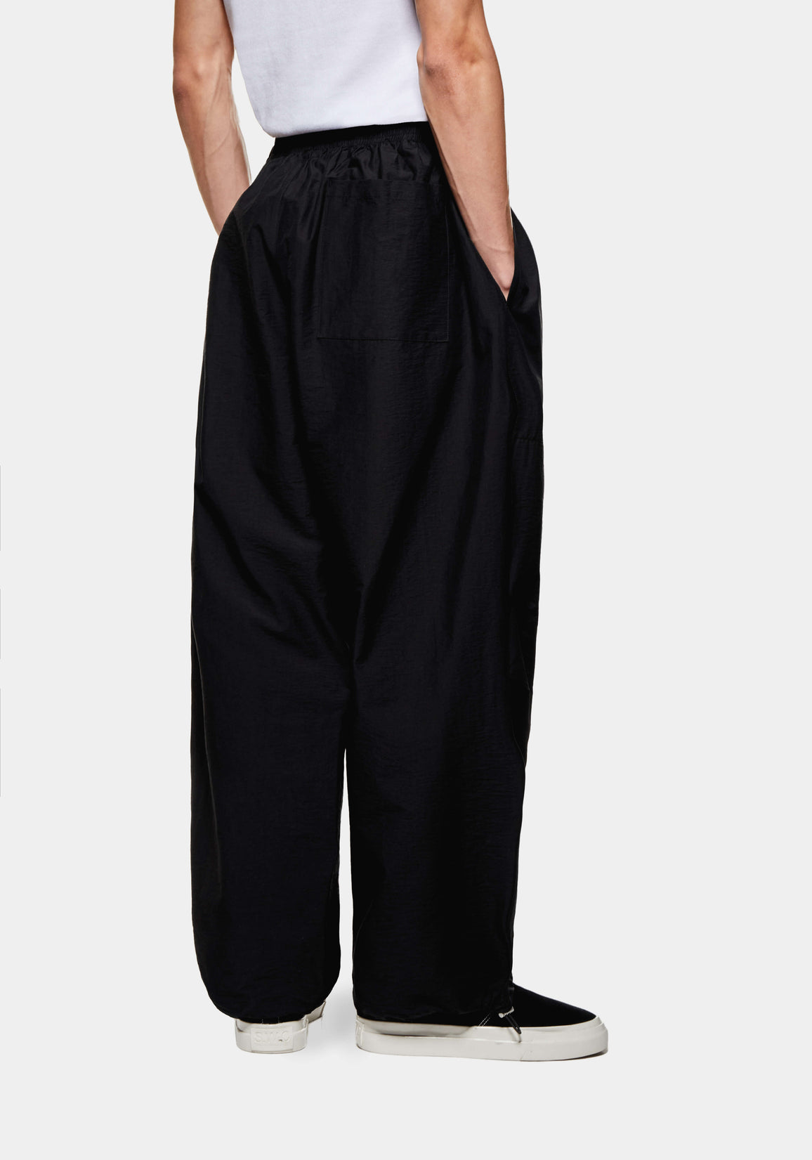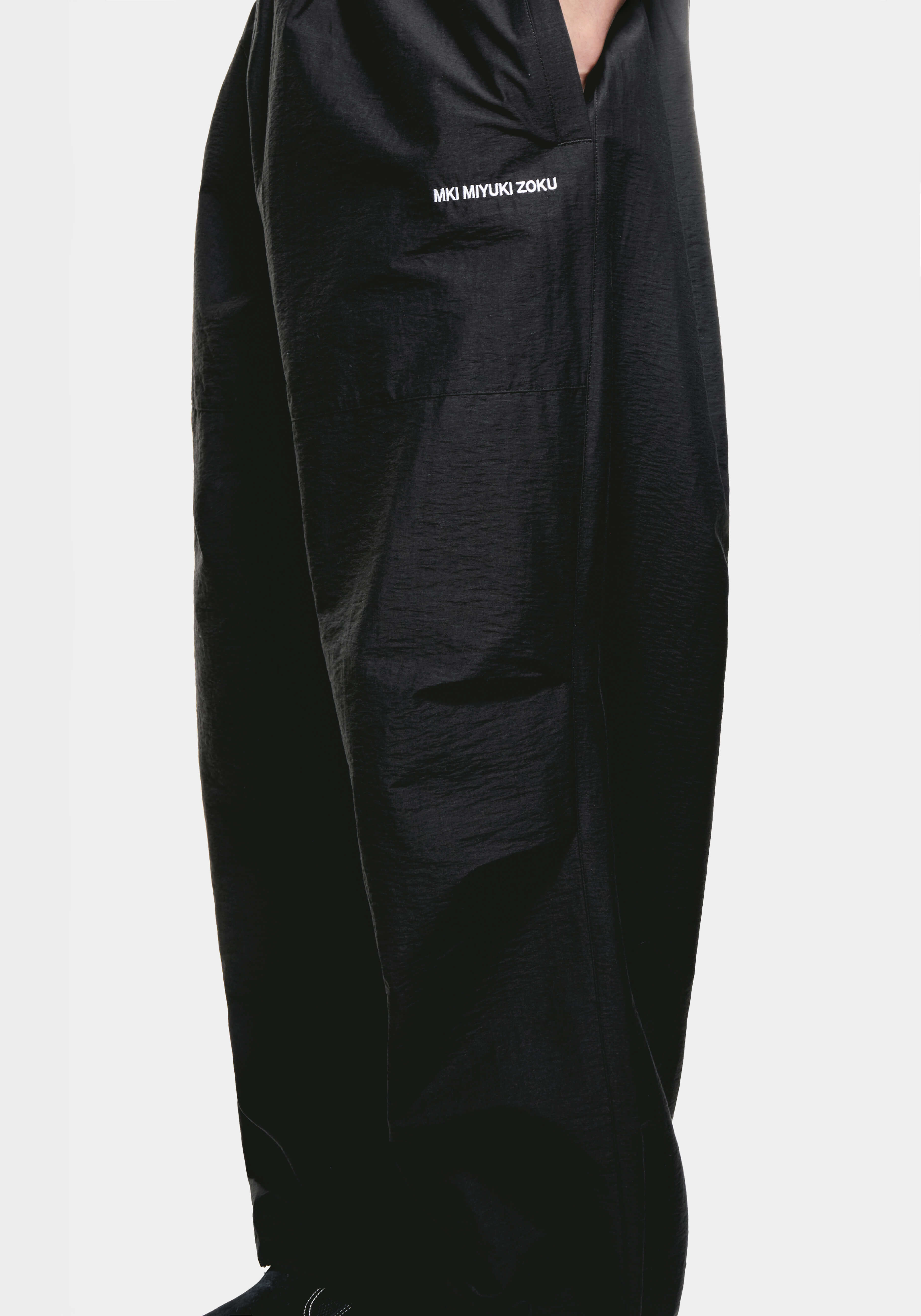 MKI WASHED COTTON NYLON PARACHUTE PANT IN BLACK. THE SS25 WASHED COTTON NYLON COLLECTION FEATURES A TEXTURED BLEND OF COTTON AND NYLON, WASHED FOR A SOFT, LIGHTWEIGHT FEEL. THE MKI WASHED COTTON NYLON COLLECTION OFFERS EFFORTLESS COMFORT AND MODERN DESIGN.