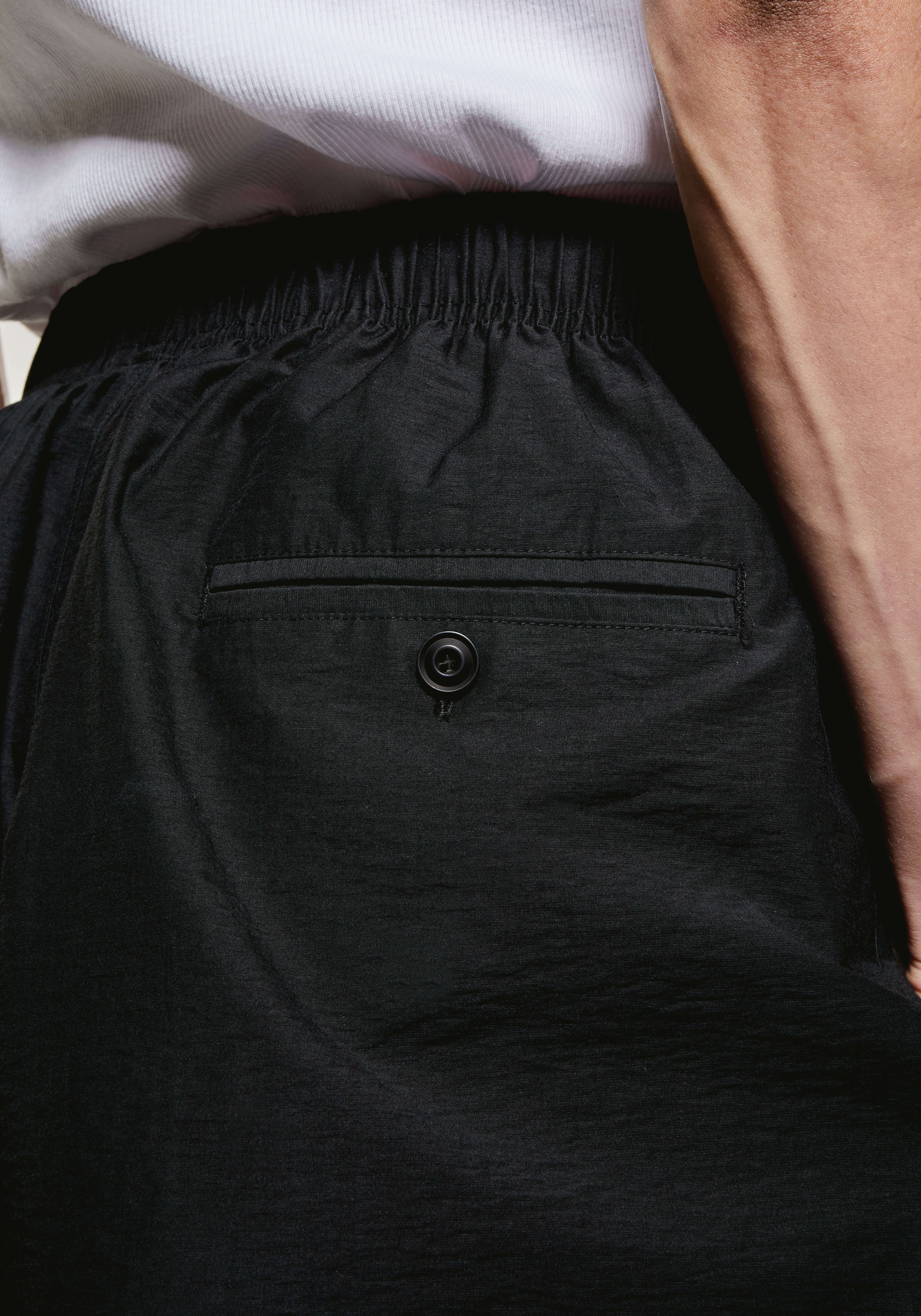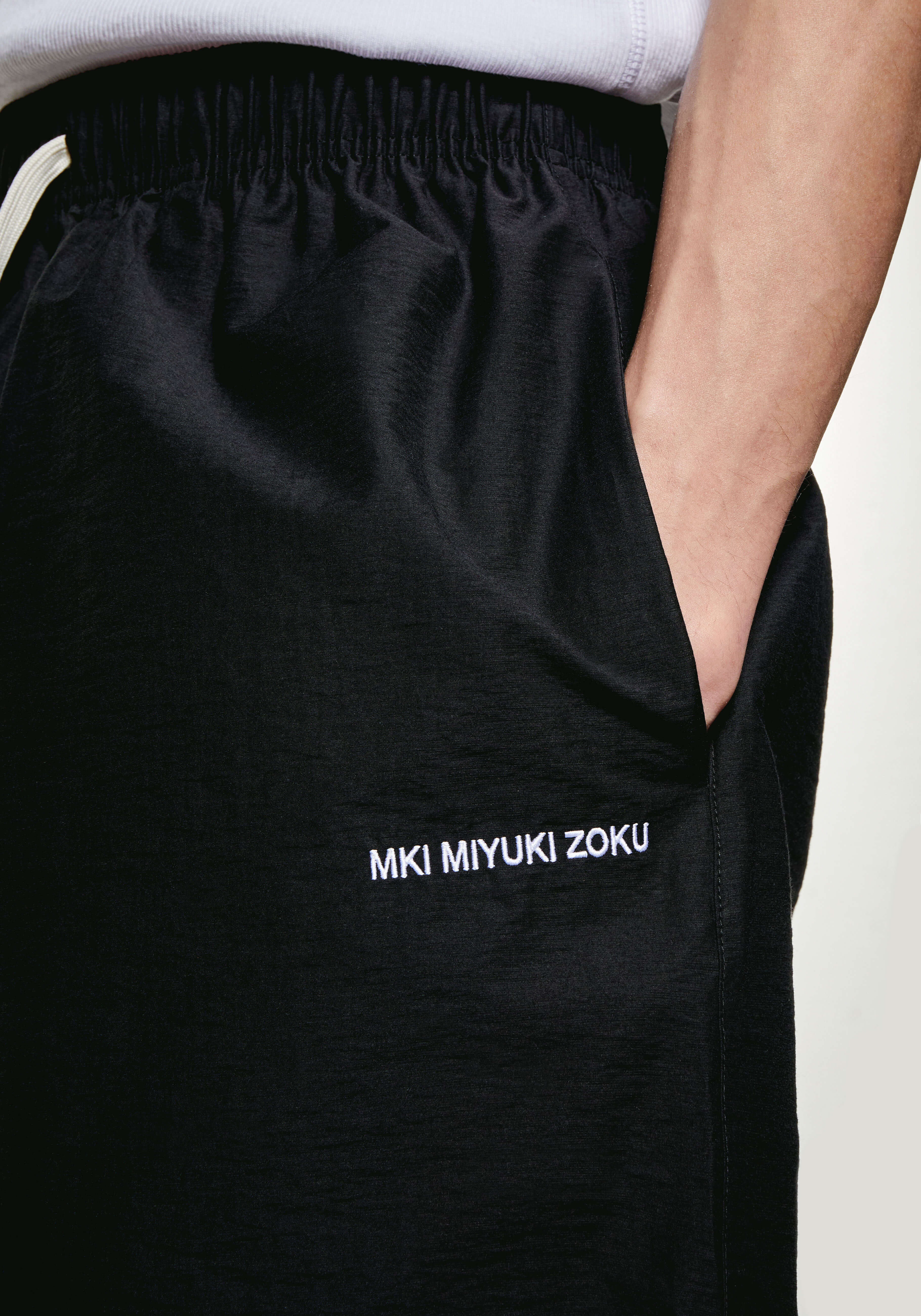 MKI WASHED COTTON NYLON SHORTS IN BLACK. FOR SS25, THE WASHED COTTON NYLON COLLECTION FEATURES A GENTLY TEXTURED BLEND OF COTTON AND NYLON, WASHED FOR A SOFT HANDLE AND LIGHTWEIGHT FEEL.