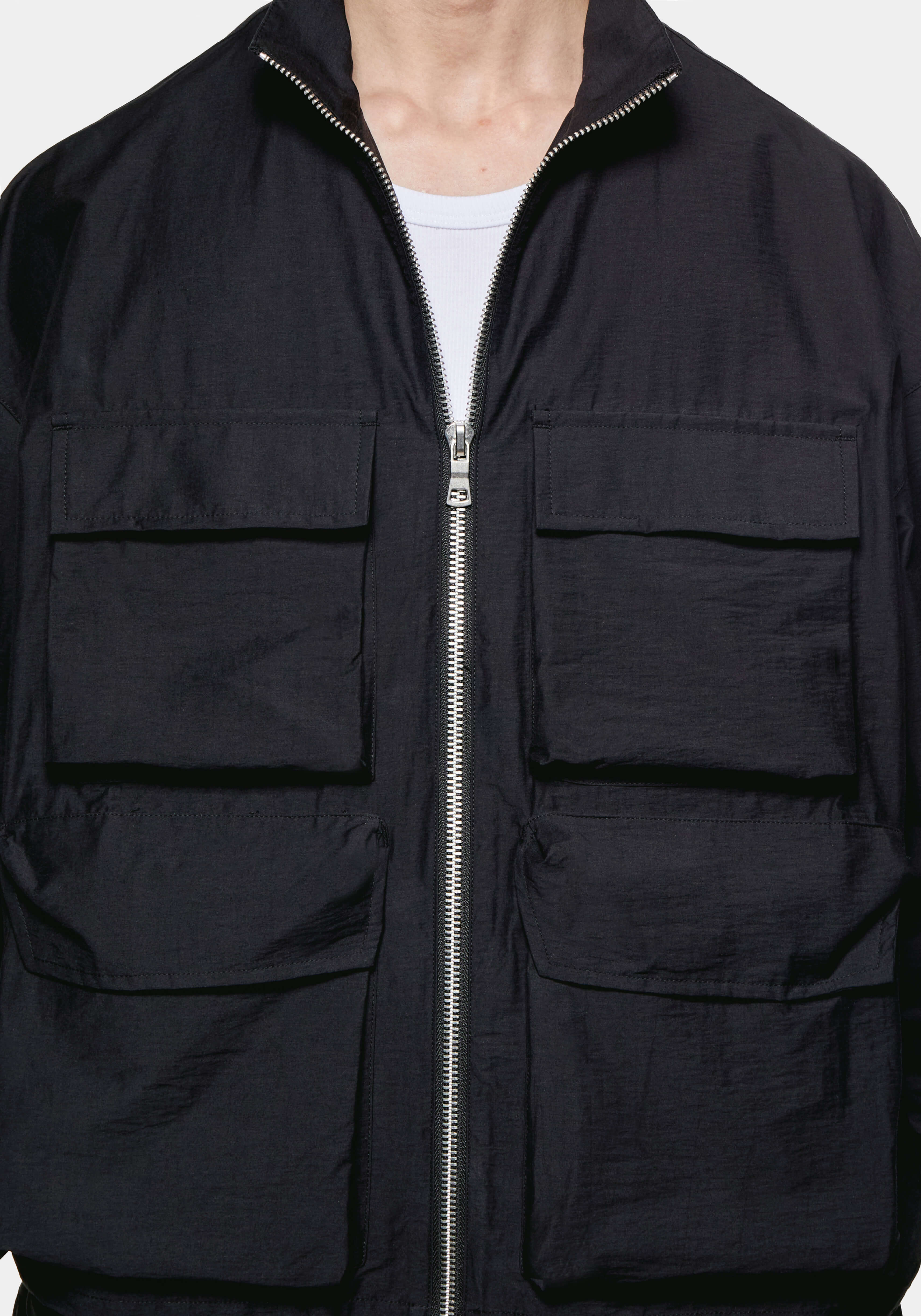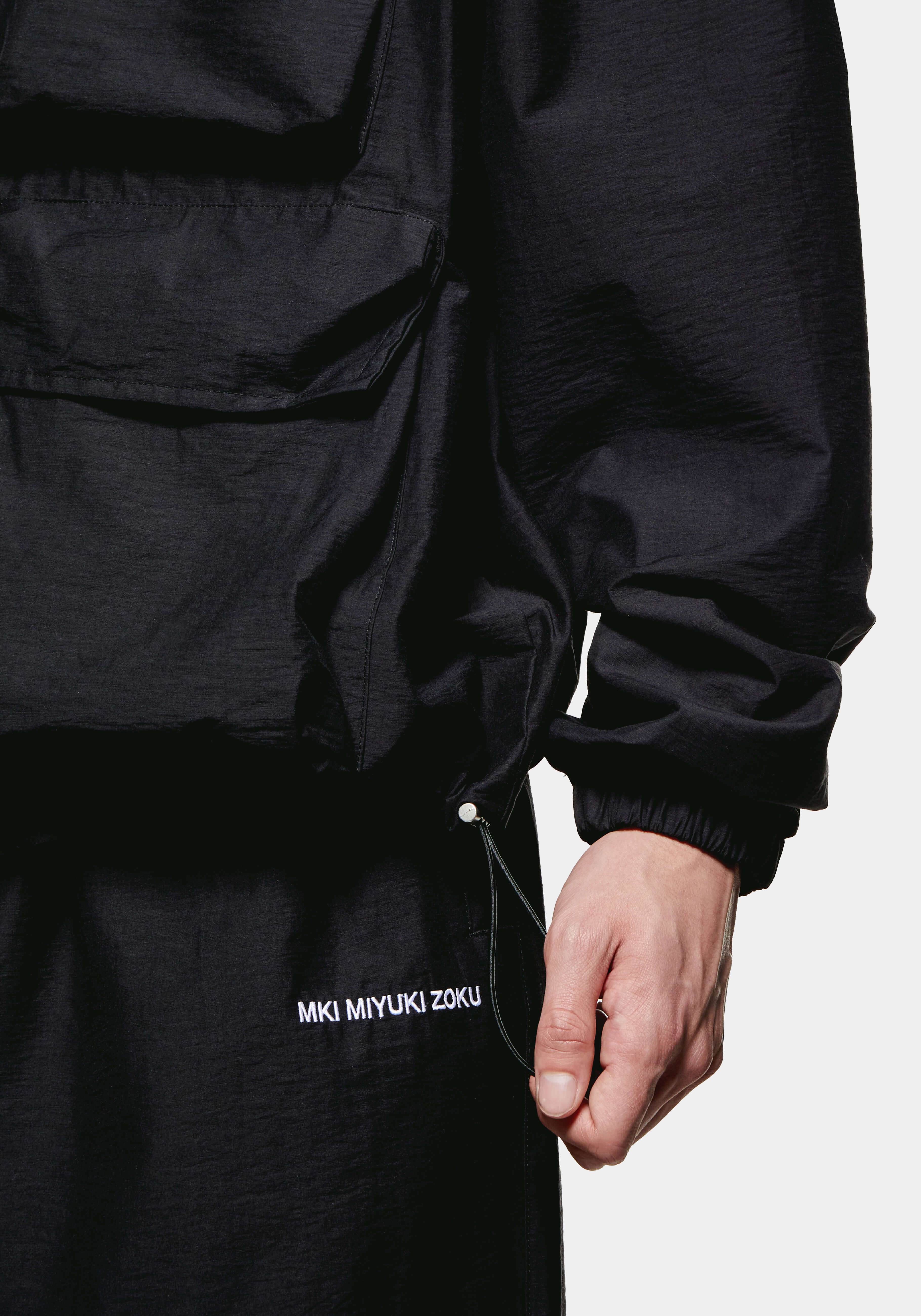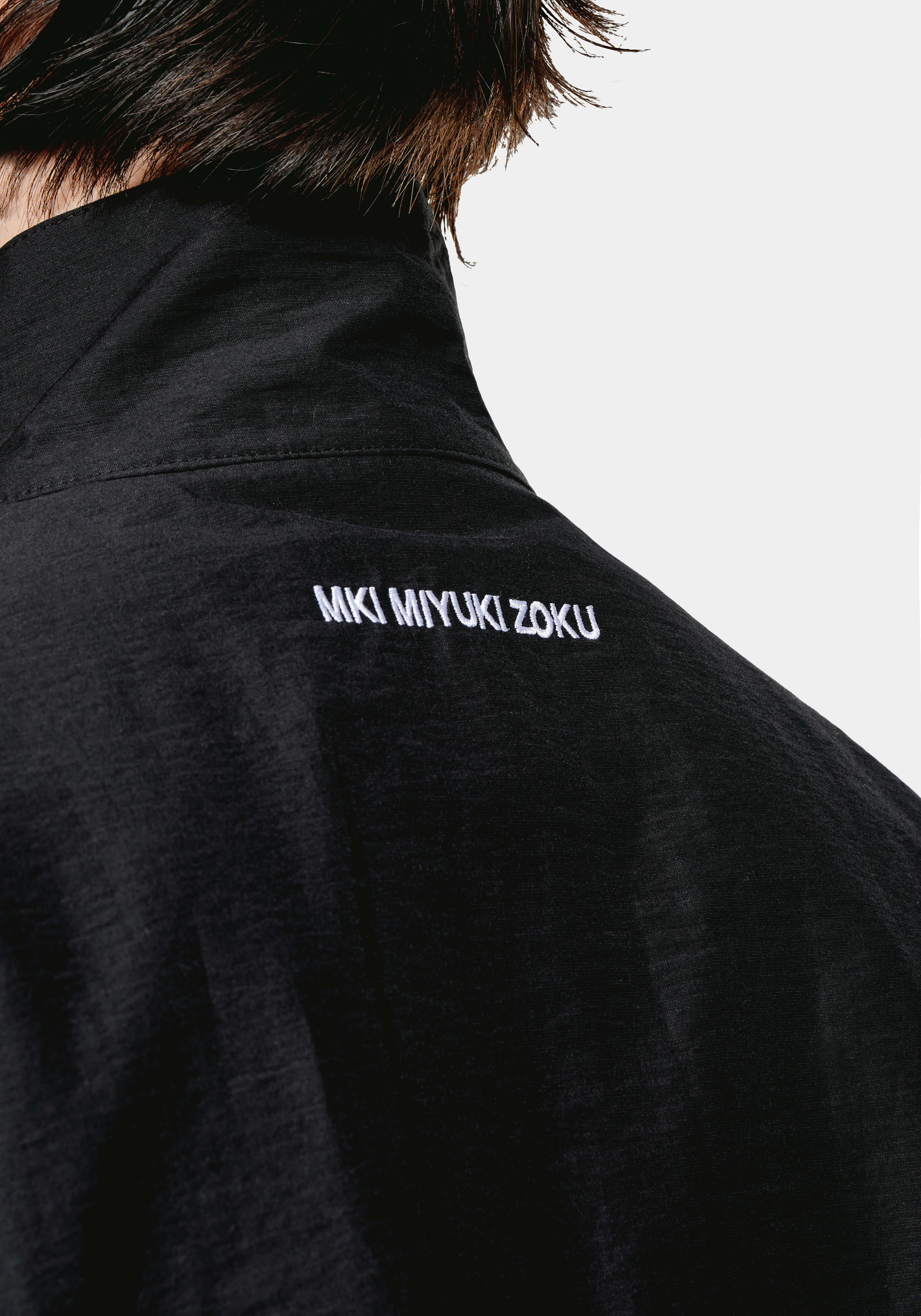 MKI WASHED COTTON NYLON TRACK JACKET IN BLACK. THE SS25 WASHED COTTON NYLON COLLECTION FEATURES A TEXTURED COTTON AND NYLON BLEND, WASHED FOR A SOFT, LIGHTWEIGHT TOUCH. A MODERN TAKE ON MILITARY INSPIRED STYLES, FUSING COMFORT WITH CONTEMPORARY DESIGN.