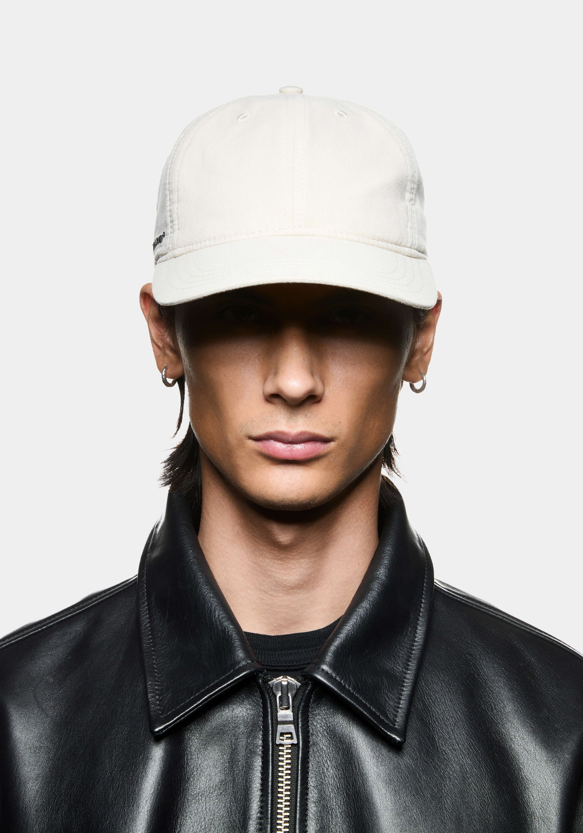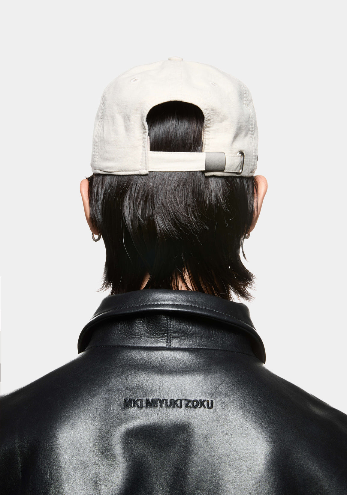 MKI 6 PANEL CAP IN BONE. A NEW ENTRY IN MKI’S HEADWEAR OFFERING, THE 6-PANEL BALL CAP IS A CONCENTRATED VISION OF CONTEMPORARY HEADWEAR FEATURING SIGNATURE MKI EMBROIDERY ALONG THE RIGHT SIDE OF THE CAP. CONSTRUCTED FROM 100% COTTON, THE CAP FEATURES A RIGID CURVED PEAK AND MATCHING REAR STRAP, HELD TOGETHER BY A SILVER METAL ADJUSTER.
