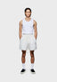 THE MODEL IS 6FT WITH A 38" CHEST AND 31" WAIST AND HAS BEEN STYLED IN A MEDIUM. WE RECOMMEND PURCHASING YOUR REGULAR SIZE, FOR THE DESIRED FIT. THE MODEL IS ALSO WEARING MKI VEST IN WHITE.