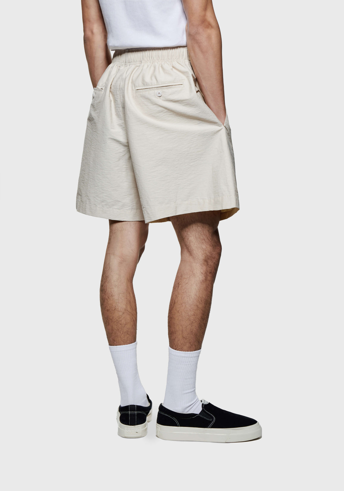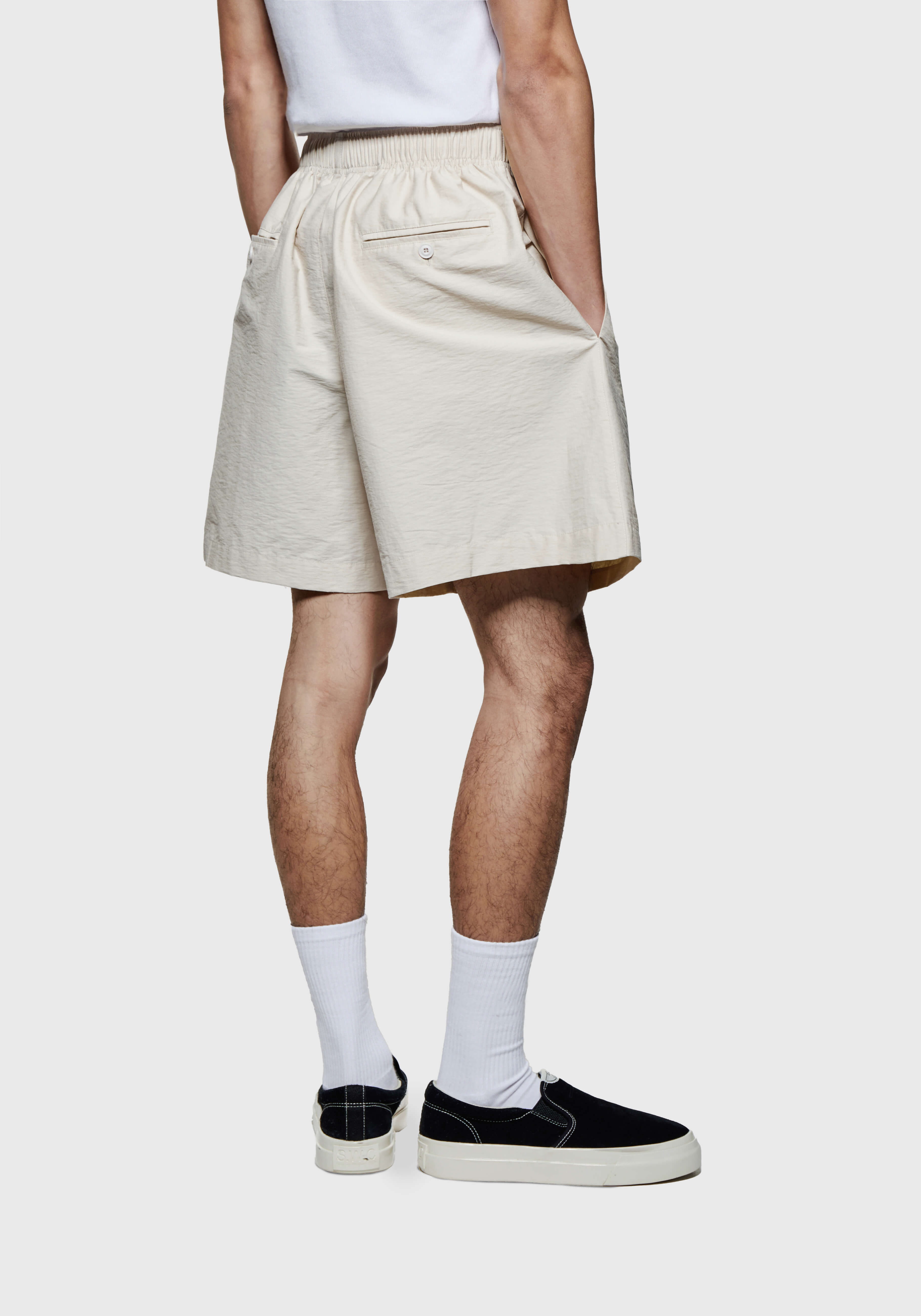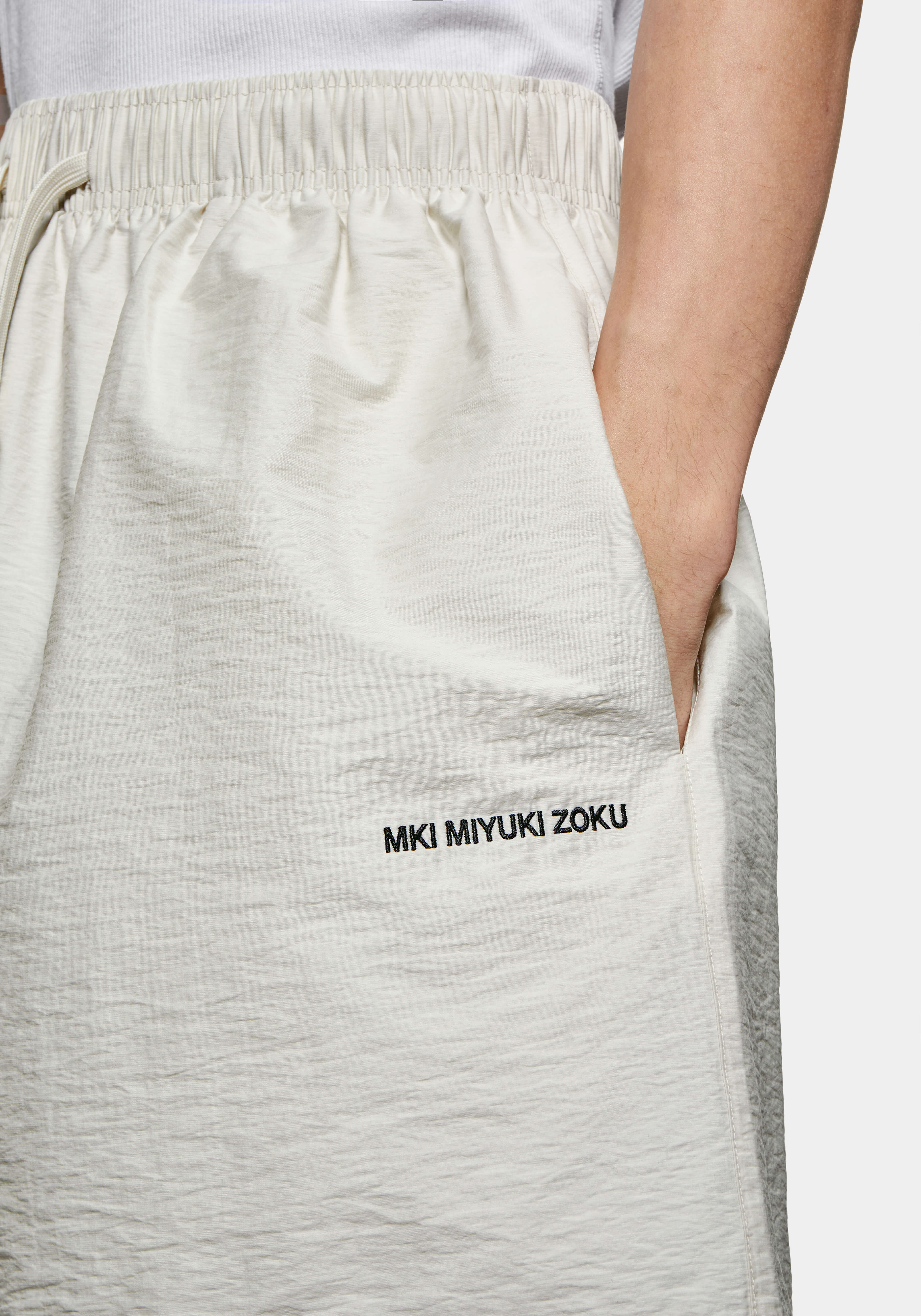 MKI WASHED COTTON NYLON SHORTS IN BONE. THE SS25 WASHED COTTON NYLON COLLECTION COMBINES A TEXTURED BLEND OF COTTON AND NYLON, WASHED TO CREATE A SOFT, LIGHTWEIGHT FEEL FOR EASY COMFORT AND STYLE.