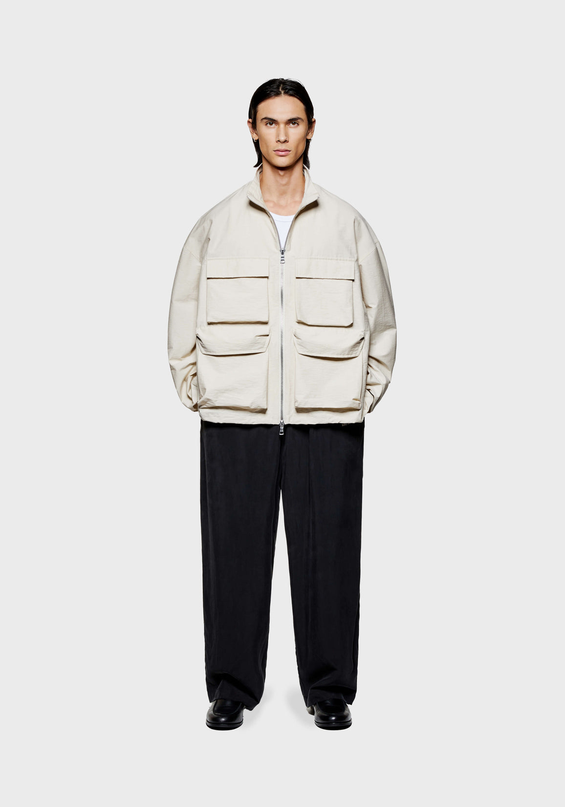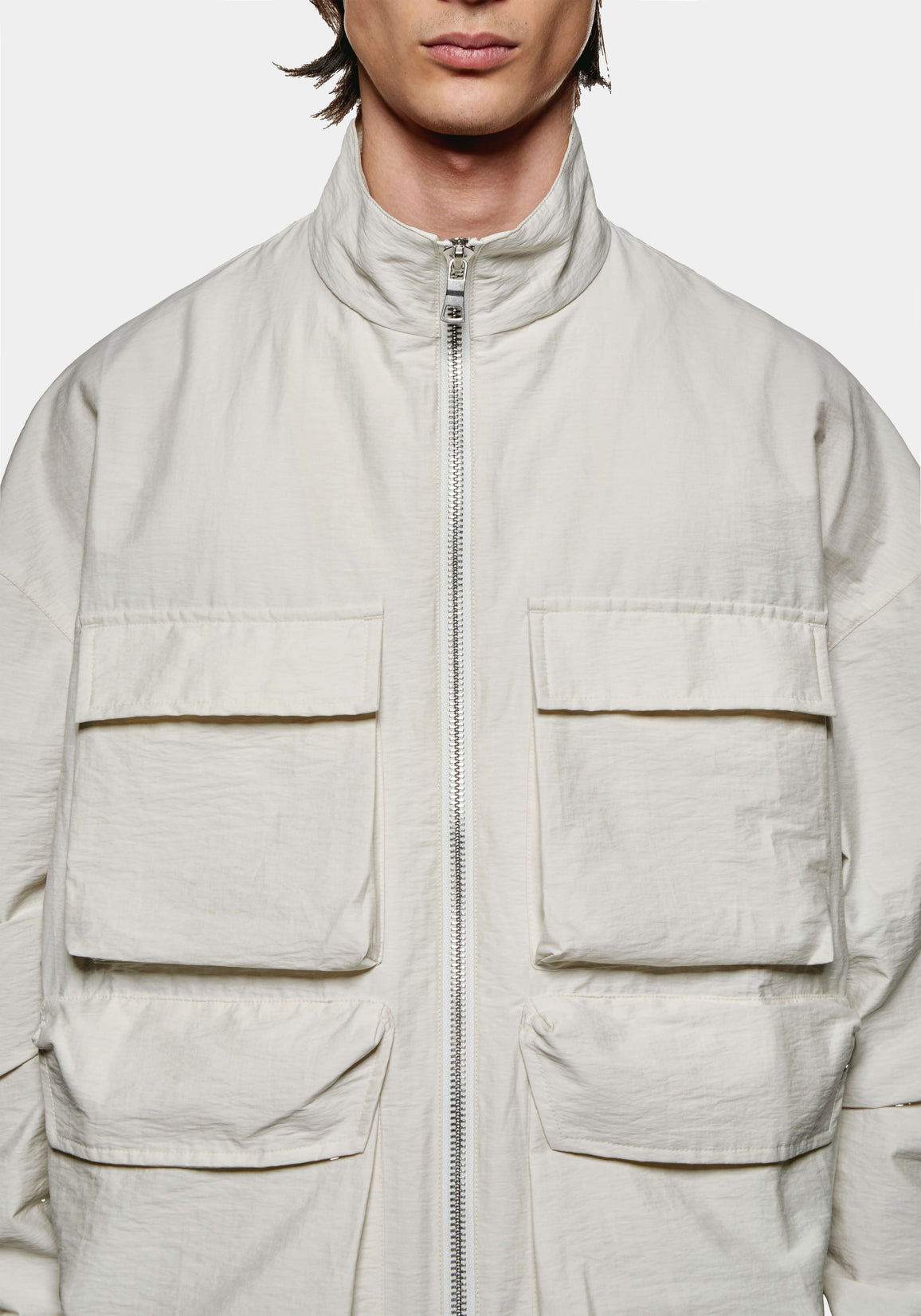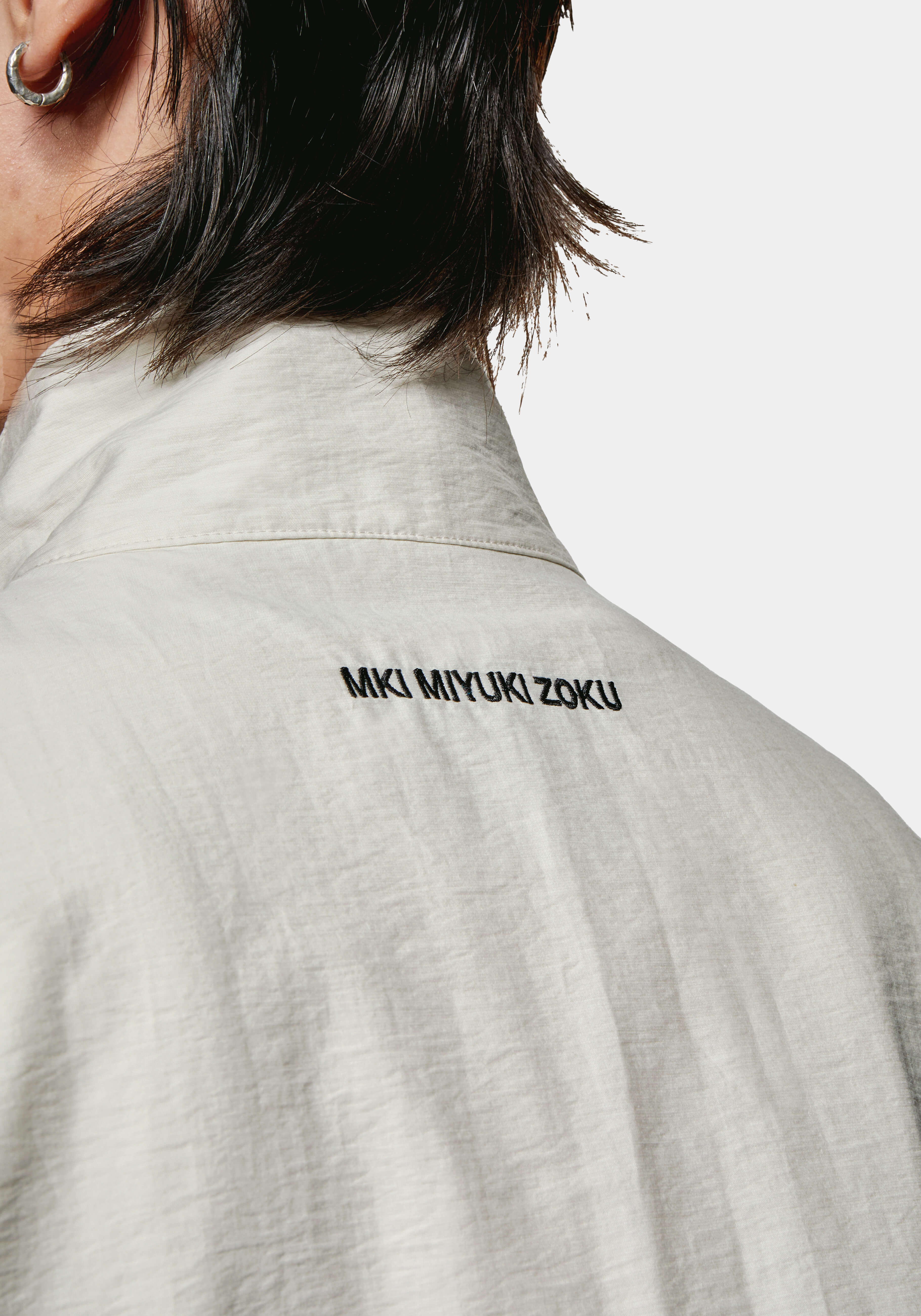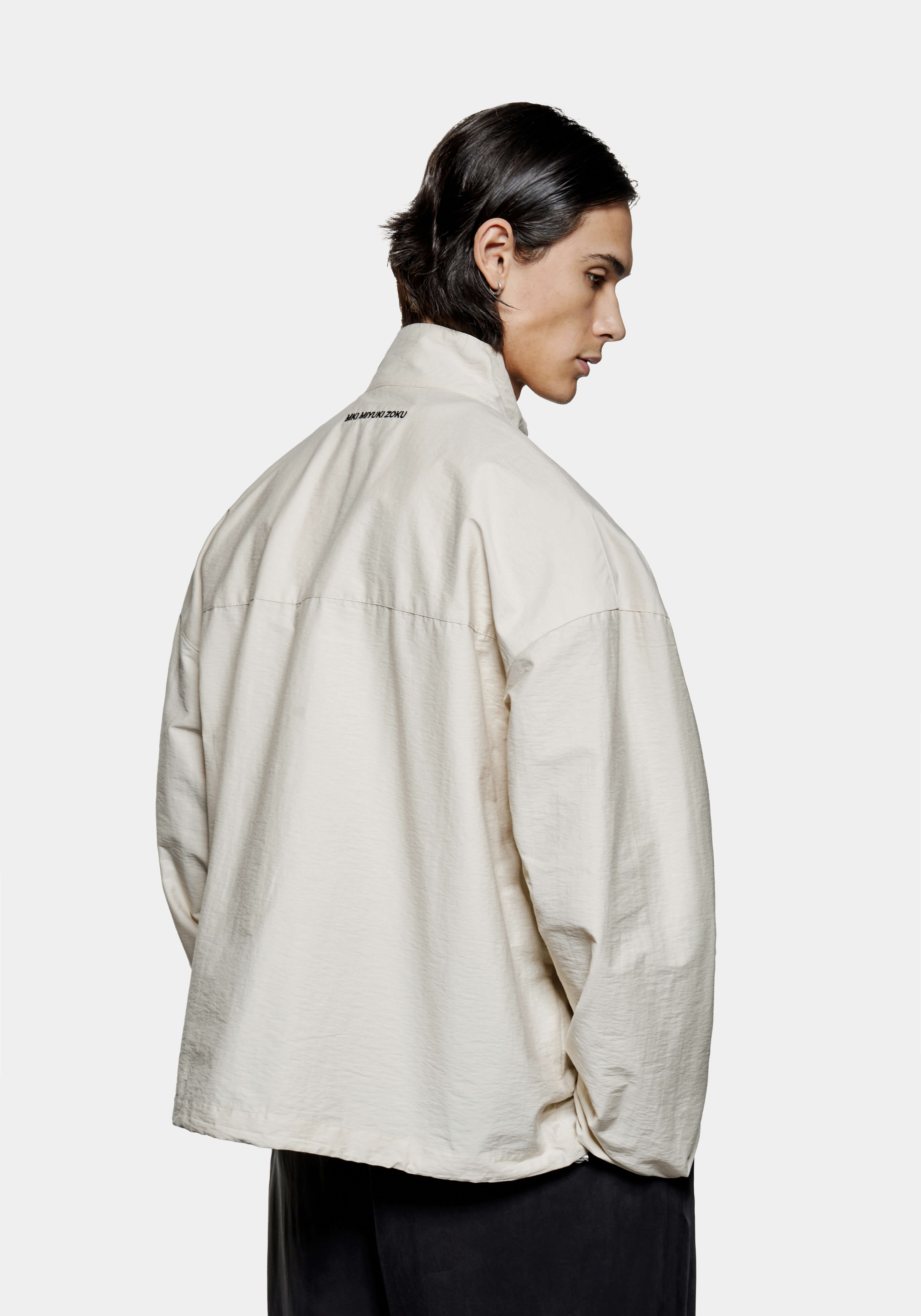 MKI WASHED COTTON NYLON TRACK JACKET IN BONE. THE SS25 WASHED COTTON NYLON COLLECTION COMBINES A TEXTURED COTTON AND NYLON BLEND, WASHED FOR A SOFT, LIGHTWEIGHT FEEL. A CONTEMPORARY REVISION OF MILITARY INSPIRED STYLES, OFFERING BOTH COMFORT AND MODERN DESIGN.