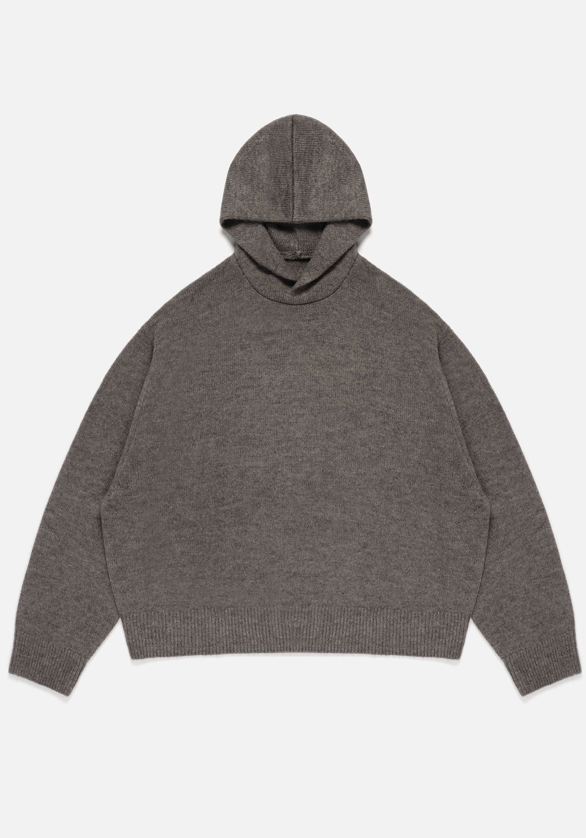 MKI MOHAIR BLEND KNIT HOODY IN BROWN MARL: CRAFTED FROM A RICH HEAVY MOHAIR BLEND, THIS HOODY OFFERS A RELAXED, OVERSIZED FIT THAT MAKES IT A TIMELESS AND VERSATILE ADDITION TO ANY WARDROBE.