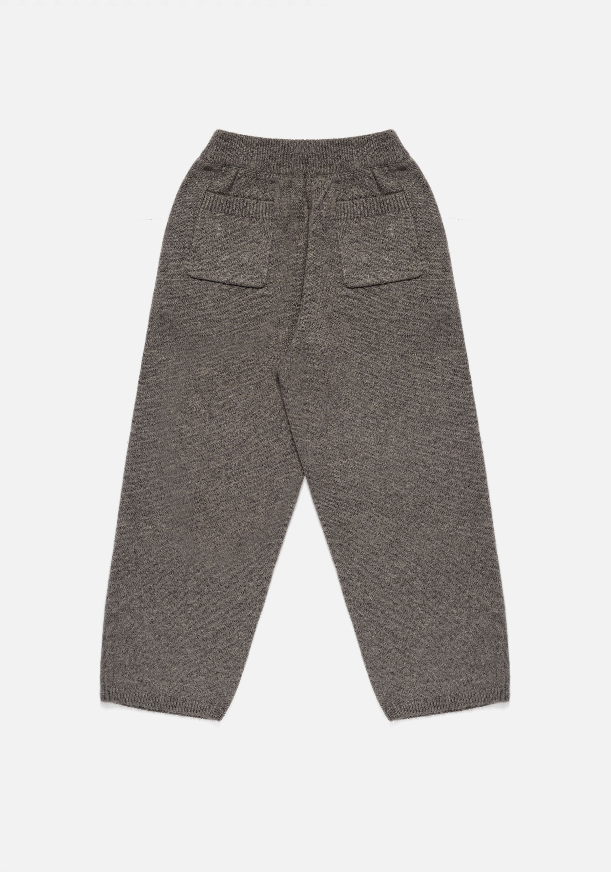 MKI MOHAIR BLEND KNIT WIDE LEG JOGGERS IN BROWN MARL: THESE JOGGERS PRESENT A MODERN WIDE-LEG DESIGN WITH A MORE SUBSTANTIAL DRAPE, CONSTRUCTED FROM A HEAVY MOHAIR BLEND FABRIC.
