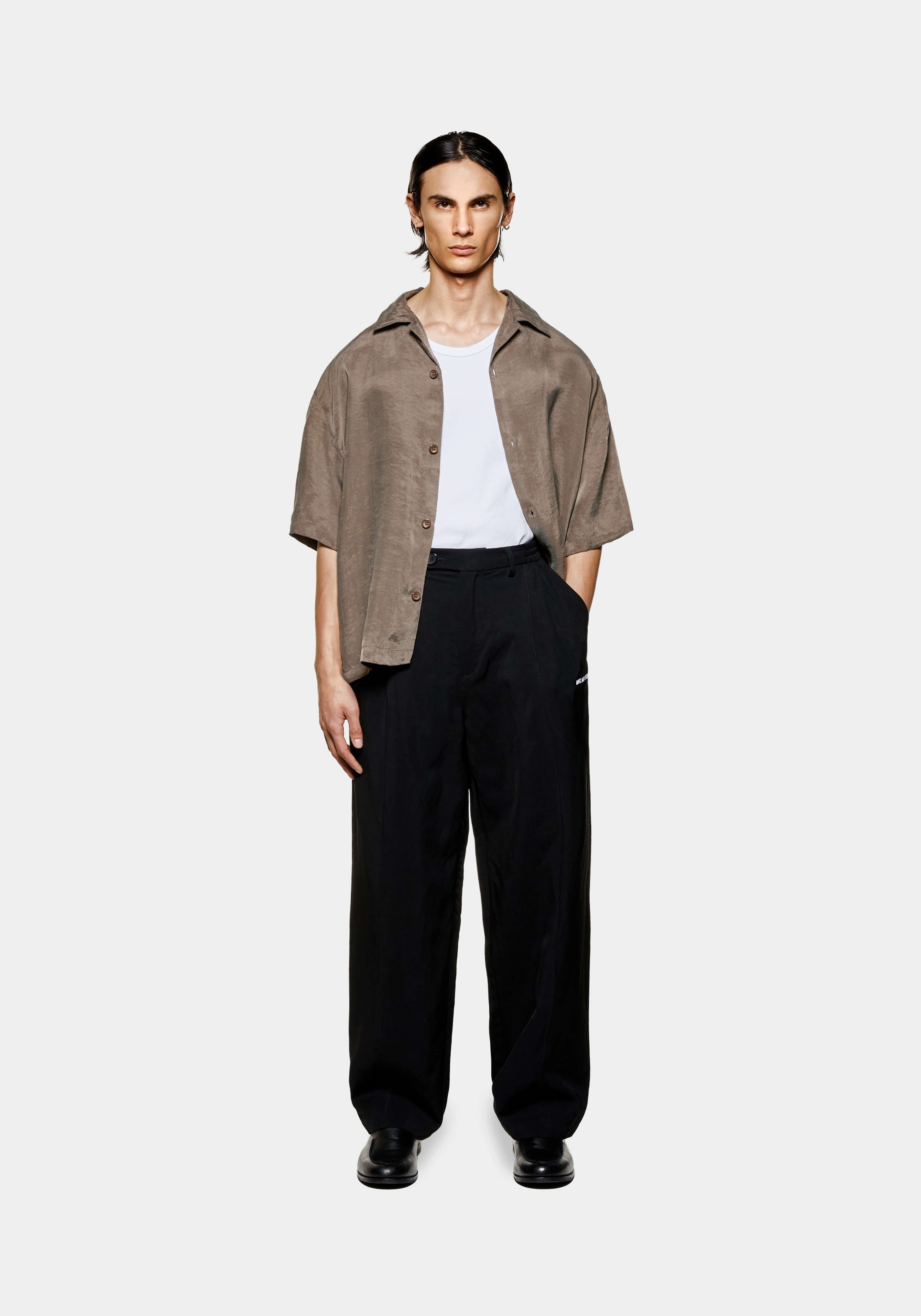 THE MODEL IS 6FT WITH A 38" CHEST AND 31" WAIST AND HAS BEEN STYLED IN A MEDIUM. WE RECOMMEND PURCHASING YOUR REGULAR SIZE, FOR THE DESIRED FIT. THE MODEL IS ALSO WEARING MKI VISCOSE LINEN WIDE FIT SUIT PANTS.