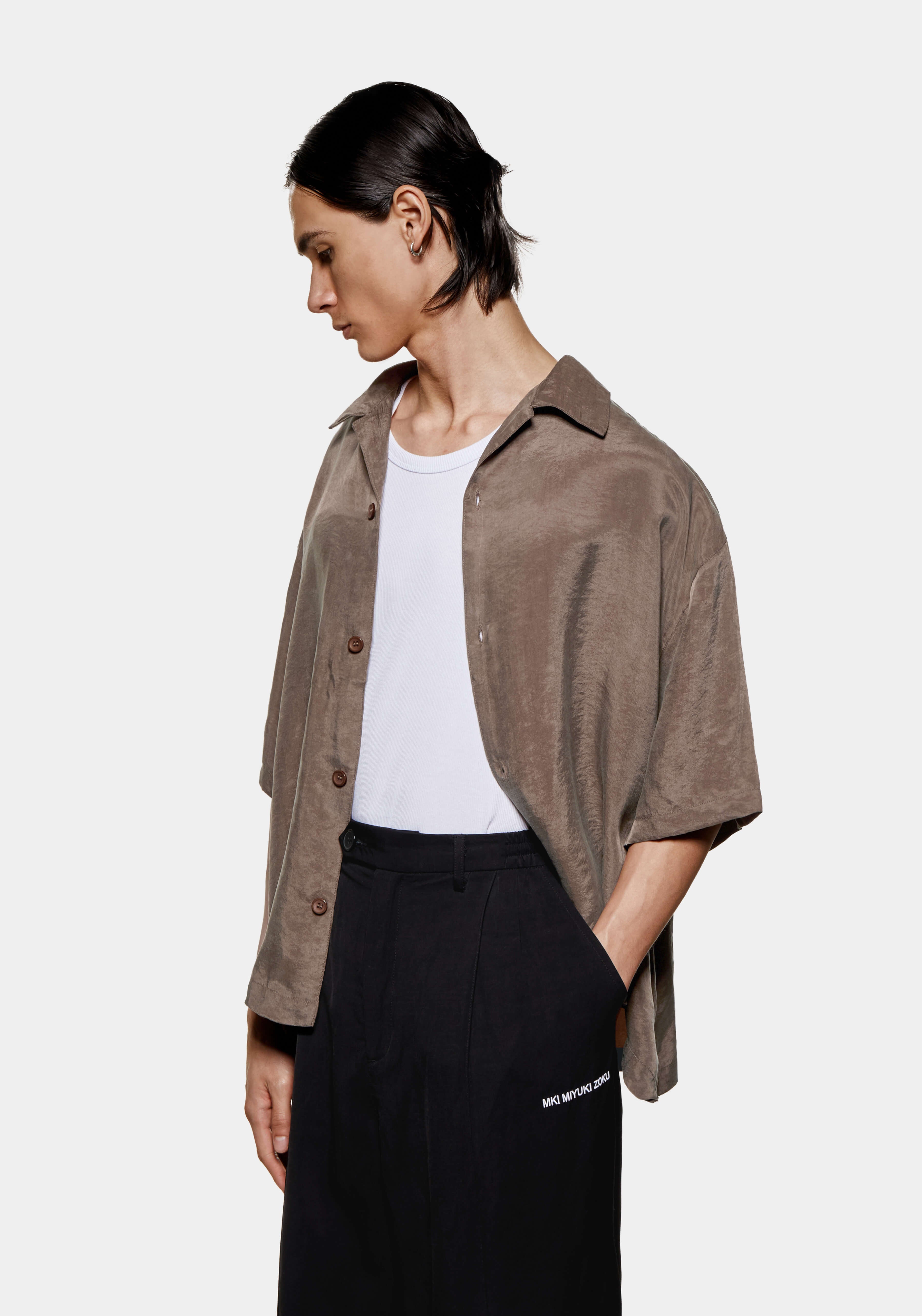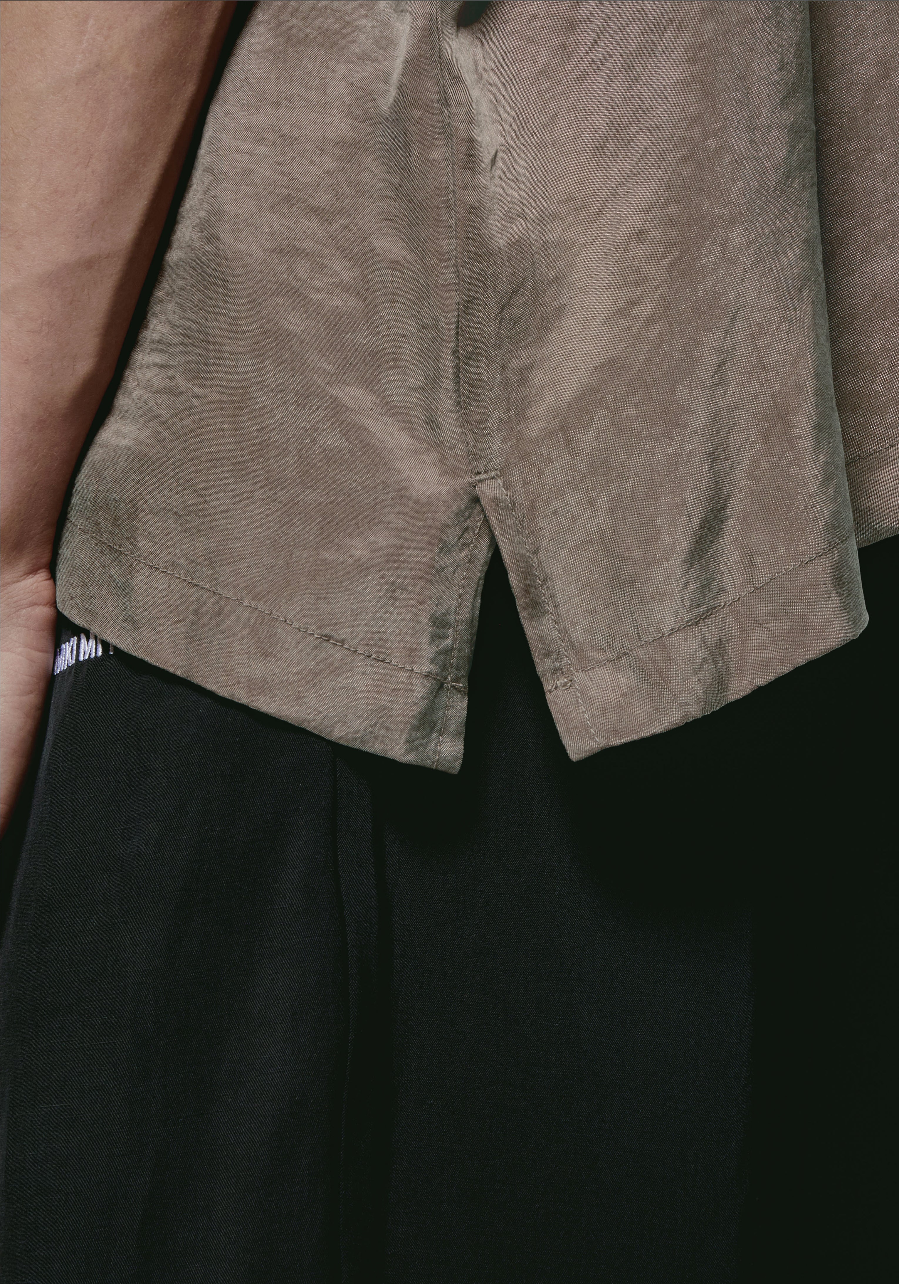 MKI SANDWASH CUPRO VACATION SHIRT IN BROWN. THE SS25 SANDWASH CUPRO COLLECTION FEATURES A LIGHTWEIGHT FABRIC WITH A SUEDE LIKE TEXTURE THAT OFFERS AN ULTRA SOFT FEEL AND DRAPE. THIS COLLECTION COMBINES MODERN STYLE WITH COMFORT, DELIVERING VERSATILE PIECES THAT ELEVATE YOUR WARDROBE WITH TEXTURE AND TIMELESS DESIGN.