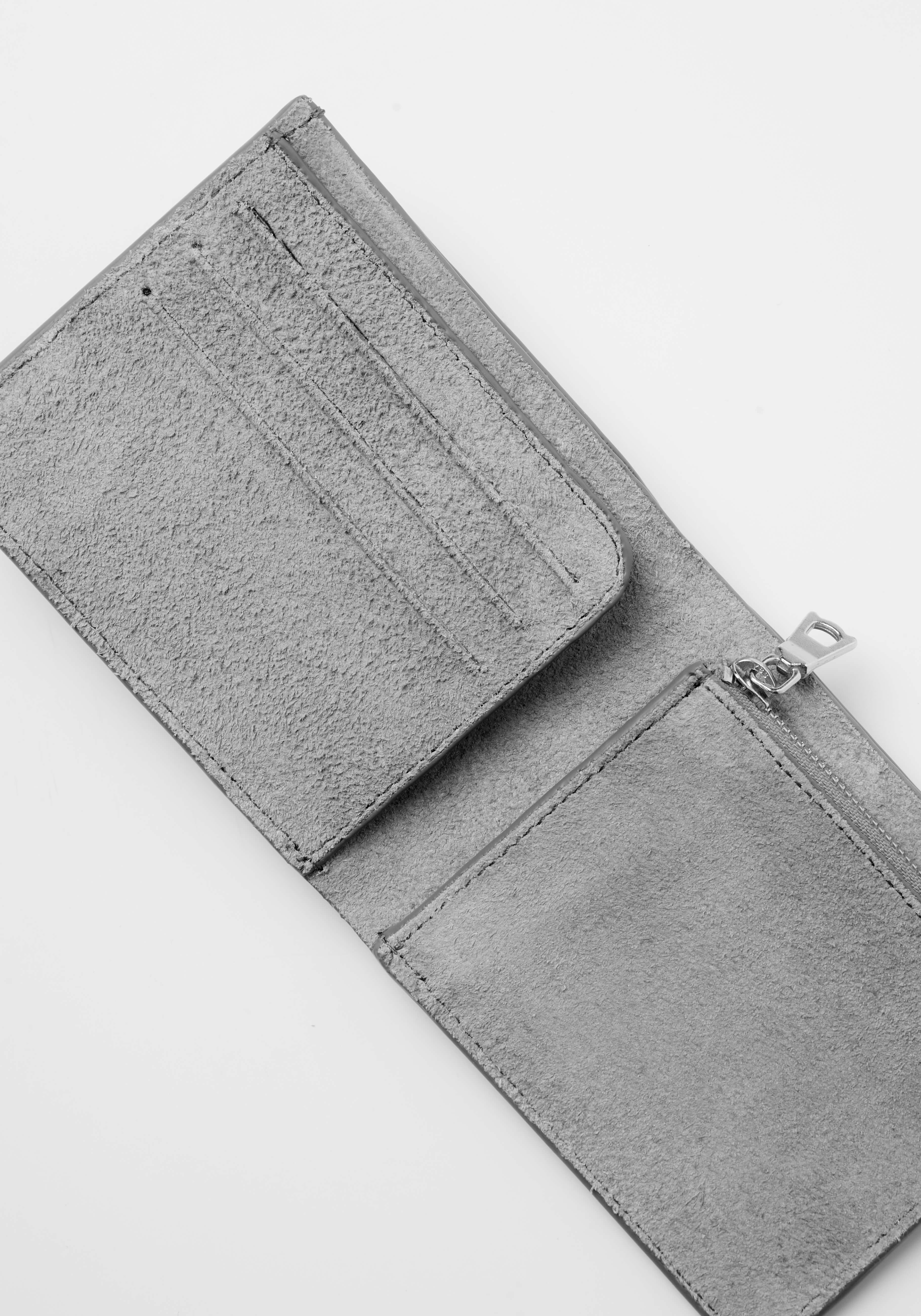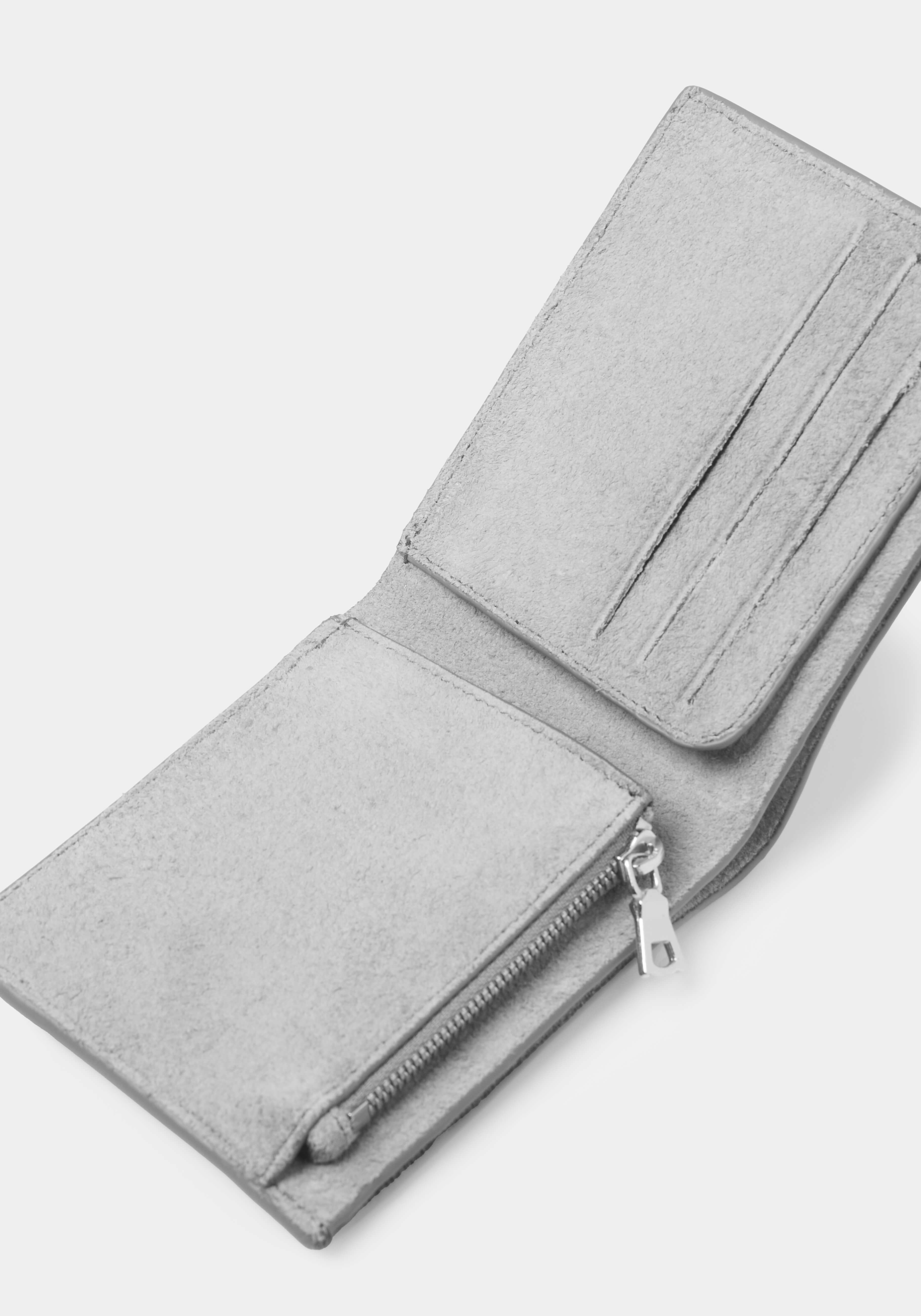 MKI HAIRY SUEDE WALLET. A NEW ADDITION TO MKI’S LIFESTYLE-FOCUSED ACCESSORIES OFFERING, PRESENTED IN HAIRY COW SUEDE FOR FW25. THE BI-FOLD WALLET FEATURES THREE CARD SLOTS AND A SILVER ZIP COIN POUCH, COMPLETE WITH A CENTRAL COMPARTMENT ALONG THE WIDTH OF THE WALLET. DEBOSSED MKI BRANDING ADDS A REFINED TOUCH TO A STAPLE MKI ACCESSORY.
