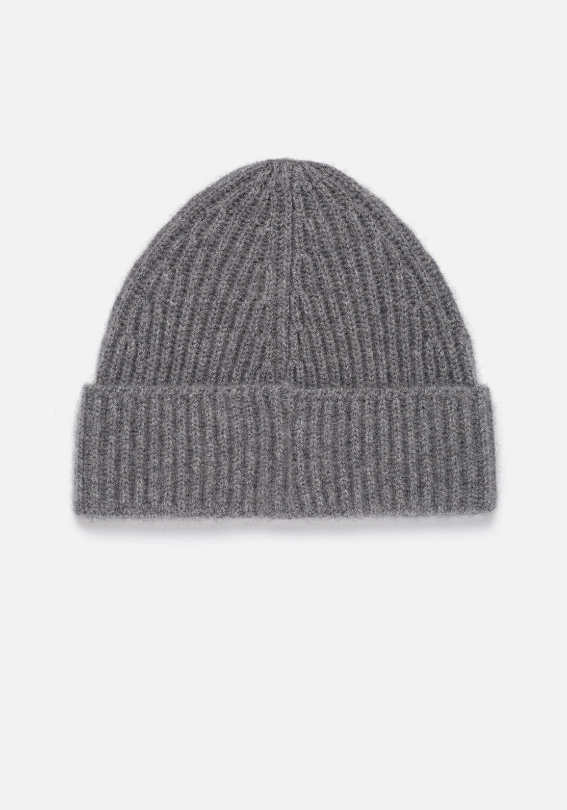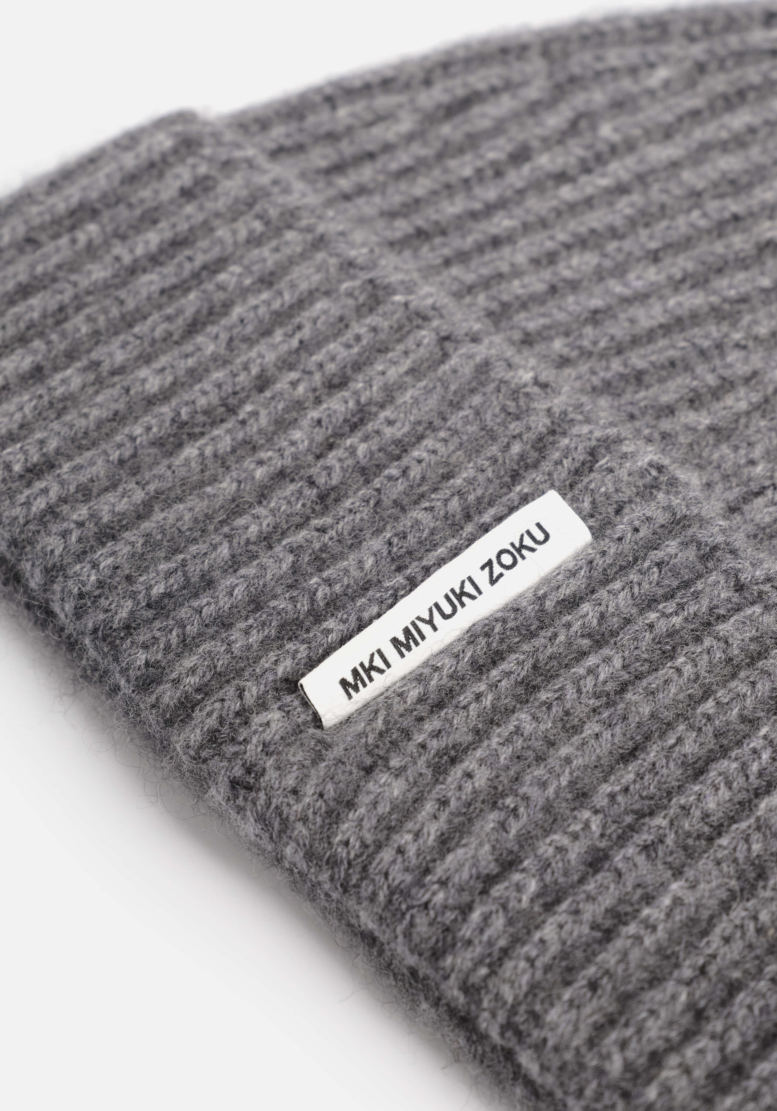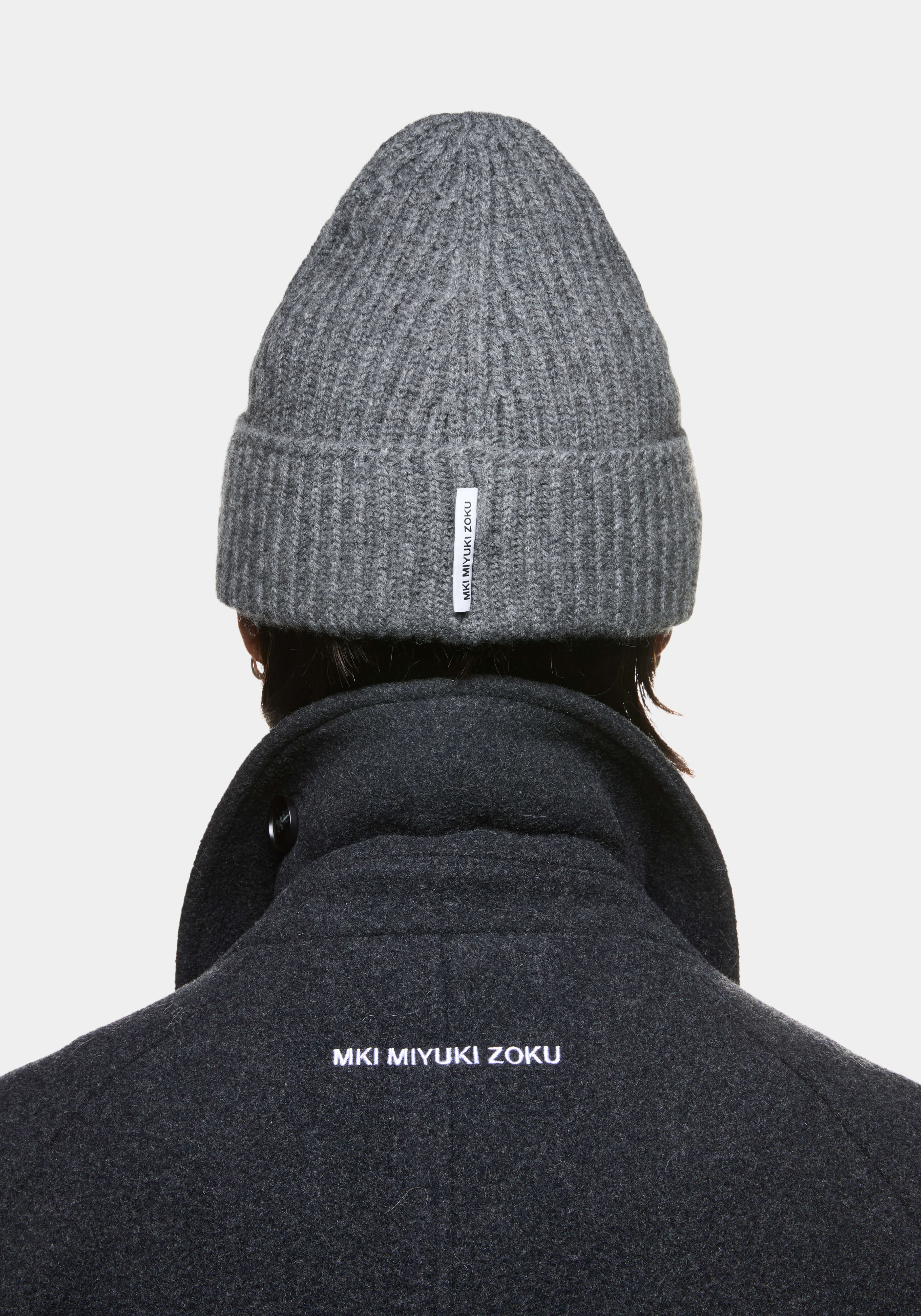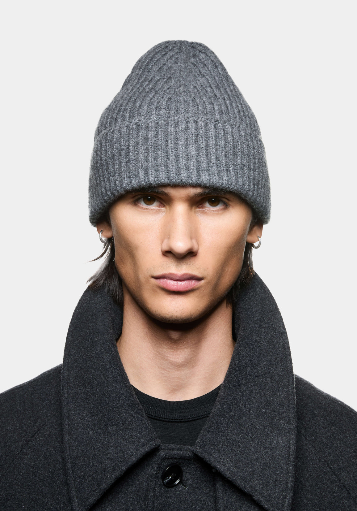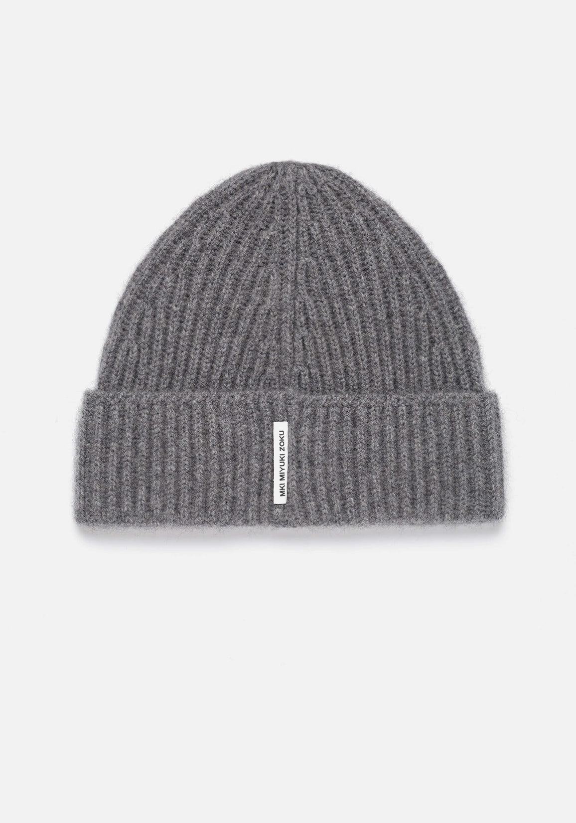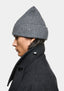 MKI CASHMERE RIBBED BEANIE IN CHARCOAL.