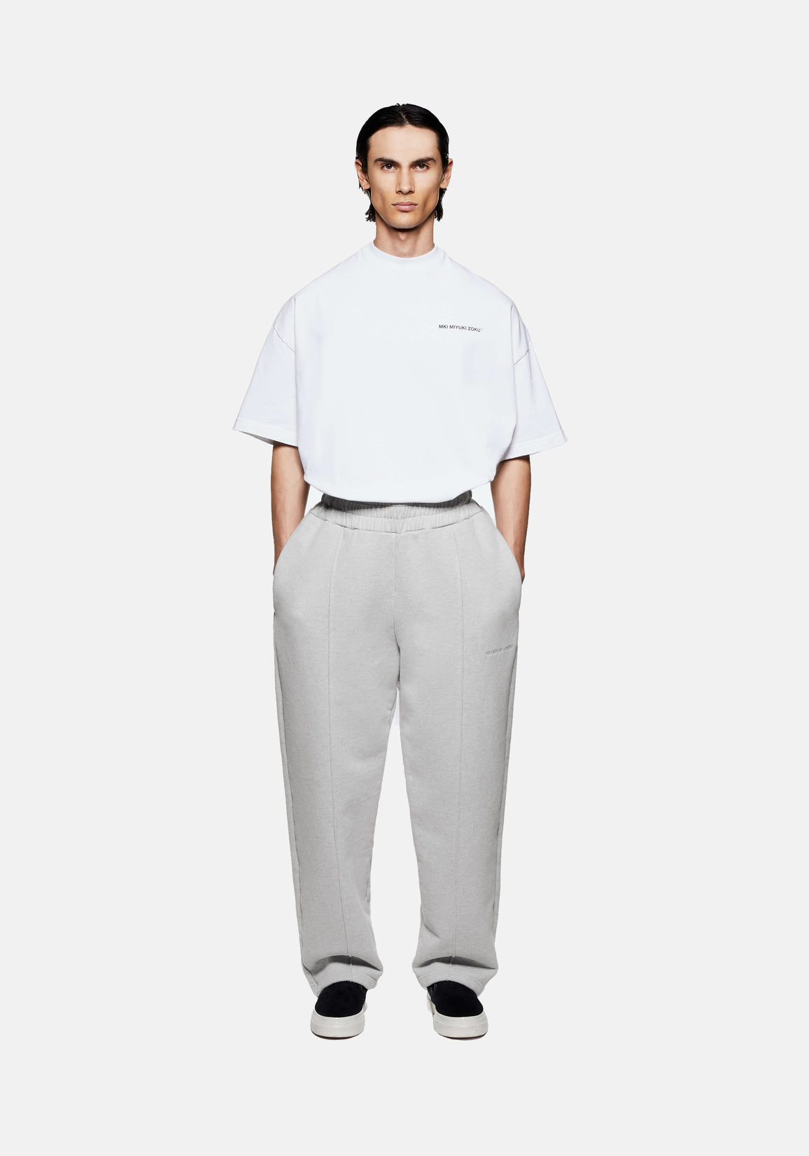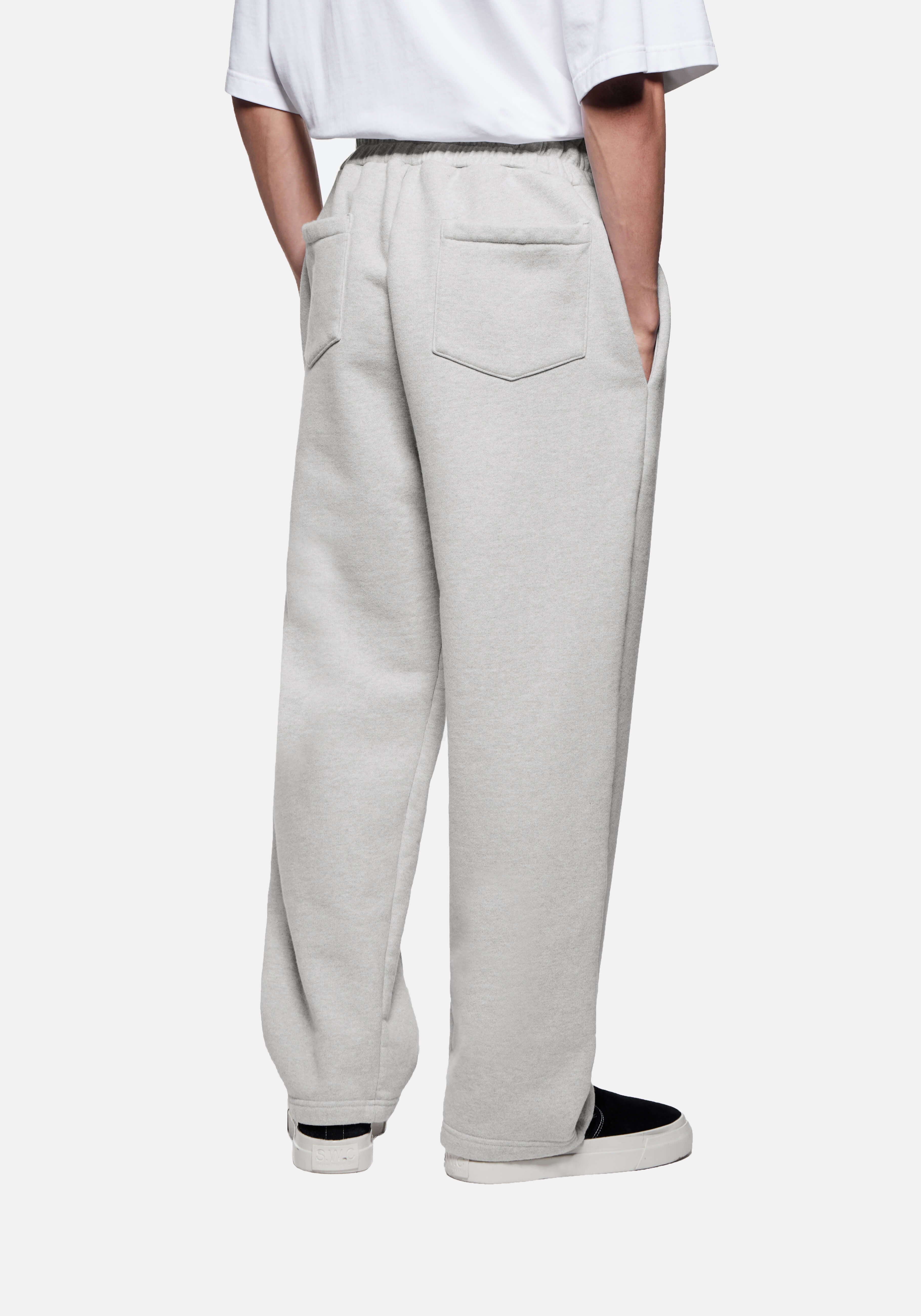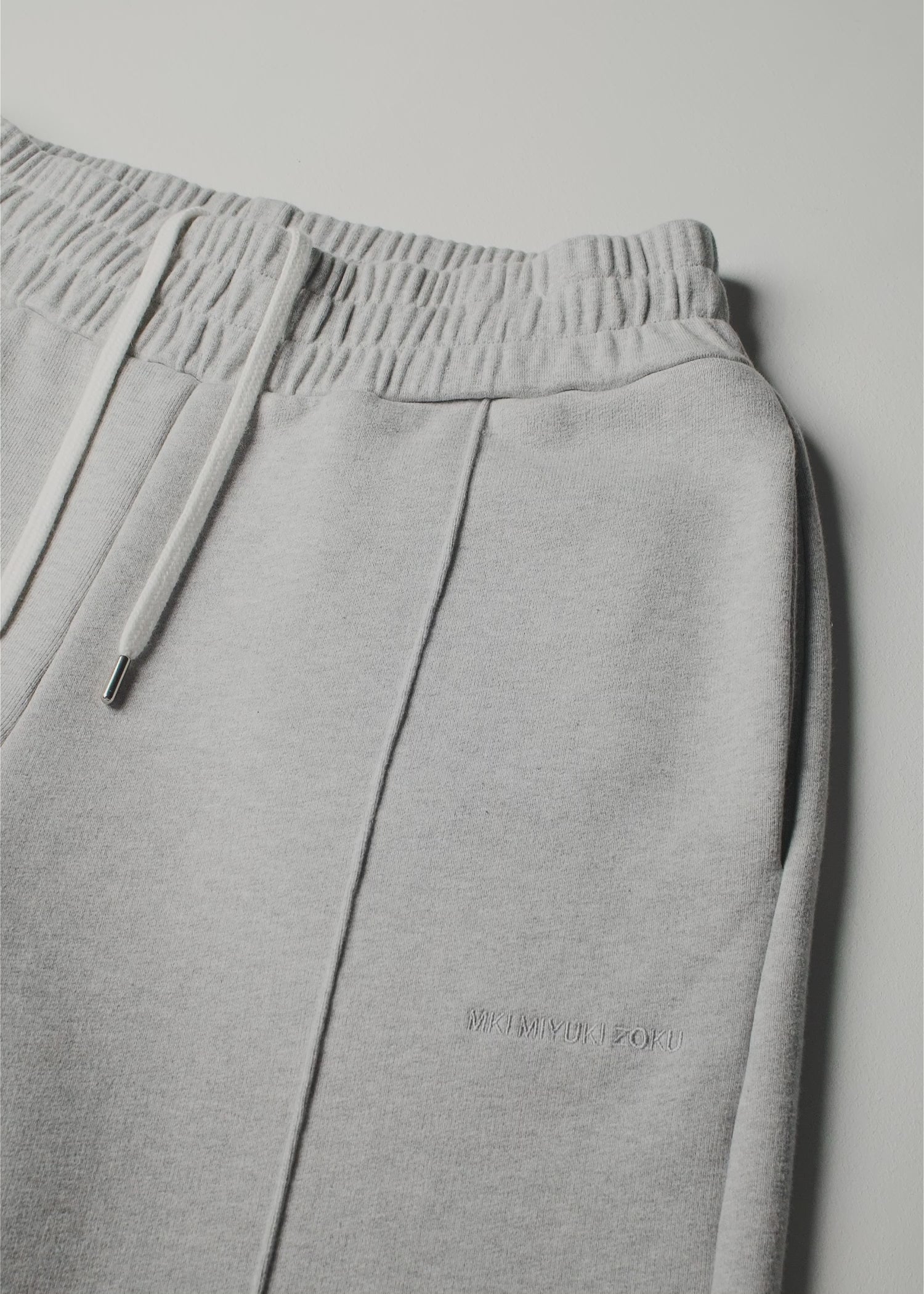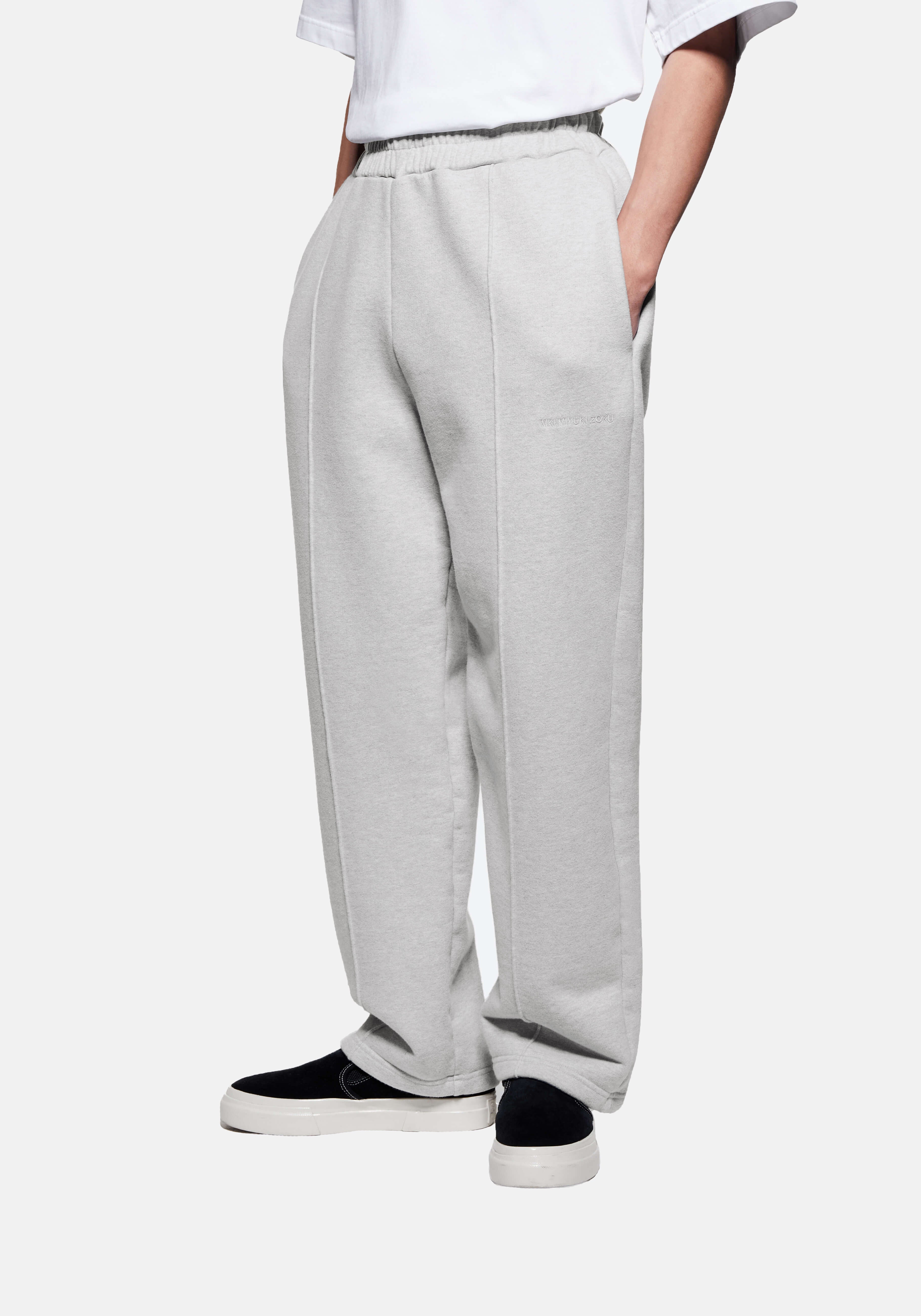 MKI 800 GSM SUPERWEIGHT WIDE LEG JOGGERS IN GREY. THE MKI 800GSM SUPERWEIGHT JOGGERS ARE PRESENTED IN A WIDE LEG FIT WITH OPEN HEMS TO ACHIEVE A LOOSE-FITTING DRAPE AND STRUCTURE. CRAFTED FROM GREY COTTON JERSEY, THE SUPER HEAVYWEIGHT STYLE FEATURES SEWN-IN FRONT PLEATS AND TONAL LOGO EMBROIDERY, COMPLETE WITH FOUR TOTAL POCKETS AND AN ELASTICATED WAISTBAND WITH HIDDEN INTERNAL DRAWSTRINGS.