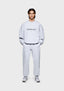 THE MODEL IS 6FT WITH A 38" CHEST AND 31" WAIST AND HAS BEEN STYLED IN A MEDIUM. WE RECOMMEND PURCHASING YOUR REGULAR SIZE, FOR THE DESIRED RELAXED FIT. THE MODEL IS ALSO WEARING MKI UNIFORM JOGGERS IN GREY.