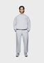 THE MODEL IS 6FT WITH A 38" CHEST AND 31" WAIST AND HAS BEEN STYLED IN A MEDIUM. WE RECOMMEND PURCHASING YOUR REGULAR SIZE, FOR THE DESIRED OVERSIZED FIT. THE MODEL IS ALSO WEARING MKI UNIFORM JOGGERS IN GREY.