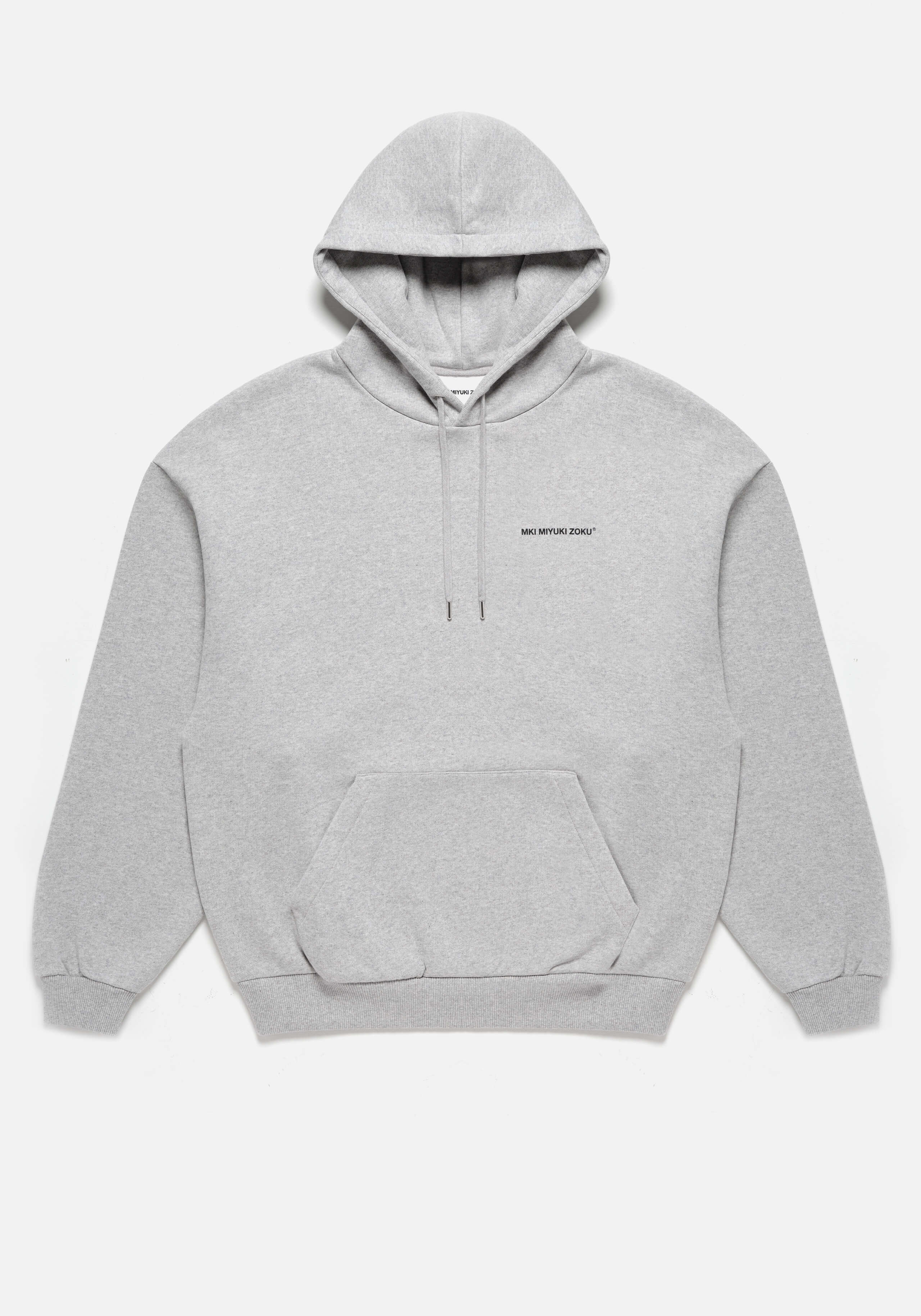 MKI UNIFORM HOODY IN GREY. THE MKI UNIFORM HOODY IS A STAPLE OF THE LONGSTANDING UNIFORM COLLECTION, RENOWNED FOR ITS OVERSIZED BOX FIT AND HEAVYWEIGHT COTTON JERSEY CONSTRUCTION. DISPLAYING SCREEN-PRINTED UNIFORM BANDING AT THE LEFT CHEST, THE 500GSM HOODY INCLUDES A DOUBLE-LAYER HOOD WITH TONAL, METAL-TIPPED DRAWSTRINGS, WHILE A SINGLE POUCH POCKET FEATURES AT THE FRONT.
