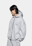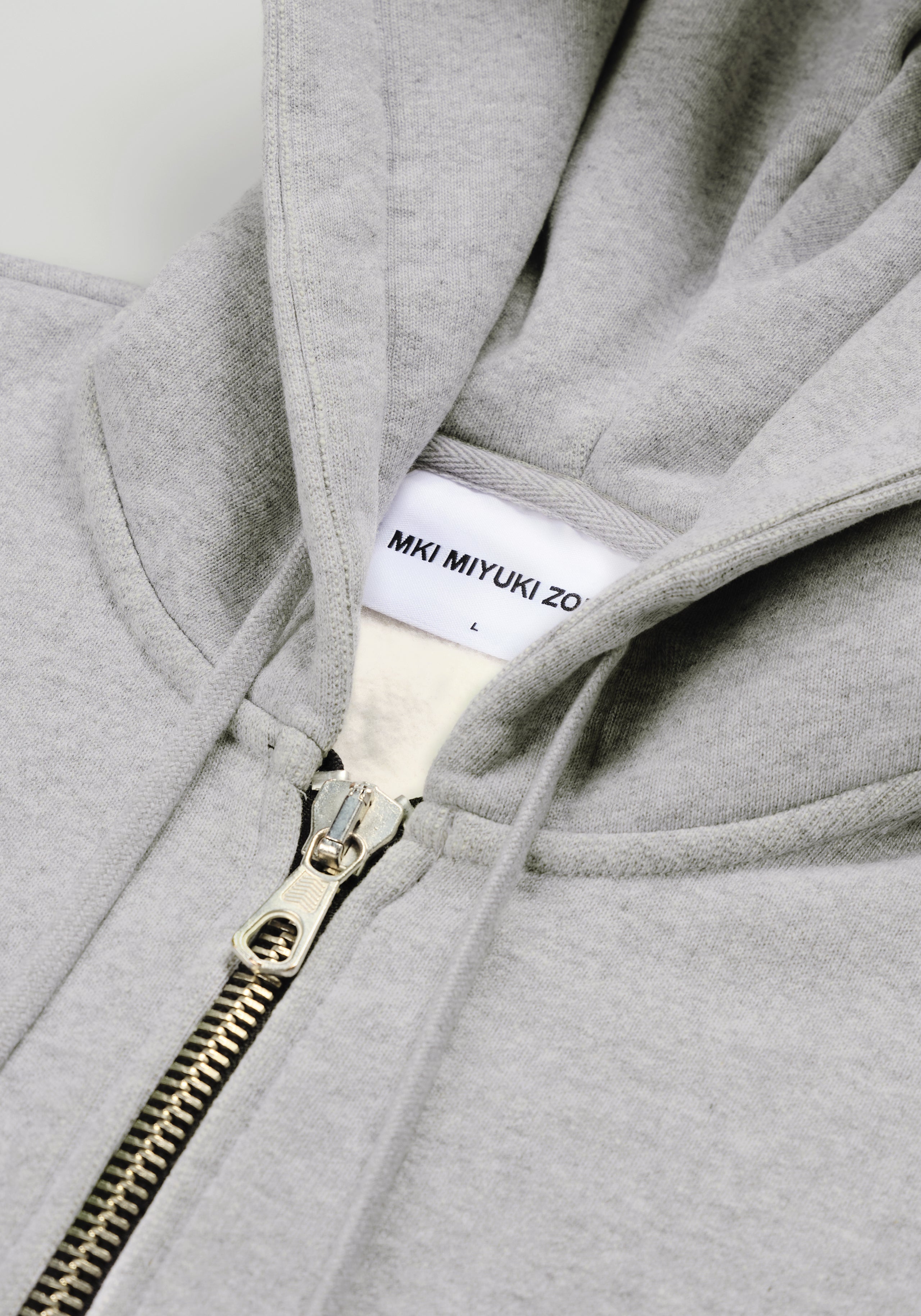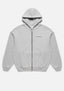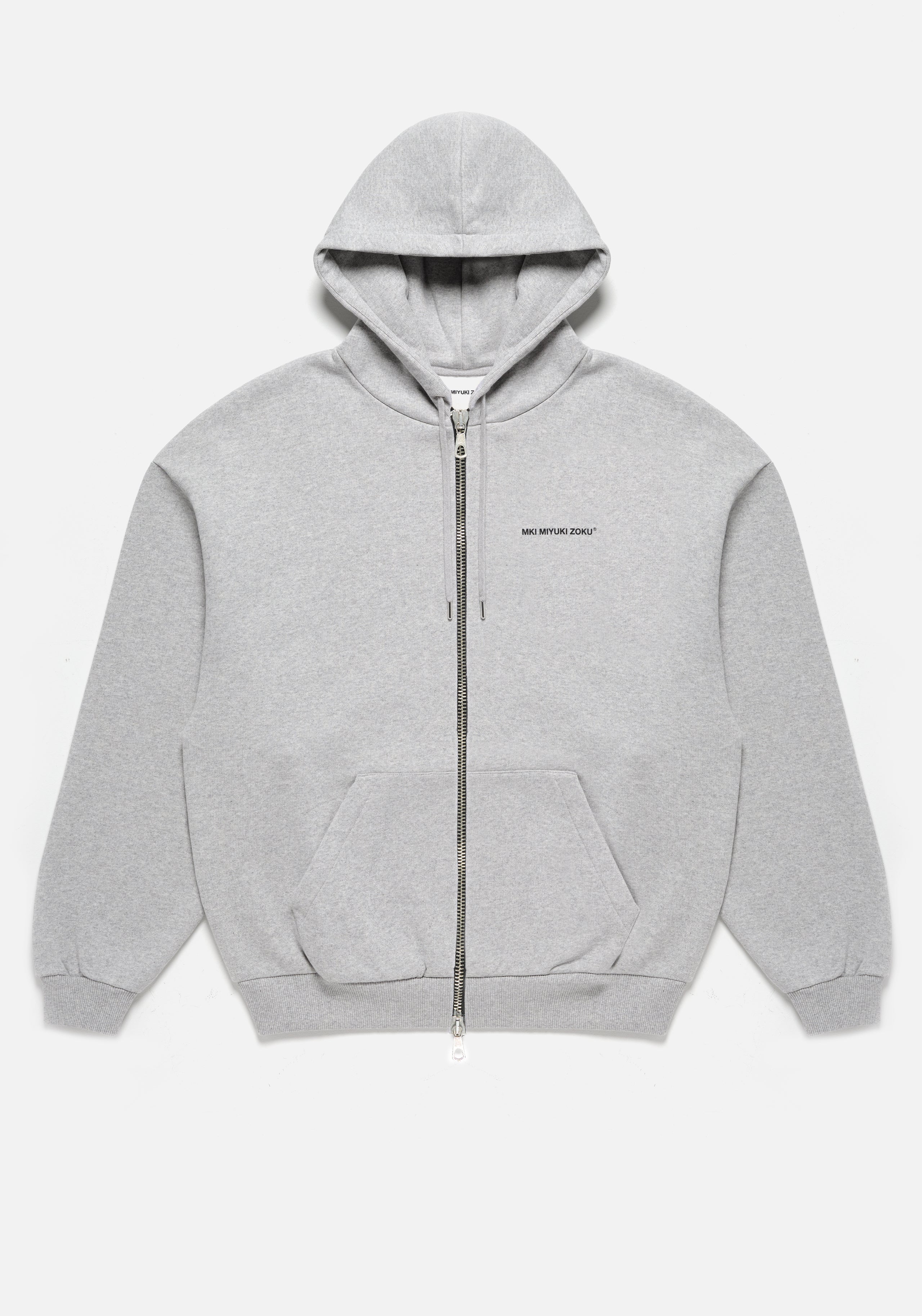 MKI UNIFORM ZIP HOODY IN GREY. CRAFTED FROM 500GSM COTTON JERSEY, THE HEAVYWEIGHT MKI UNIFORM ZIP HOODY IS DEVELOPED IN AN OVERSIZED BOX FIT, COMPLETE WITH DOUBLE TWO-WAY ZIPS, TWIN FRONT POCKETS AND A DOUBLE LAYER HOOD WITH TONAL DRAWSTRINGS. THE GREY COLOURWAY IS ESSENTIAL FOR DAILY WEAR, WHILE SUBTLE UNIFORM BRANDING IS PRINTED AT THE LEFT CHEST.