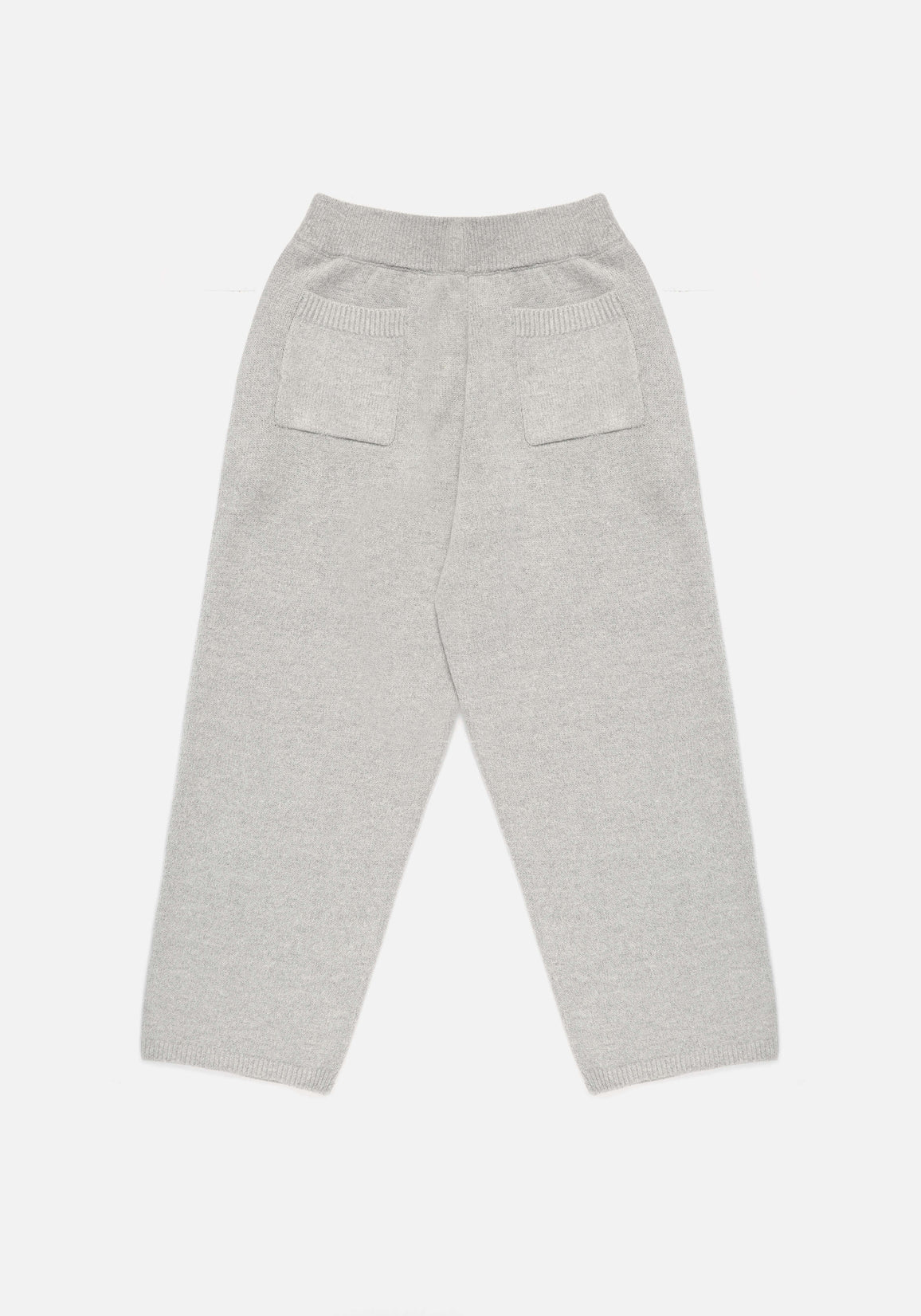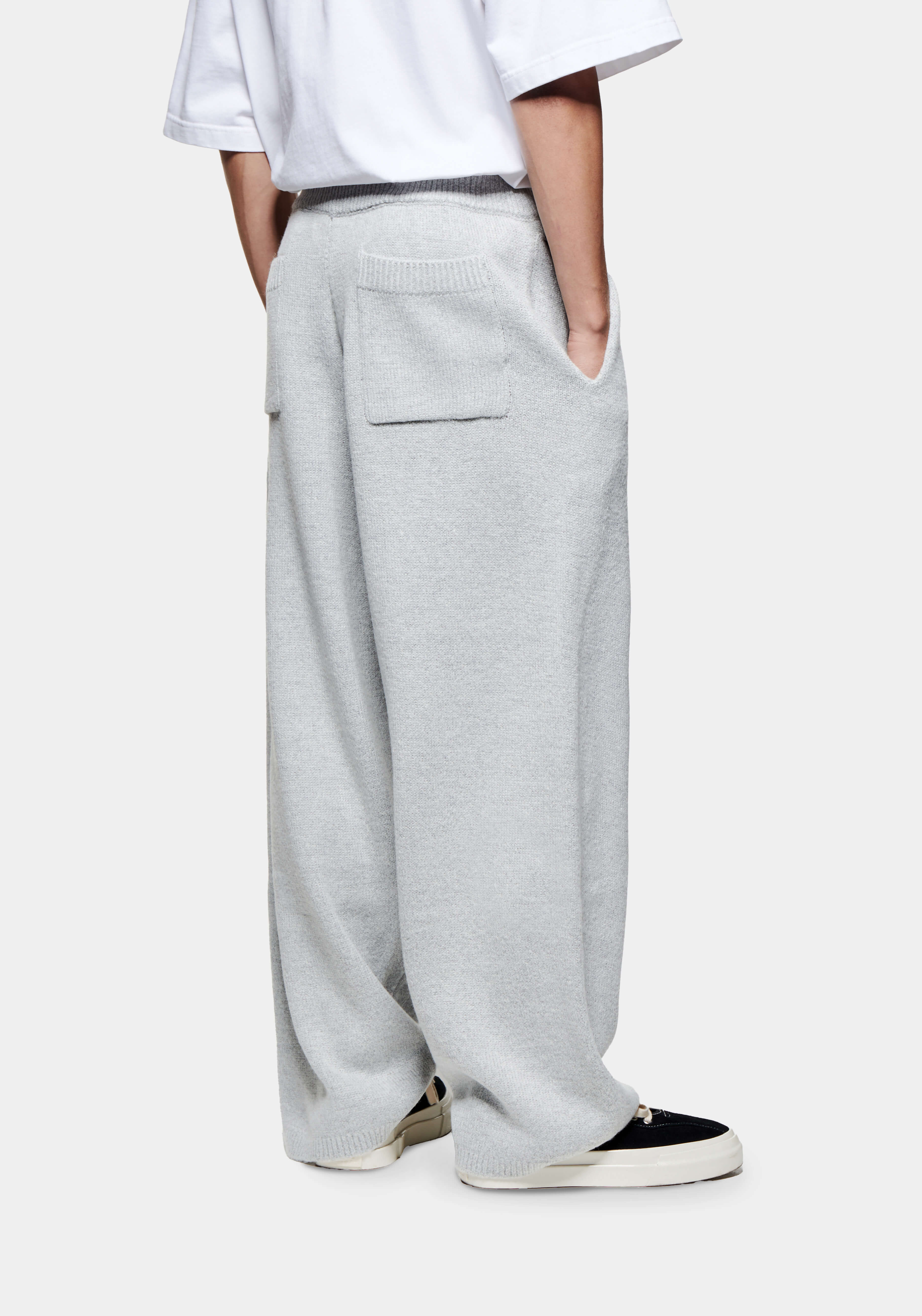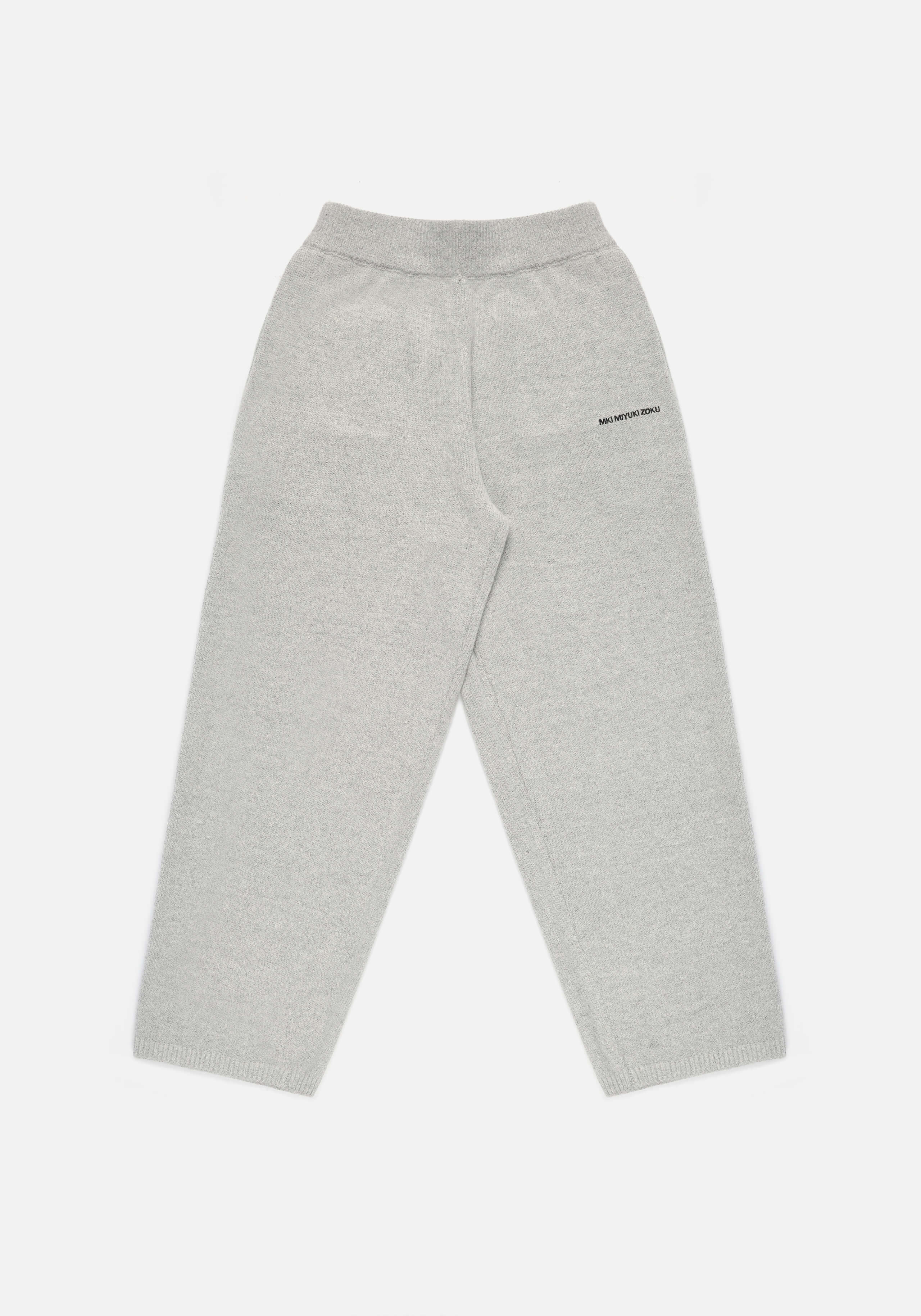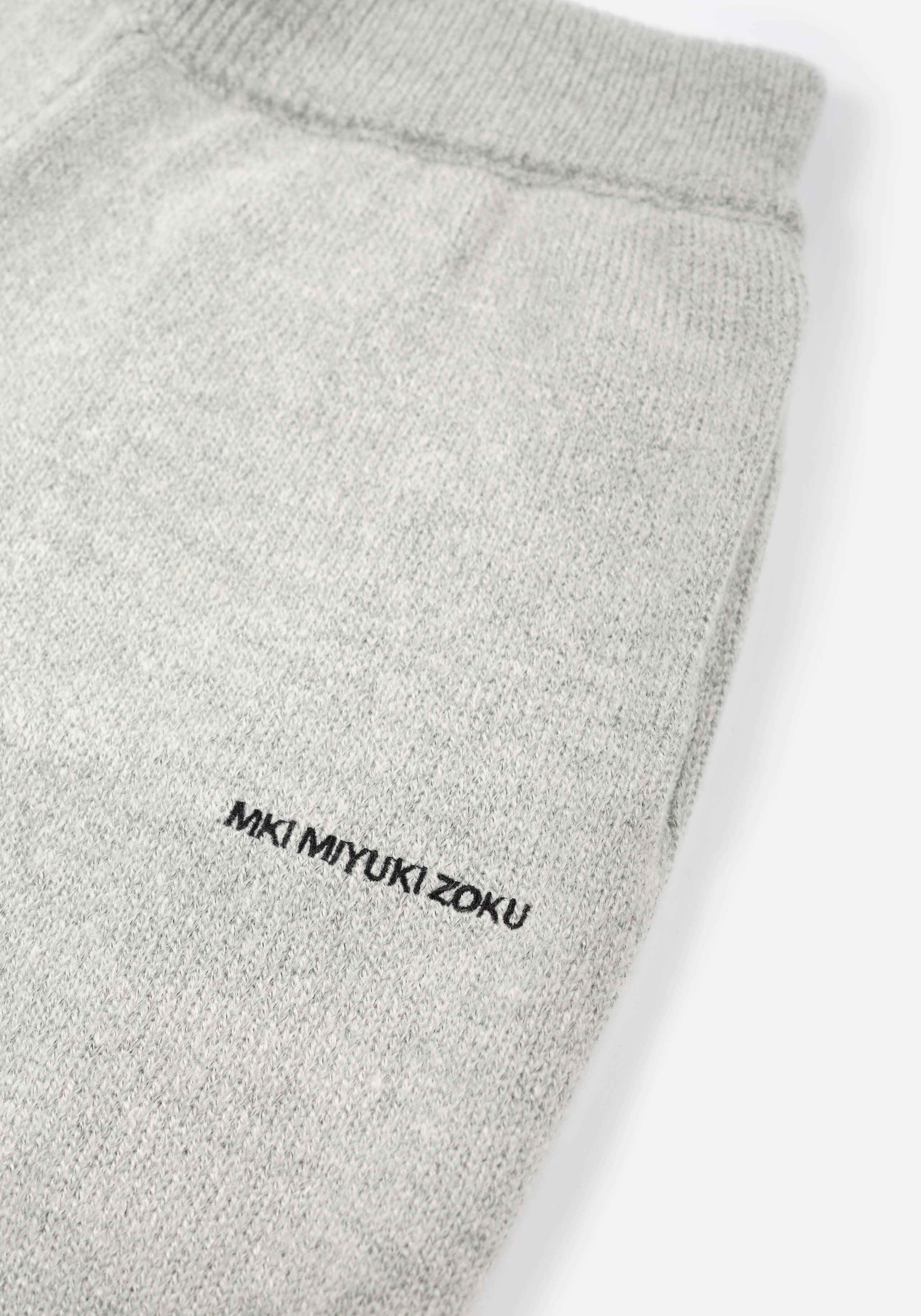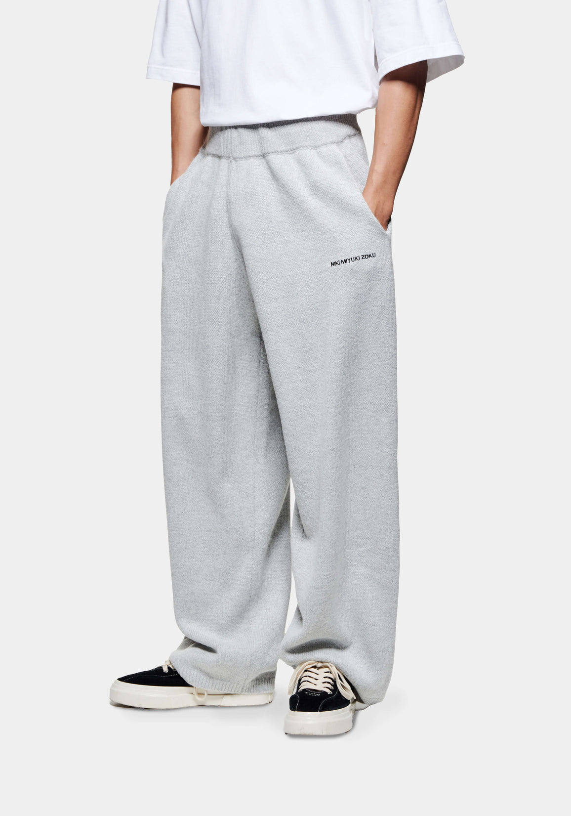 MKI MOHAIR BLEND KNIT WIDE LEG JOGGERS IN LIGHT GREY: THESE JOGGERS FEATURE AN UPDATED WIDE-LEG STYLE WITH A HEAVIER DRAPE, CRAFTED FROM HEAVY MOHAIR BLEND FABRIC.