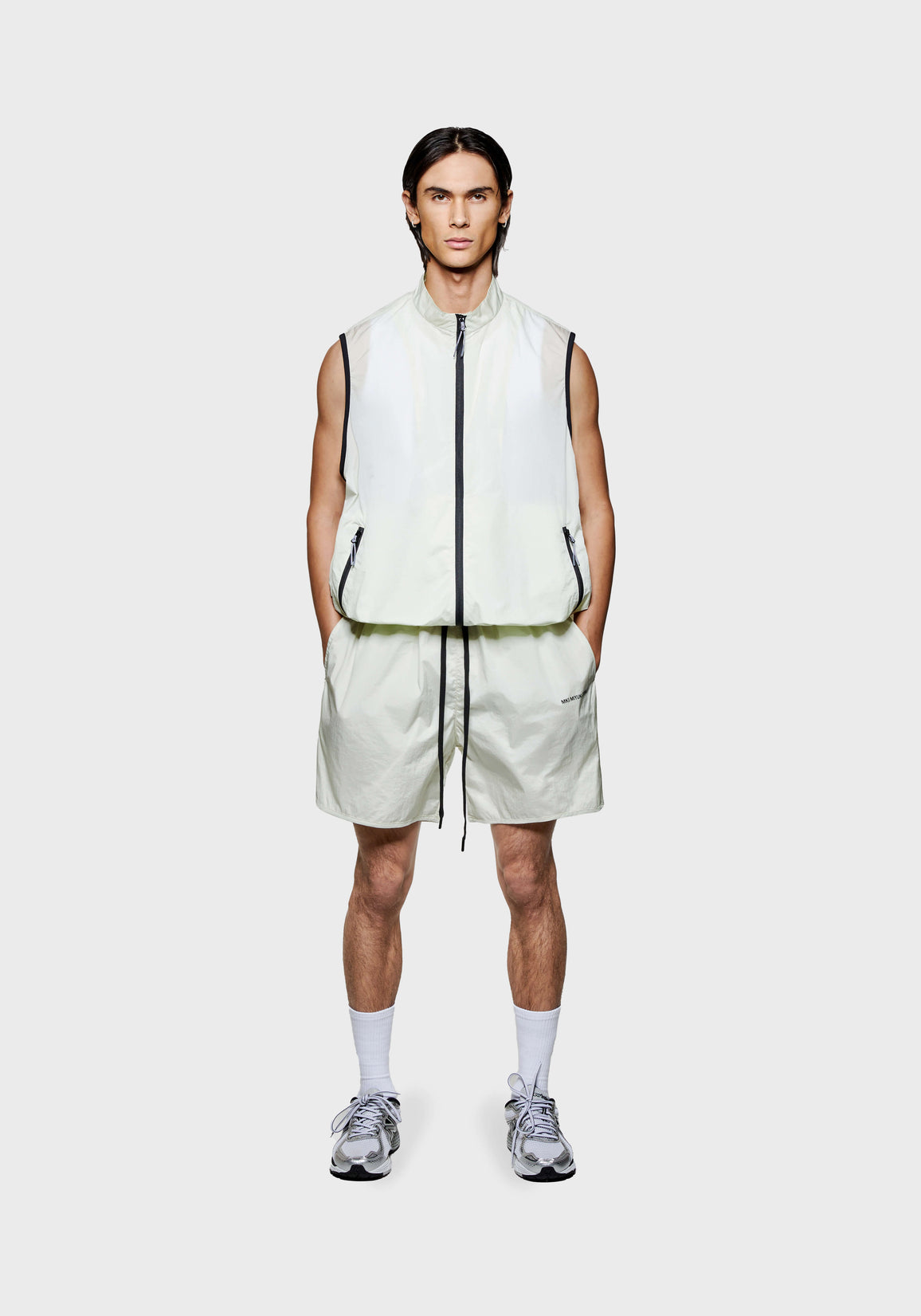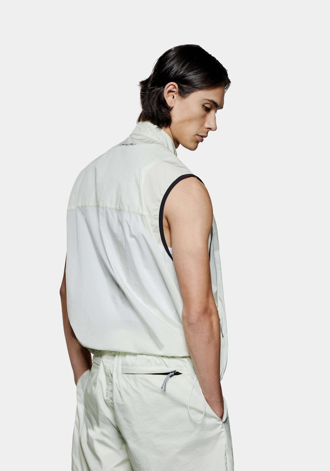 MKI ULTRALIGHT NYLON VEST IN MINT. THE VEST IN THE ULTRALIGHT NYLON COLLECTION FEATURES AN UNLINED FINISH THAT HIGHLIGHTS THE INTRICATE WEAVING OF THE FABRIC, SHOWCASING THE TECHNICAL CRAFTSMANSHIP. THE TRANSLUCENT EFFECT ADDS A MODERN TOUCH, ALLOWING THE PRECISION OF THE DESIGN.