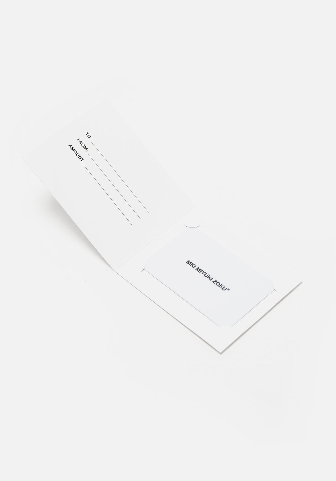 GIFT CARDS WILL BE SENT BLANK UNLESS SPECIFIED OTHERWISE. TO ADD A PERSONALISED MESSAGE, CONTACT INFO@MKISTORE.COM.