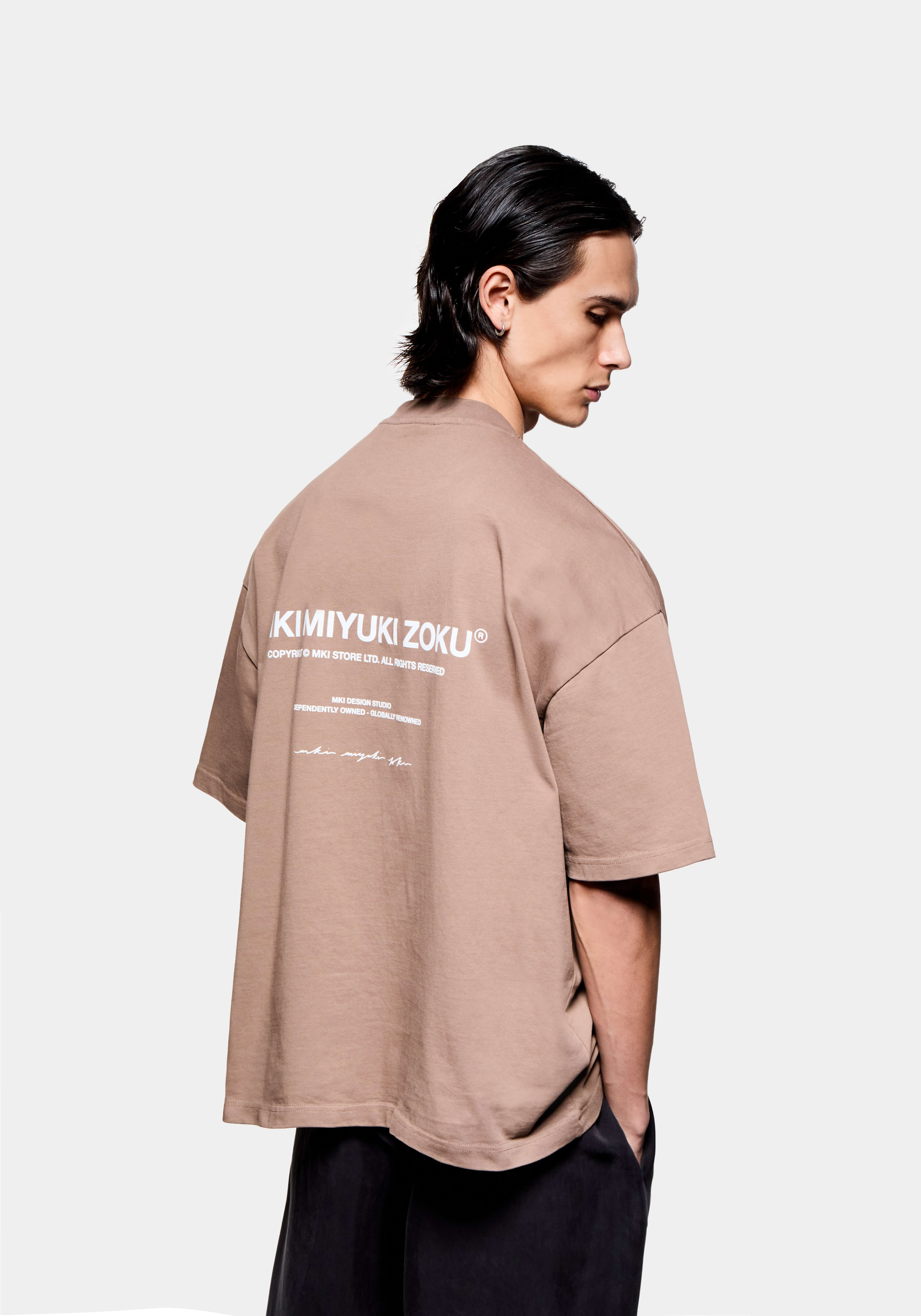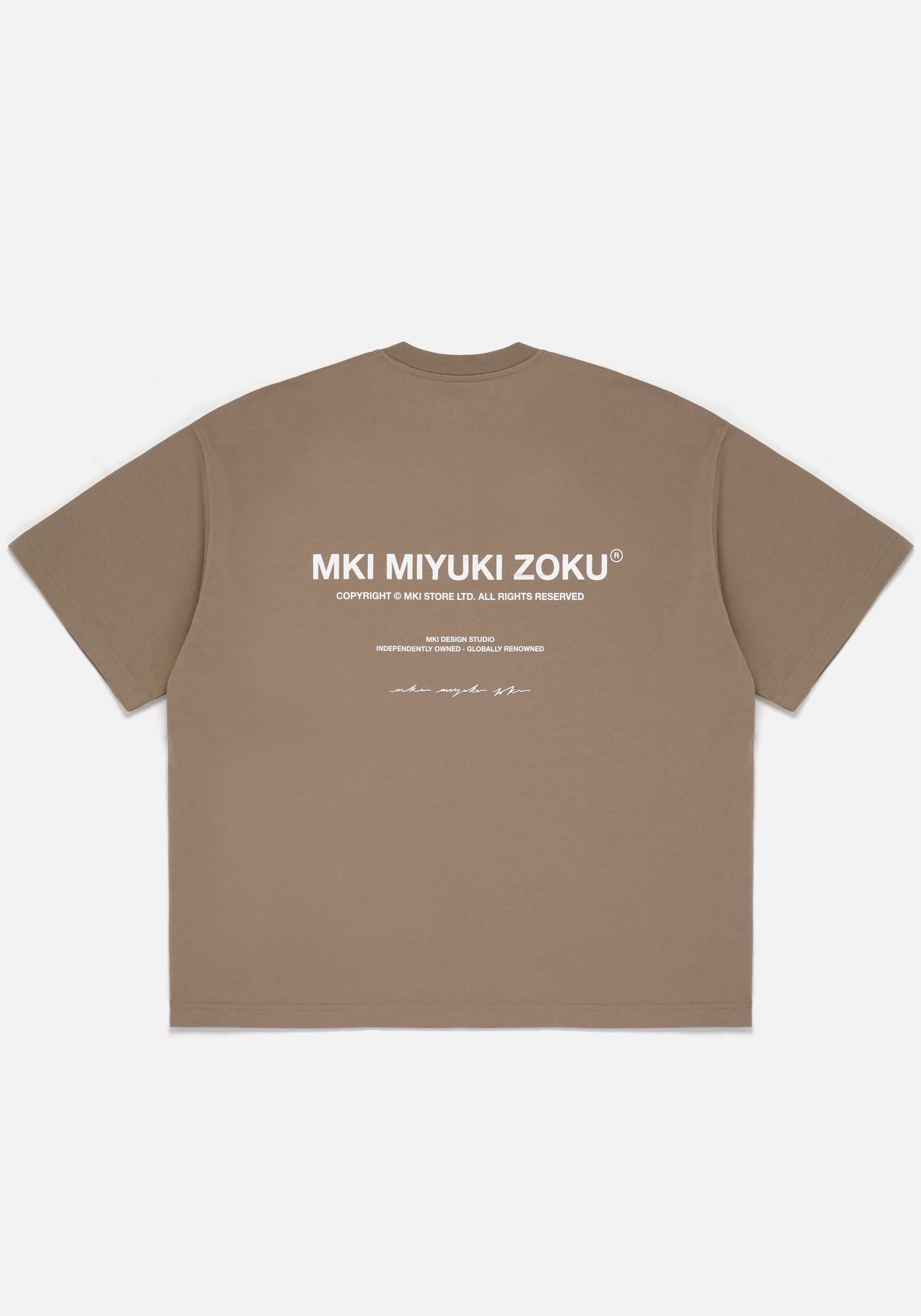 THIS PRODUCT FEATURES MKI’S OVERSIZED SILHOUETTE, CRAFTED FROM A 300 GSM HEAVYWEIGHT JERSEY BASE. DESIGNED TO ACHIEVE THE IDEAL OVERSIZED LOOK, WE RECOMMEND SIZING DOWN IF YOU PREFER A MORE REGULAR, BOXY FIT.