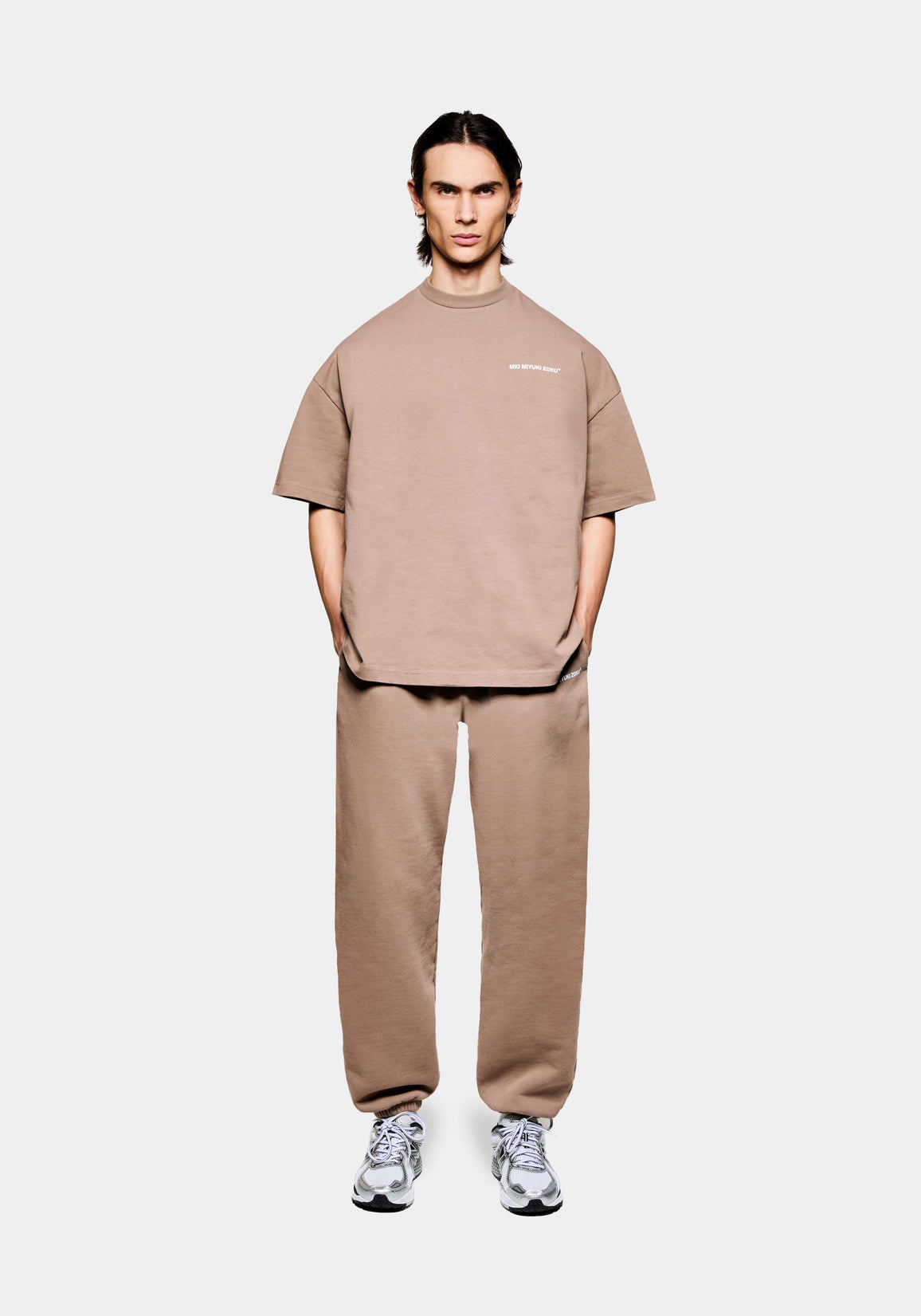 THE MODEL IS 6FT WITH A 38" CHEST AND 31" WAIST AND HAS BEEN STYLED IN A MEDIUM. WE RECOMMEND PURCHASING YOUR REGULAR SIZE, FOR THE DESIRED FIT. THE MODEL IS ALSO WEARING MKI UNIFORM JOGGERS IN MUSHROOM.
