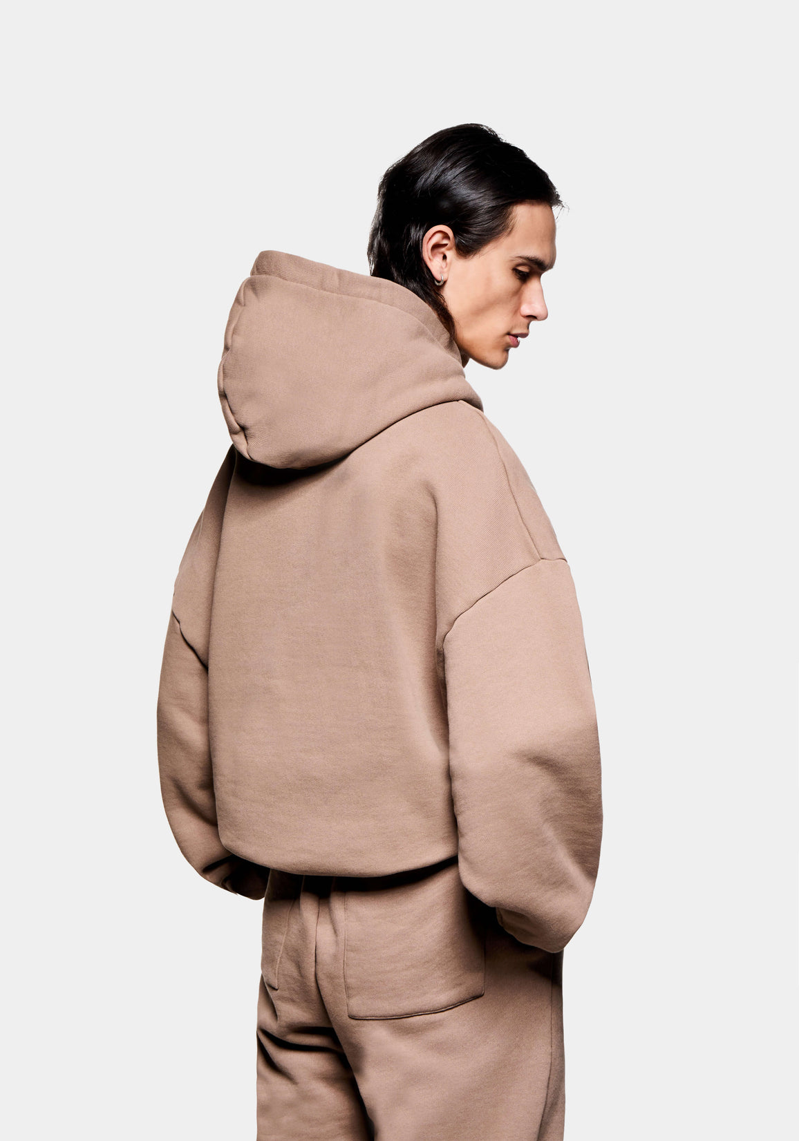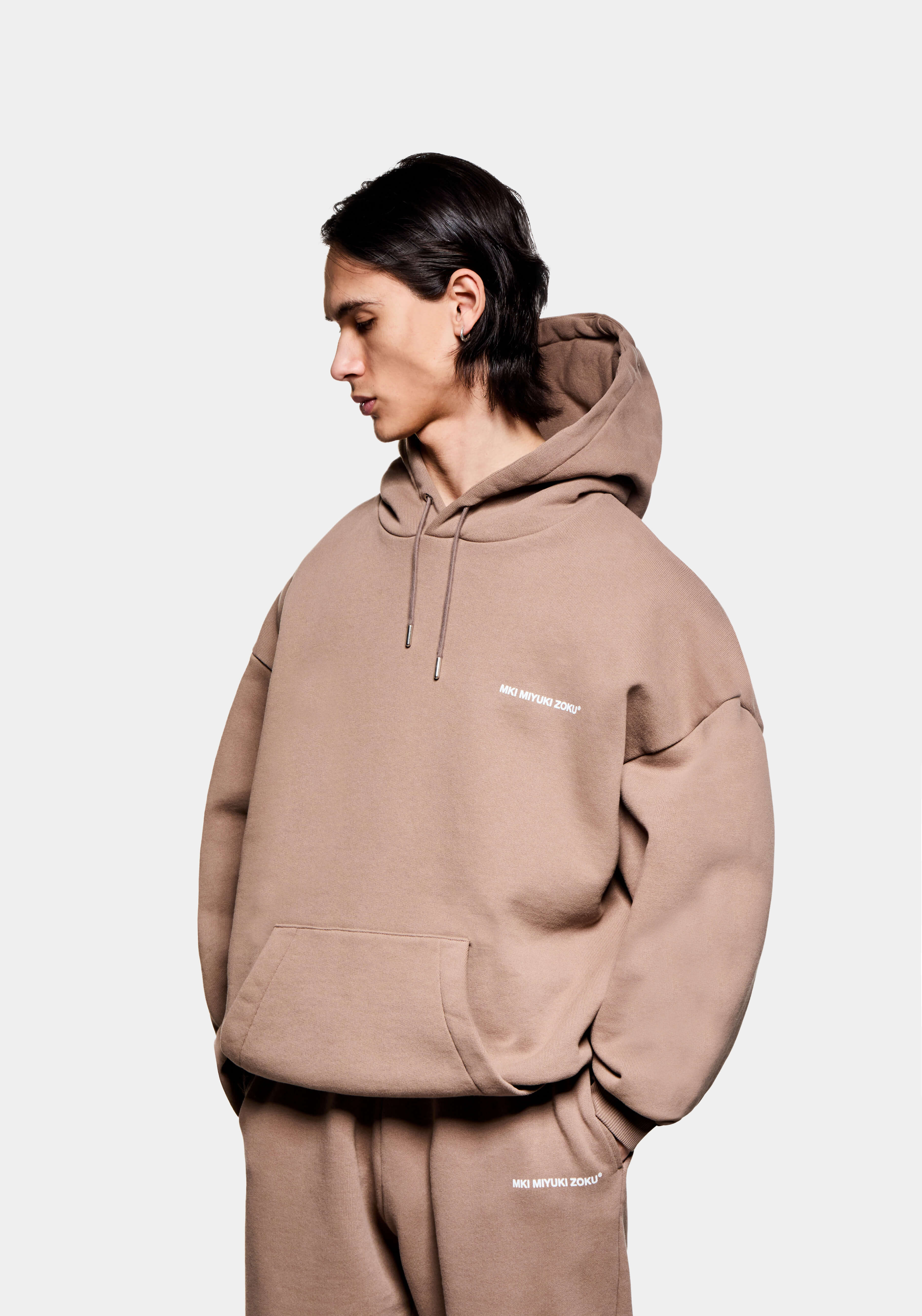 MKI UNIFORM HOODY IN MUSHROOM. PART OF THE SS25 JERSEY COLLECTION, THE 500GSM MKI HEAVYWEIGHT HOODIES ARE DESIGNED FOR AN OVERSIZED, BOXY FIT.