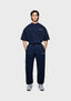 THE MODEL IS 6FT WITH A 38" CHEST AND 31" WAIST AND HAS BEEN STYLED IN A MEDIUM. WE RECOMMEND PURCHASING YOUR REGULAR SIZE, FOR THE DESIRED RELAXED FIT. THE MODEL IS ALSO WEARING MKI UNIFORM T-SHIRT IN NAVY.