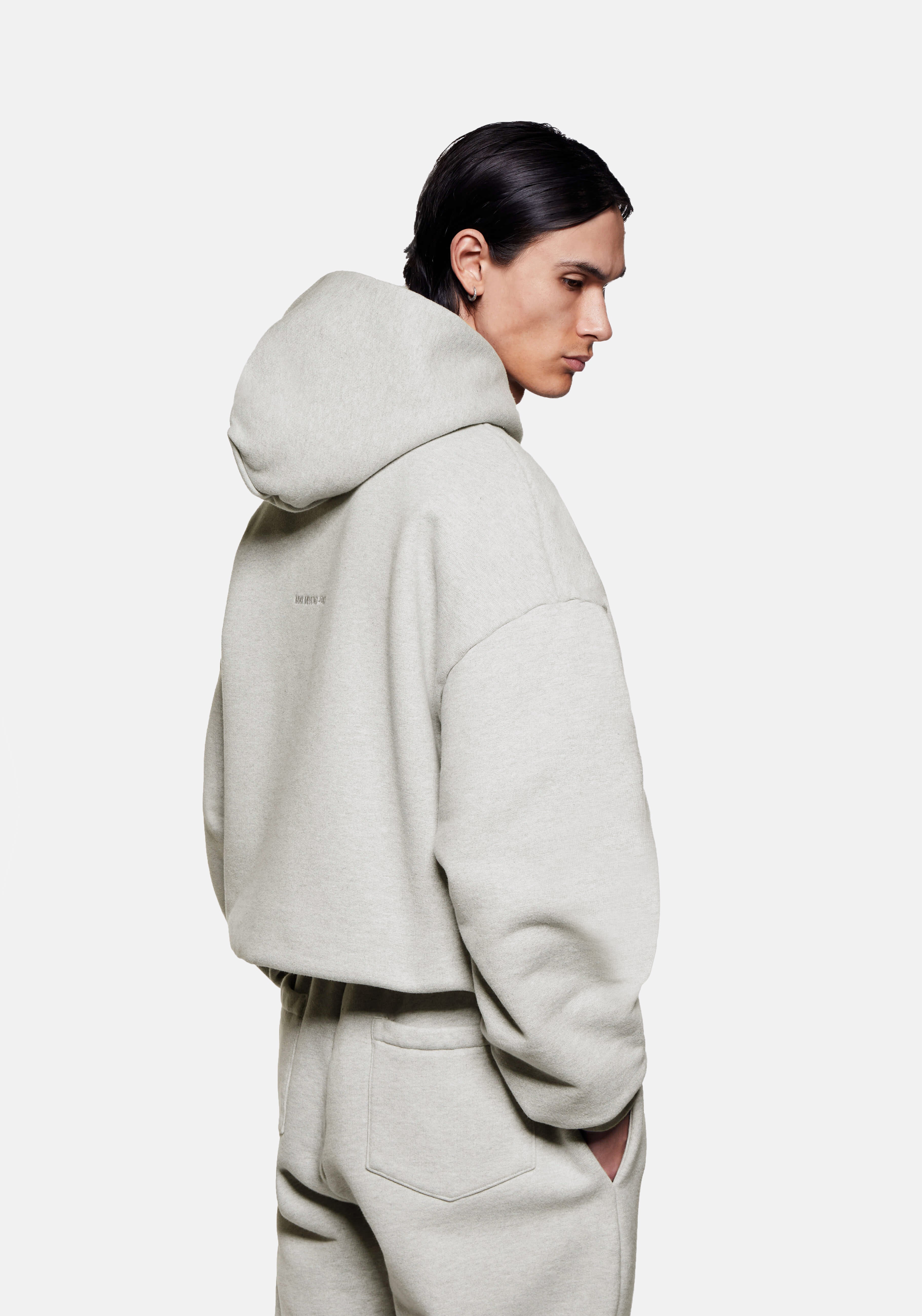 MKI 800 GSM SUPERWEIGHT HOODY IN OATMEAL. CRAFTED FROM SUPER HEAVYWEIGHT 800GSM COTTON JERSEY, THE MKI SUPERWEIGHT HOODY IS A REFINED INTERPRETATION OF THE MKI HOODY, CUT TO AN OVERSIZED FIT WITH DROPPED SHOULDERS AND COTTON RIBBING AT THE CUFFS AND HEM. THE COTTON JERSEY FABRIC BOTH PROVIDES UNRIVALLED THICKNESS AND SIGNATURE DRAPE, WHILE TONAL MKI LOGO EBROIDERY AT THE REAR REINFORCES THE MINIMALIST DESIGN ETHOS.