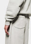 THE MODEL IS 6FT, HAS A 29' WAIST, CHEST MEASURING 37', AND WEARS A SIZE LARGE. THE MODEL IS ALSO WEARING MKI 800 GSM SUPERWEIGHT CUFFED JOGGERS IN OATMEAL.