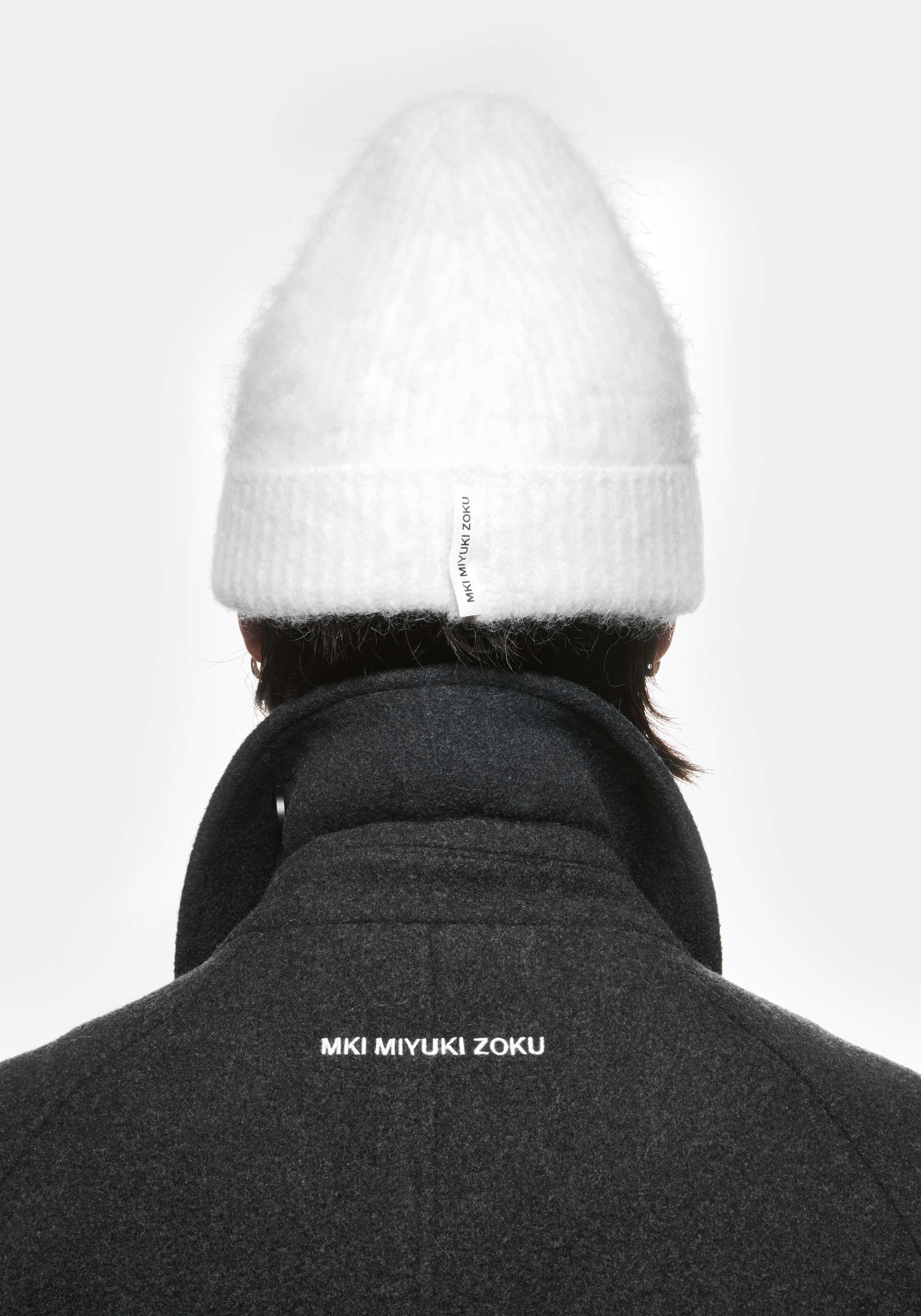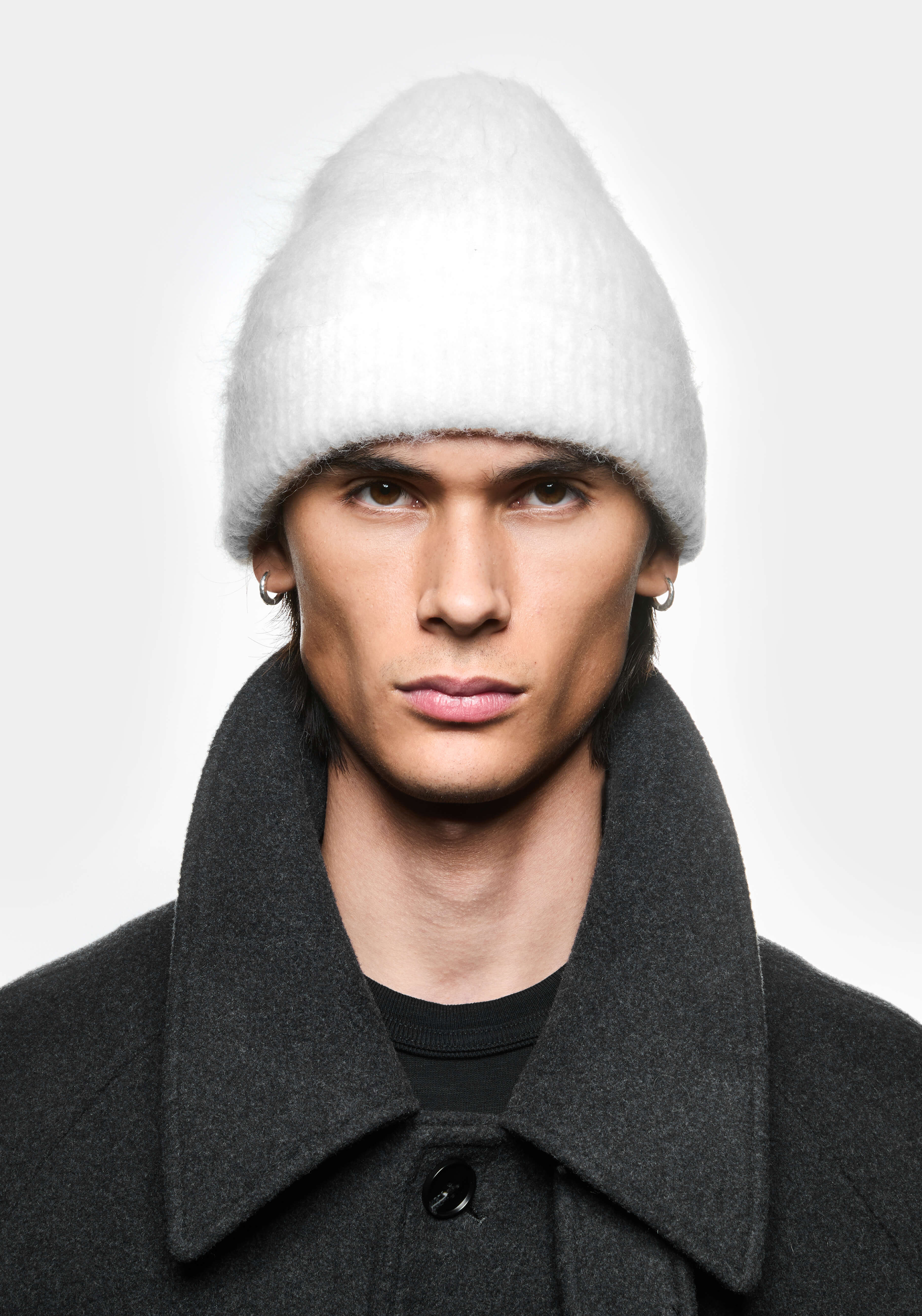 MKI ALPACA RIBBED BEANIE IN OFF WHITE.